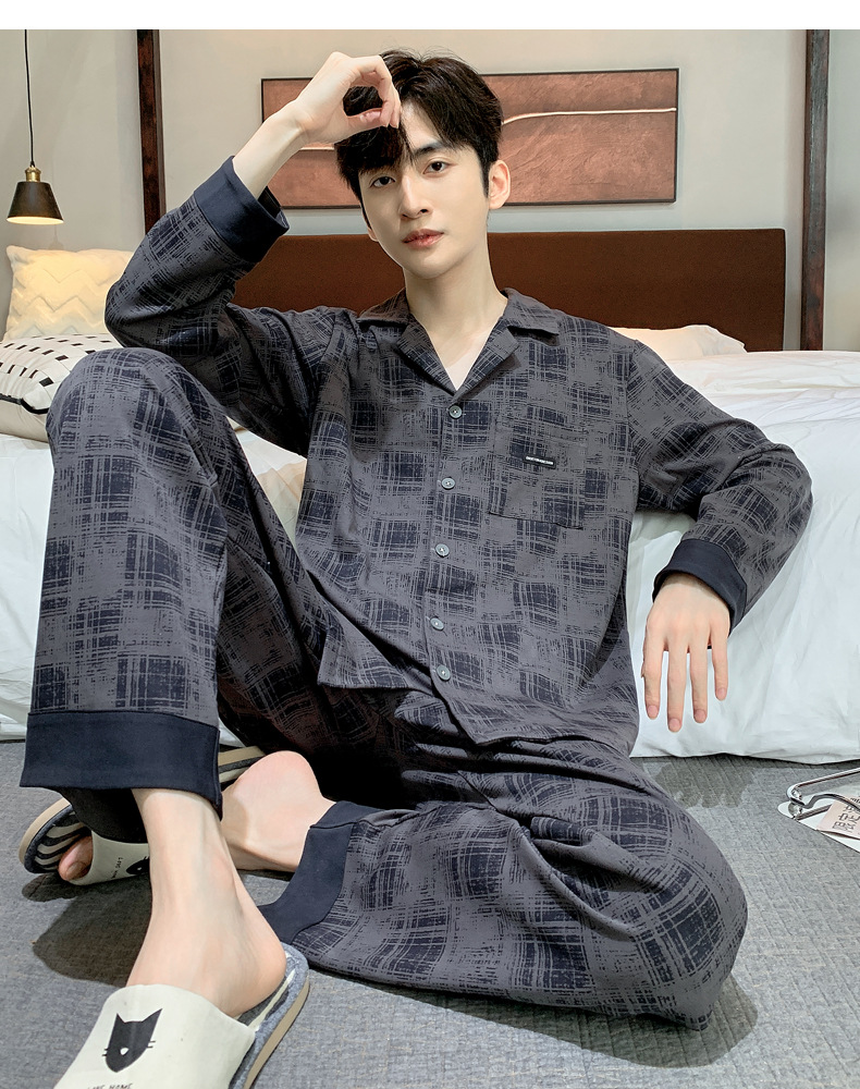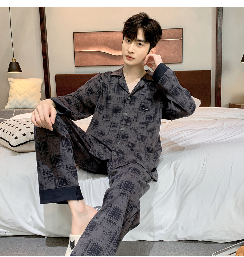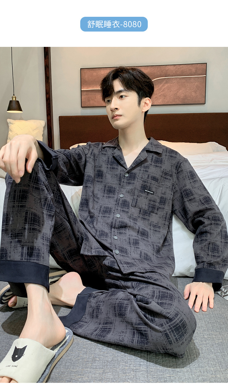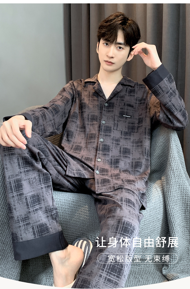 2023年秋季睡衣男新款时尚高级感长袖长裤两件套舒适家居服可外穿
