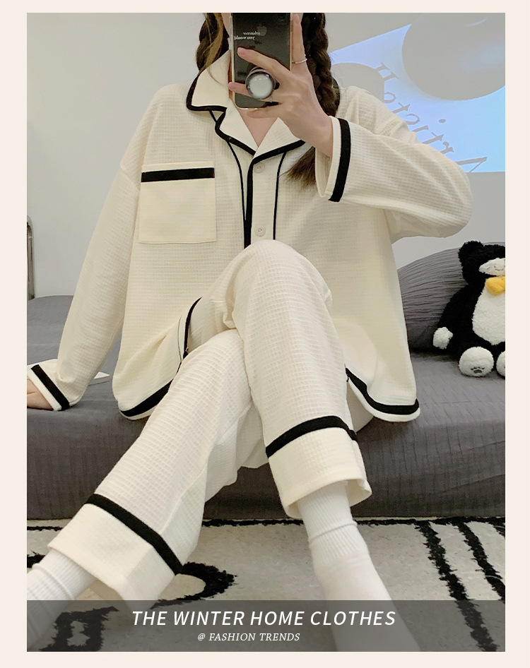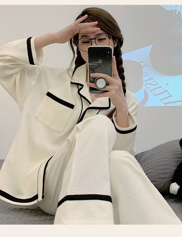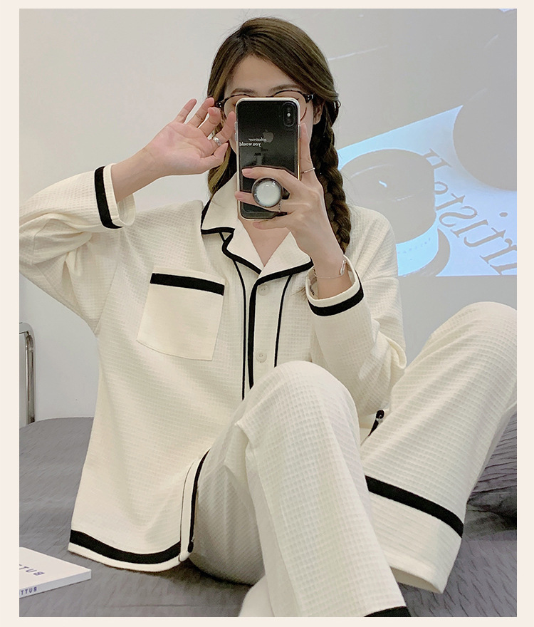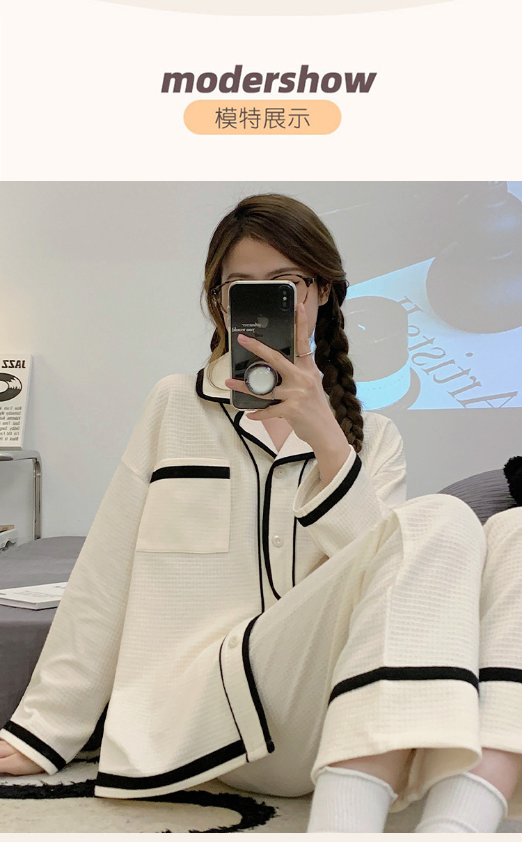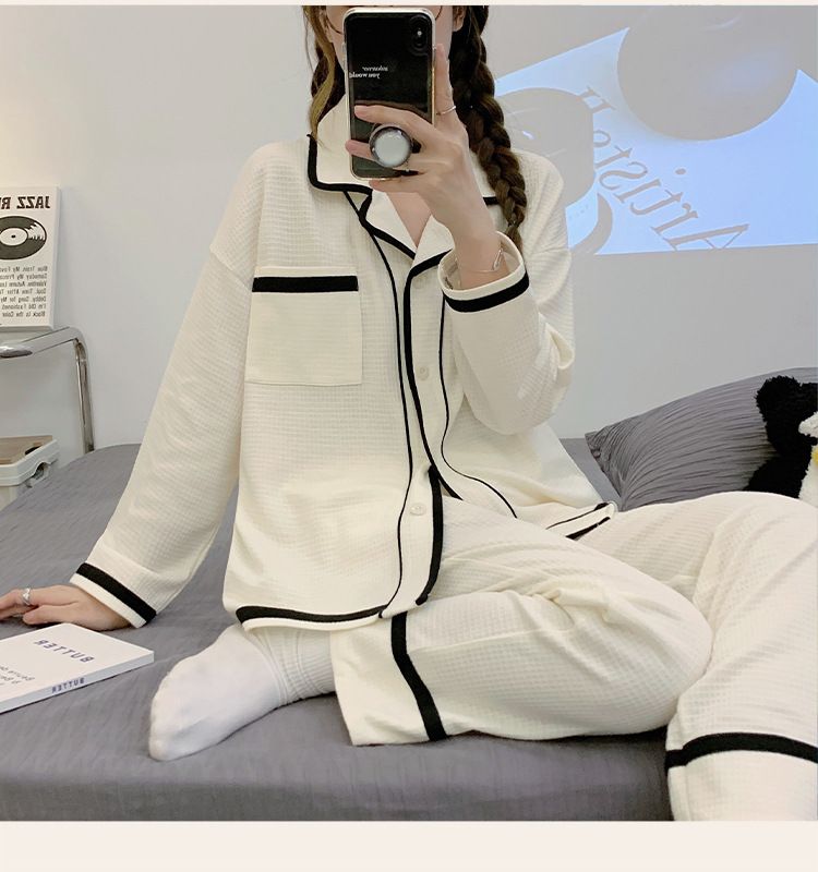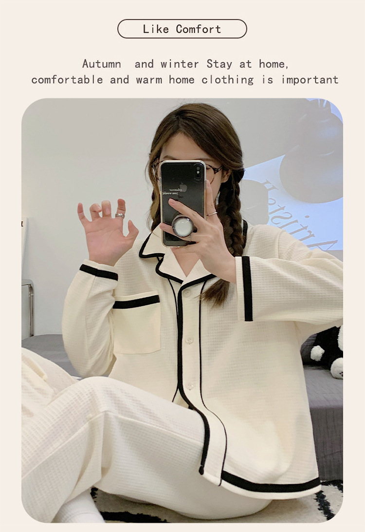 睡衣女款秋季2023年可爱简约长袖长裤两件套休闲开衫家居服可外穿
