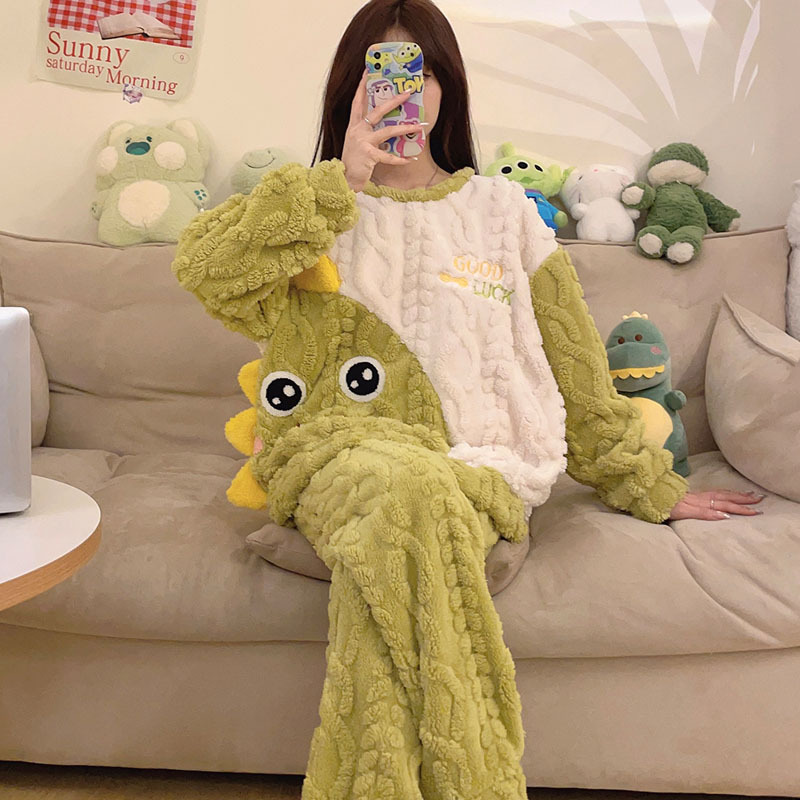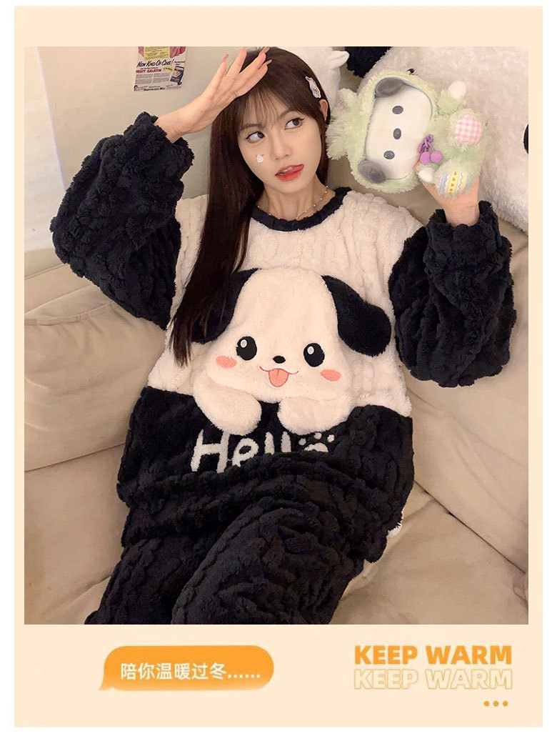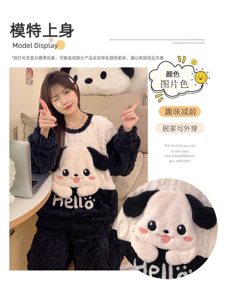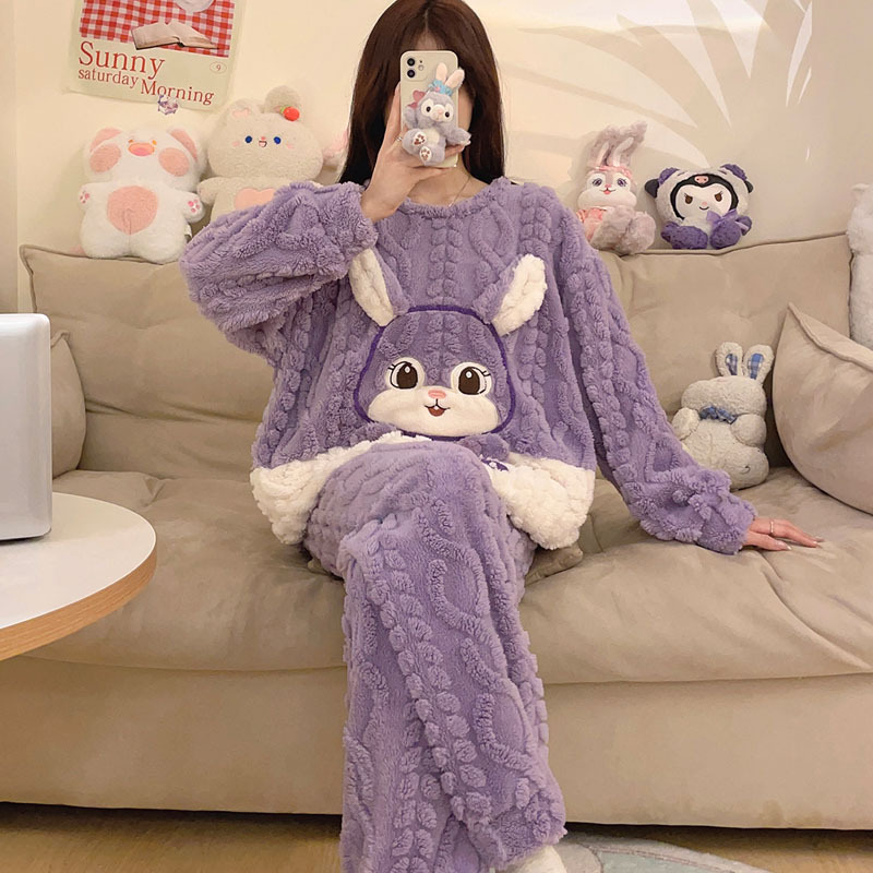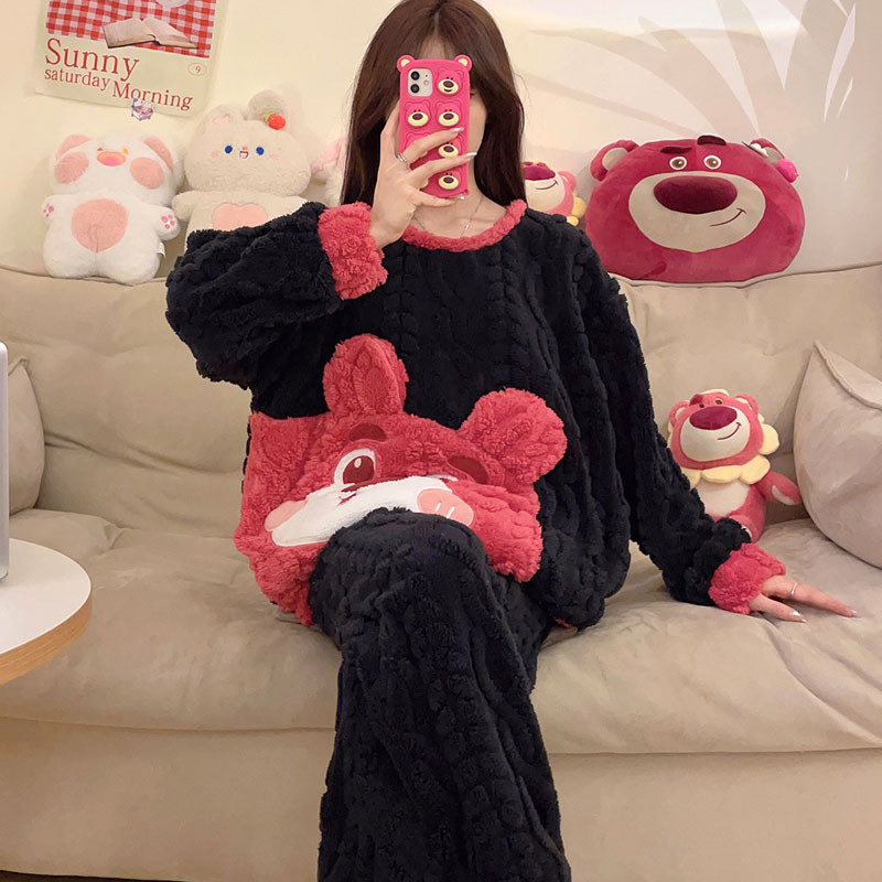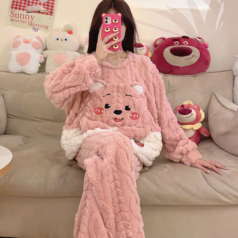 2023冬季新款卡通睡衣女提花可爱舒适高级感珊瑚绒保暖家居服套装