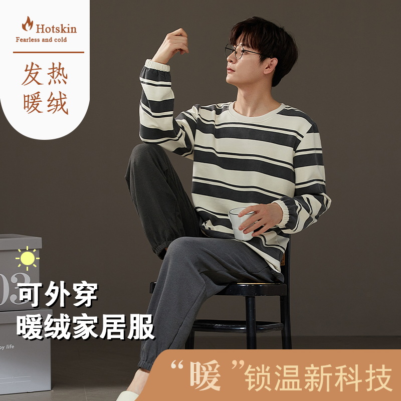 冬季情侣睡衣2023年新款高级感德绒发热保暖舒适家居服可外穿套装