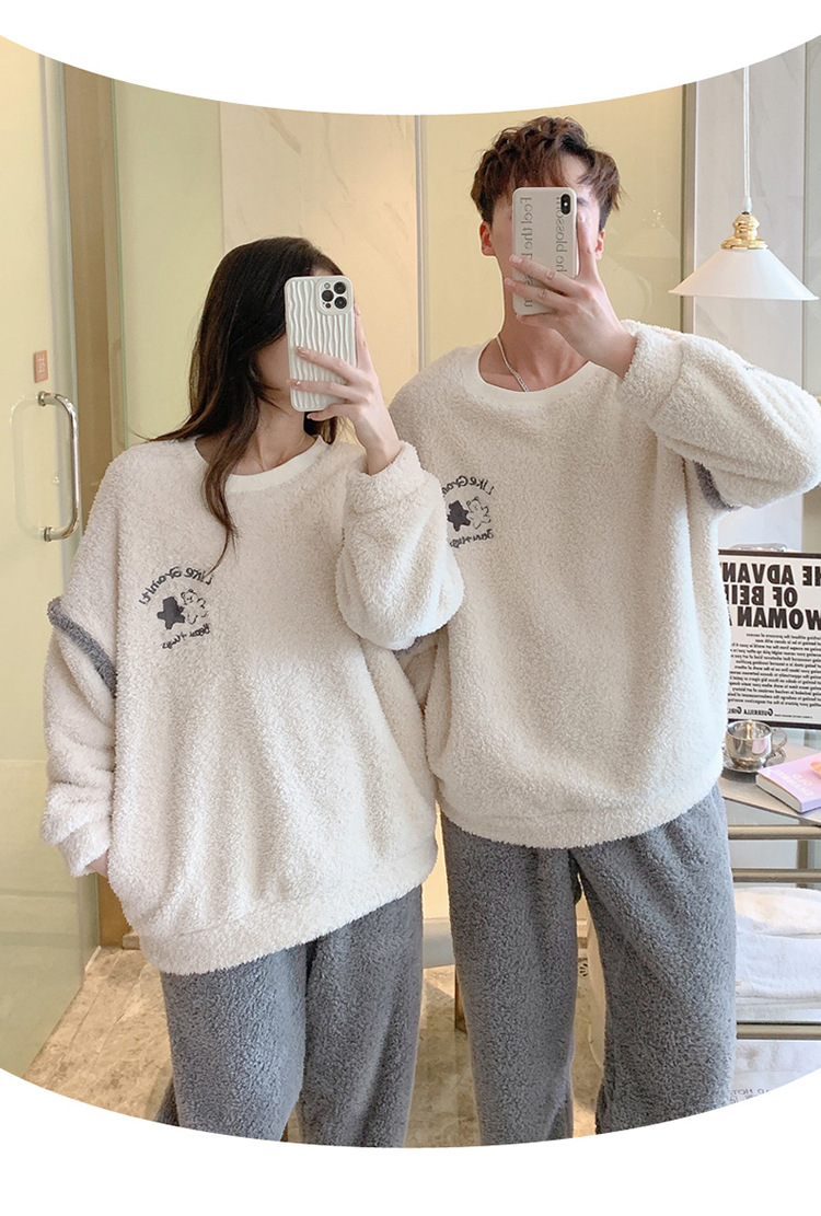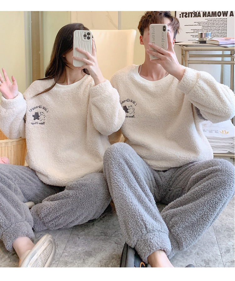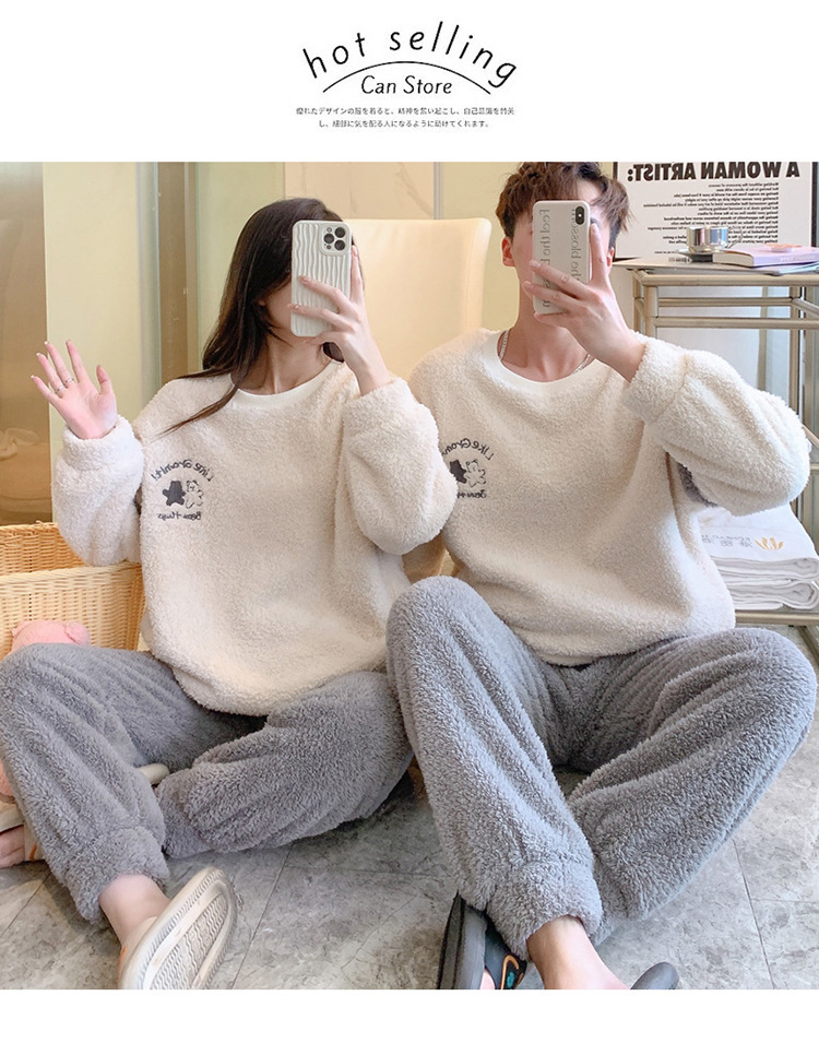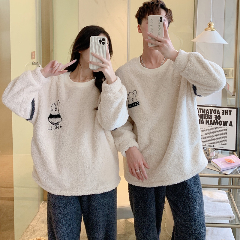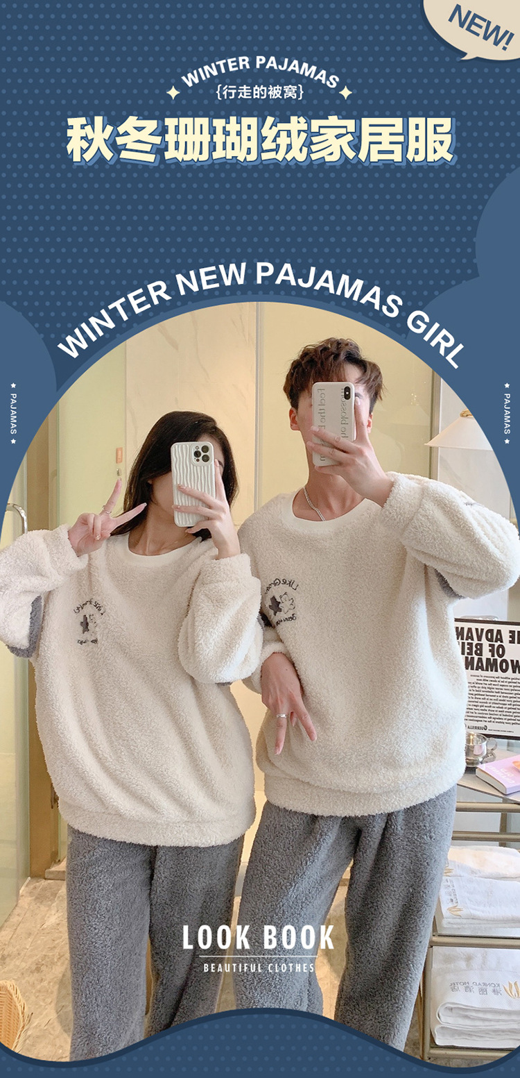 冬季新款情侣睡衣2023年法兰绒时尚清新舒适保暖家居服套装可外穿