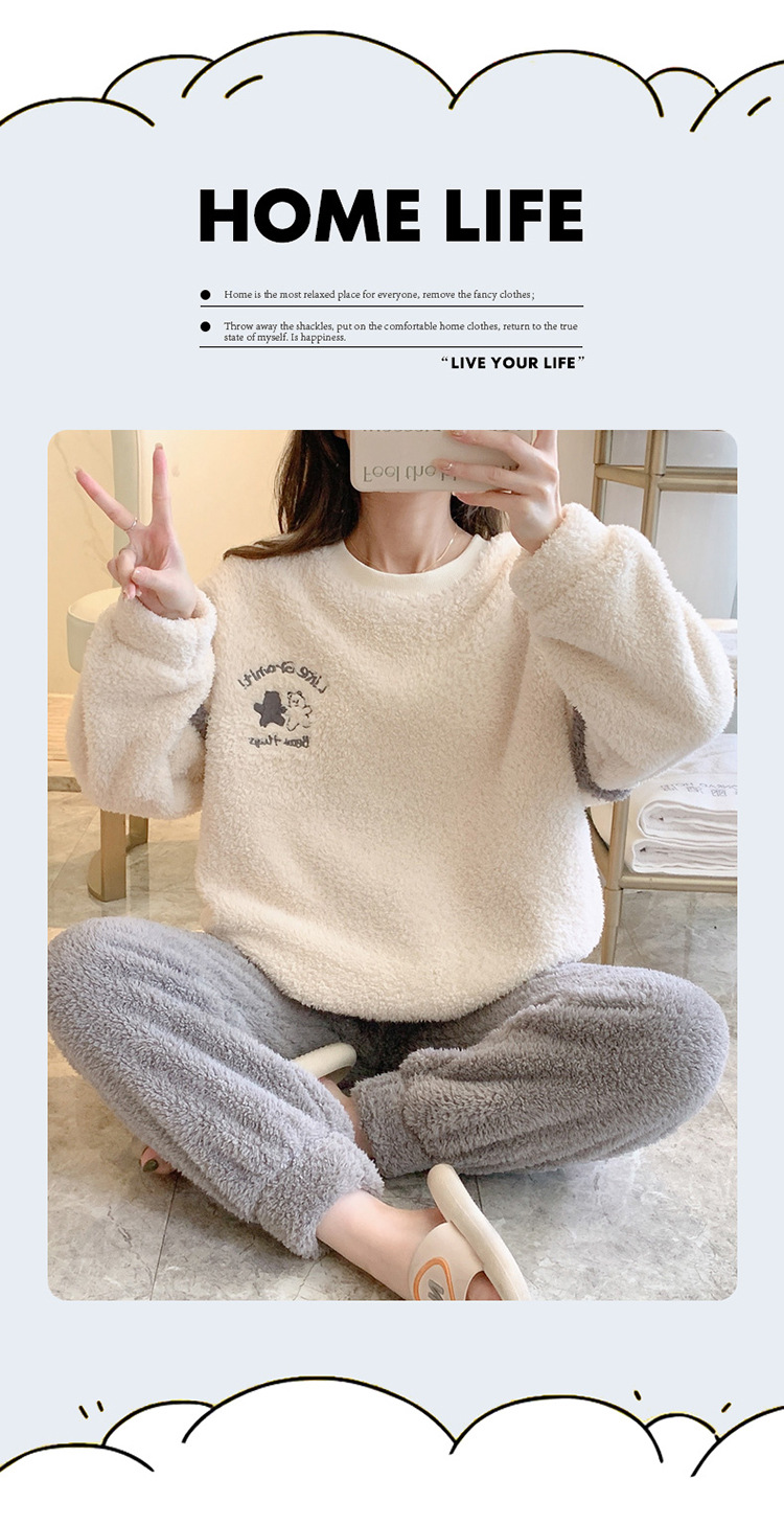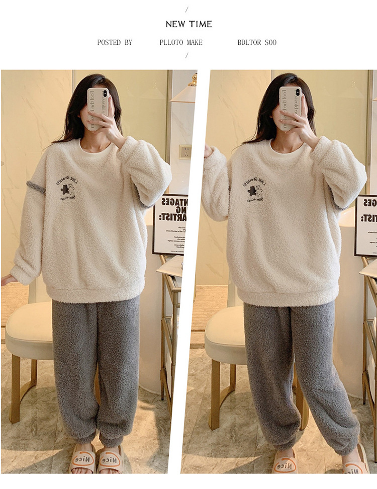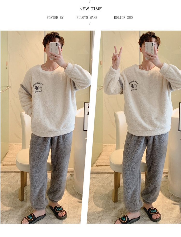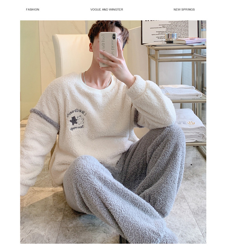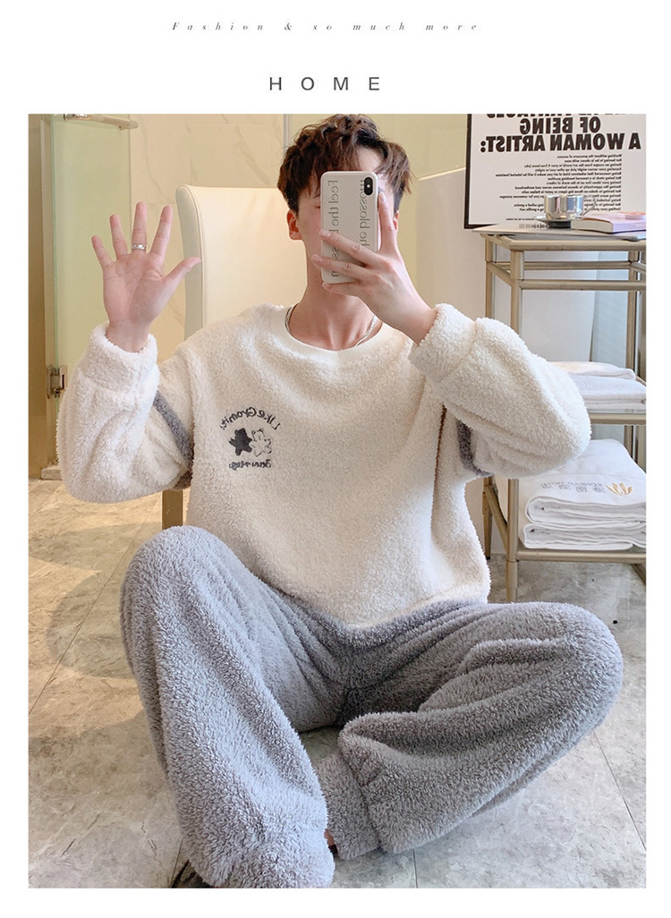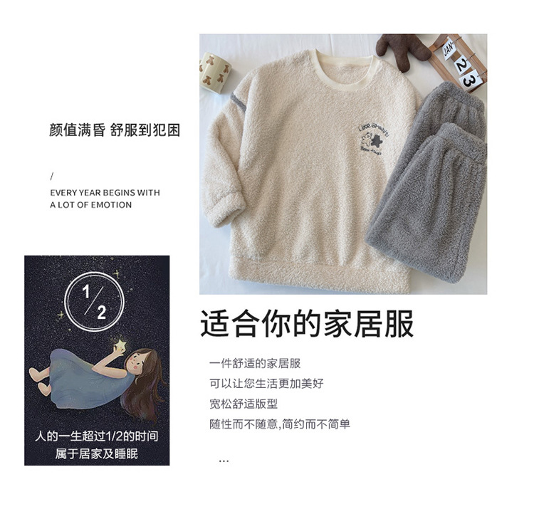 冬季新款情侣睡衣2023年法兰绒时尚清新舒适保暖家居服套装可外穿