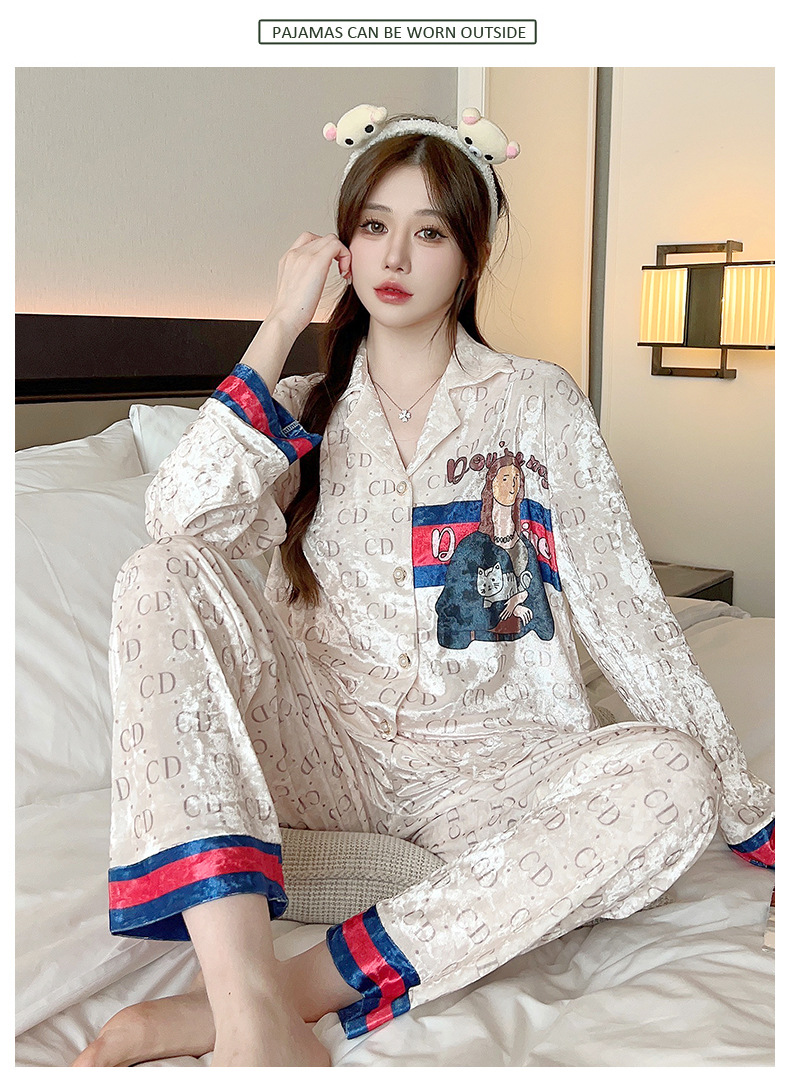 秋冬金丝绒睡衣女可爱时尚高级感2023年新款舒适开衫家居服可外穿