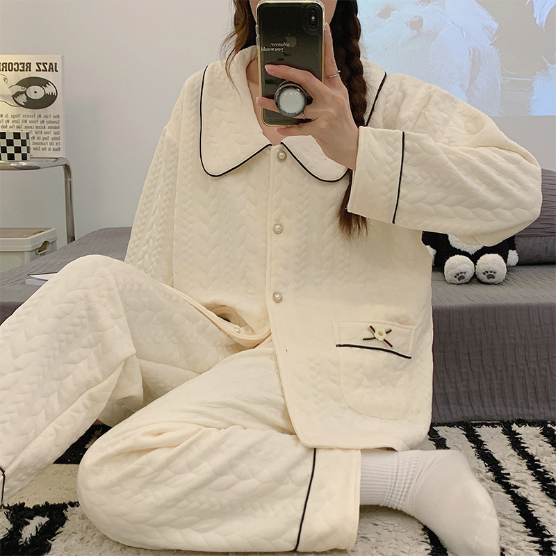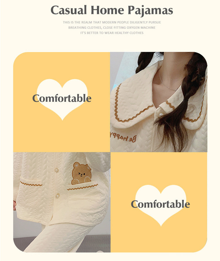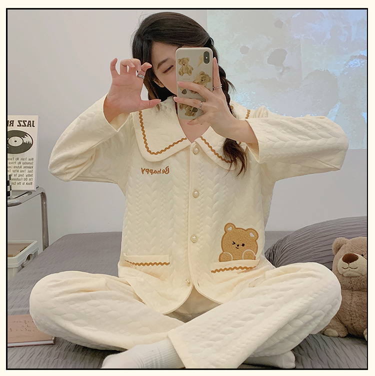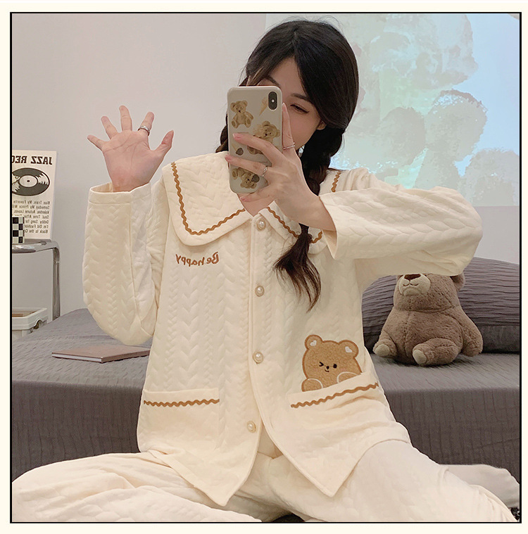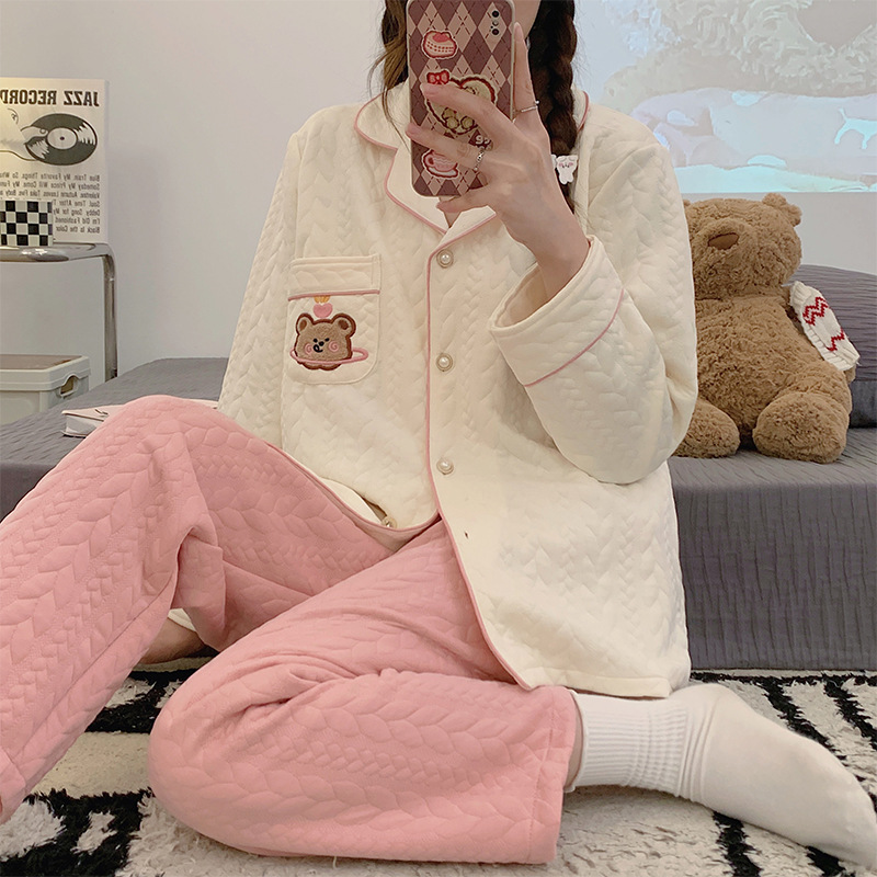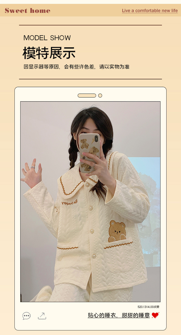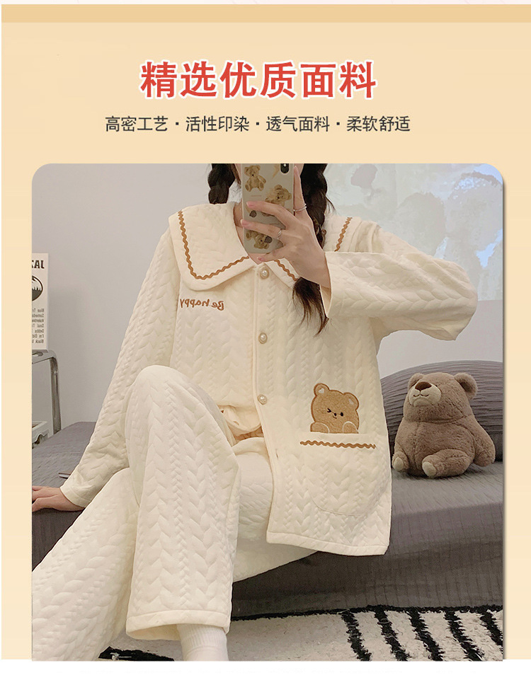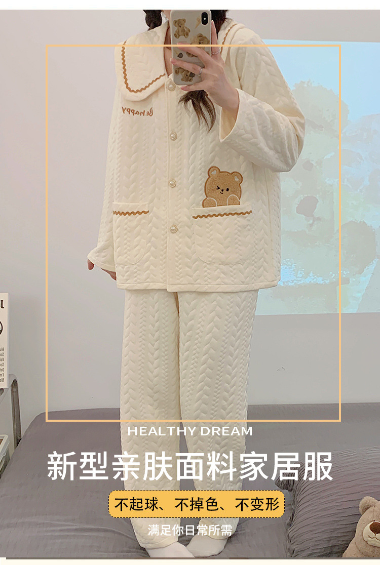 睡衣女秋冬卡通可爱甜美风2023年新款空气夹棉舒适保暖开衫家居服