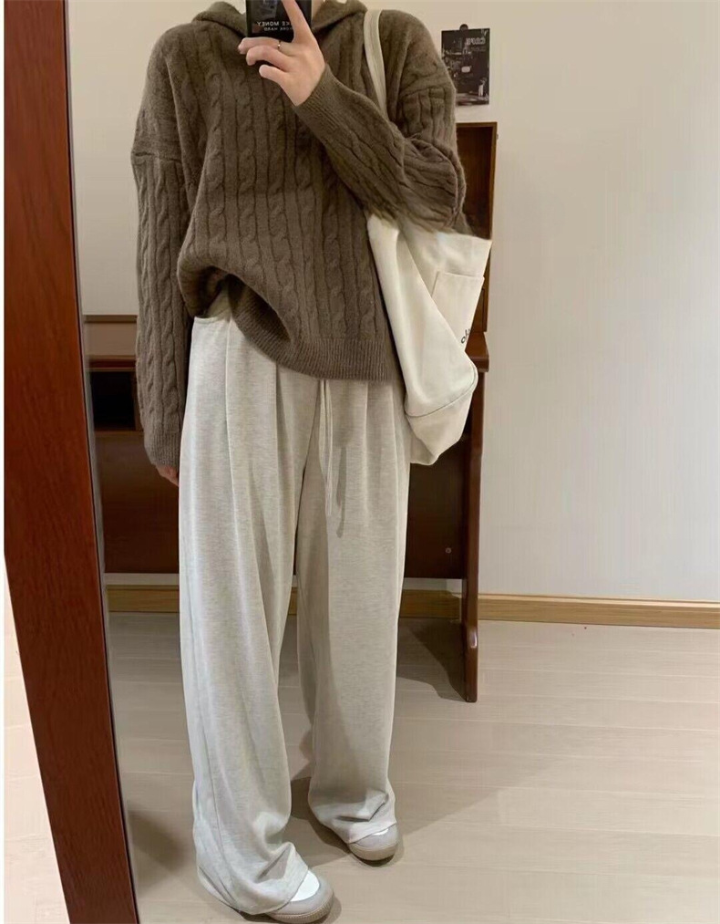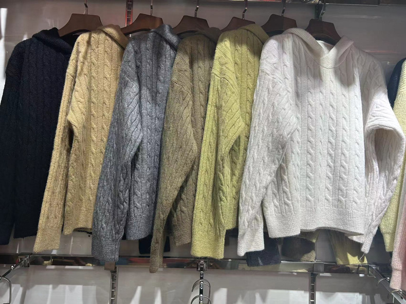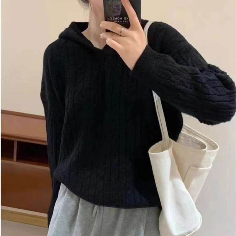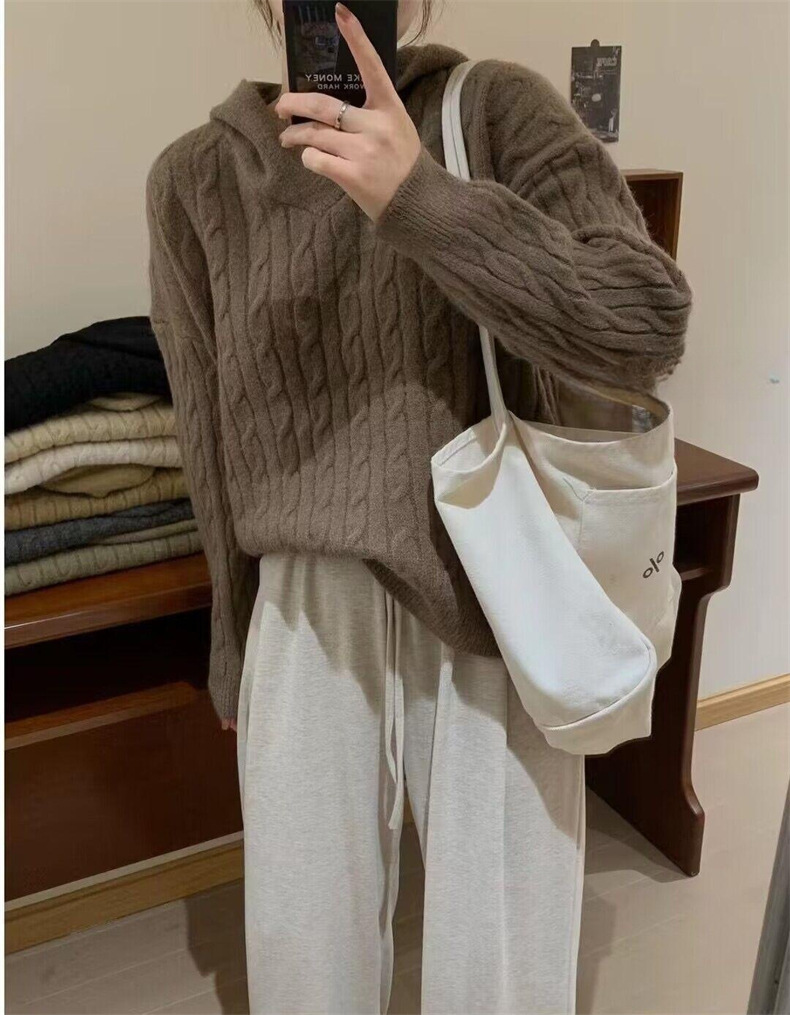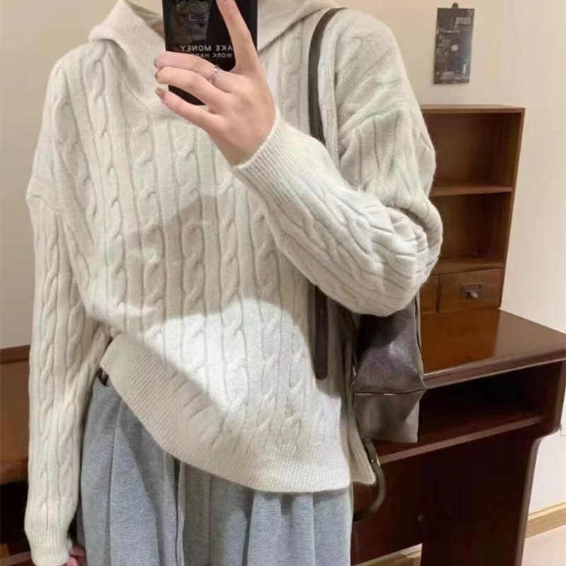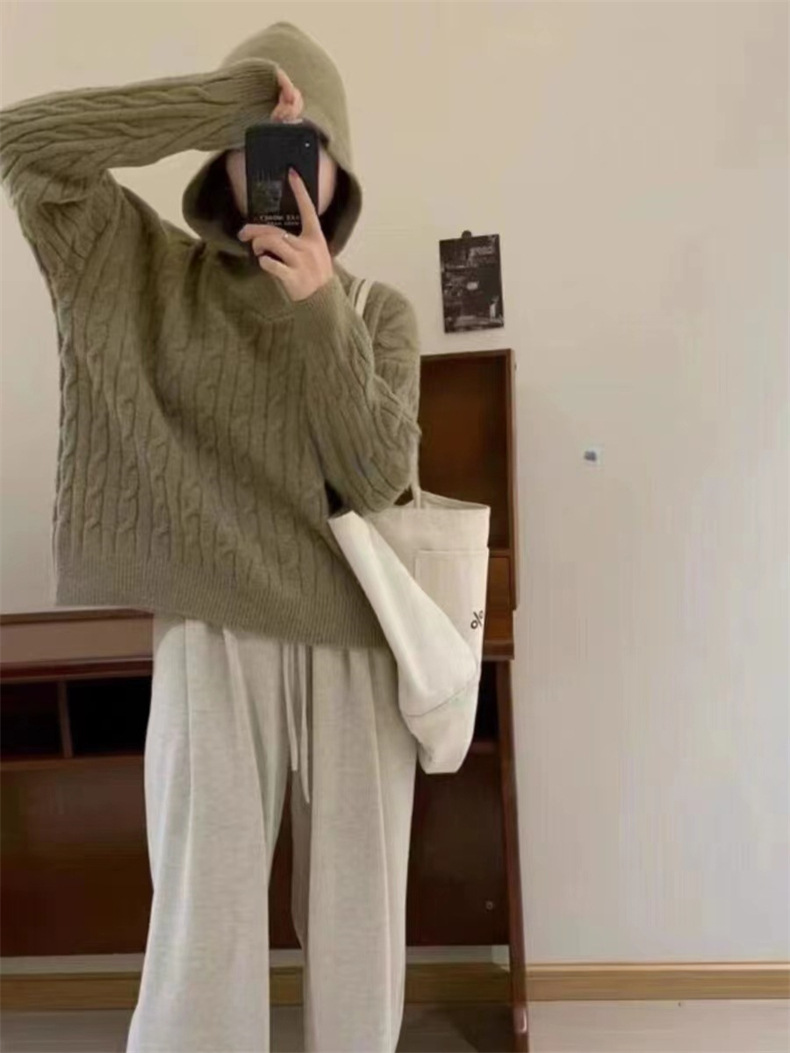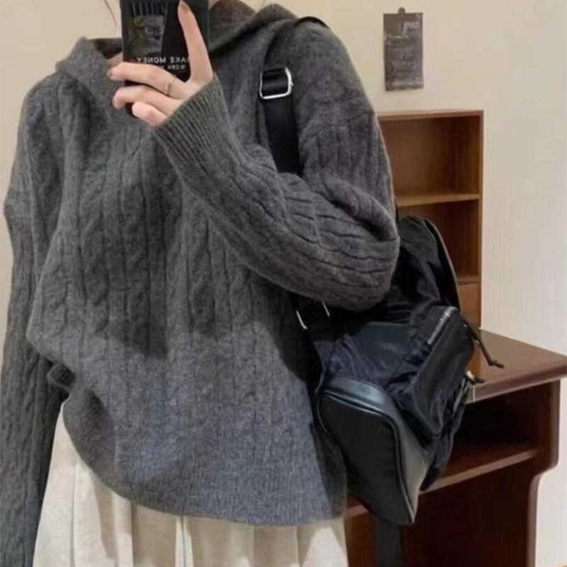 秋冬季新款麻花毛衣女连帽套头复古慵懒宽松软糯针织衫毛线上衣女