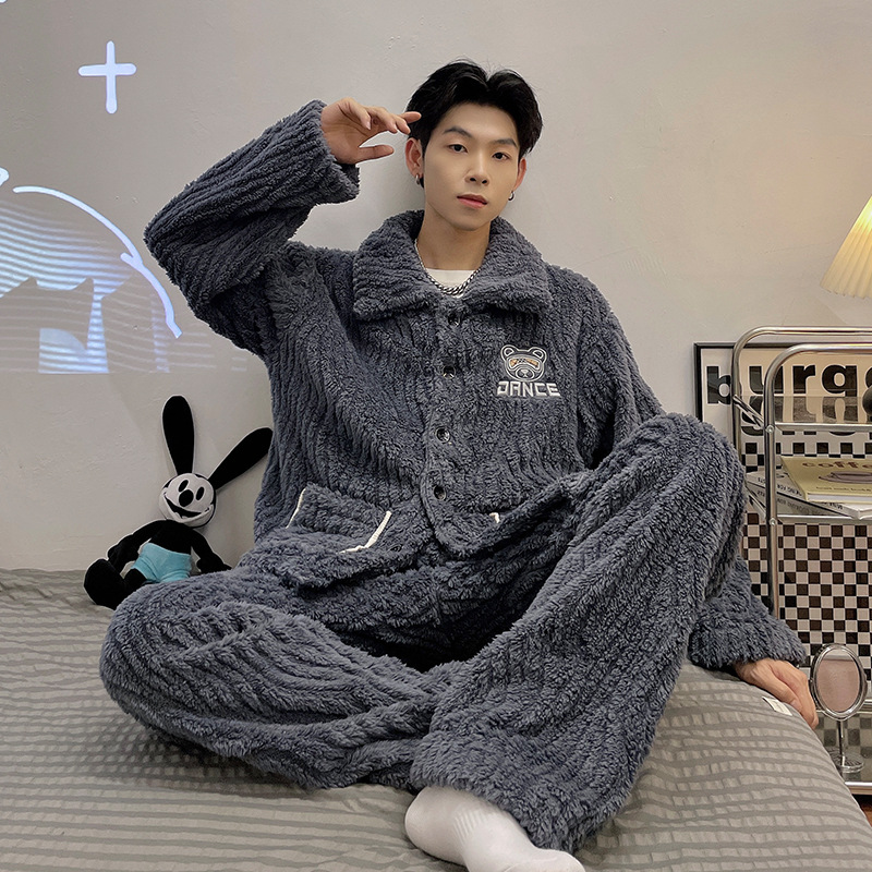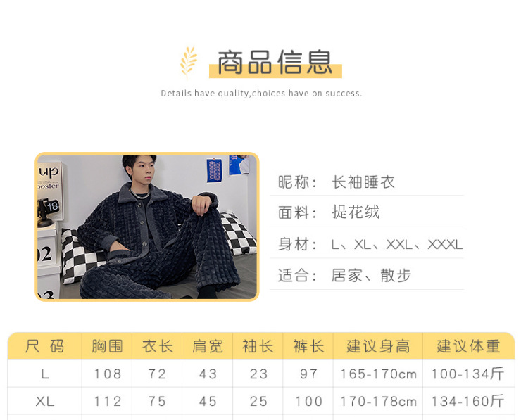 男睡衣2023年冬季新款时尚高级感提花绒保暖舒适套装家居服可外穿
