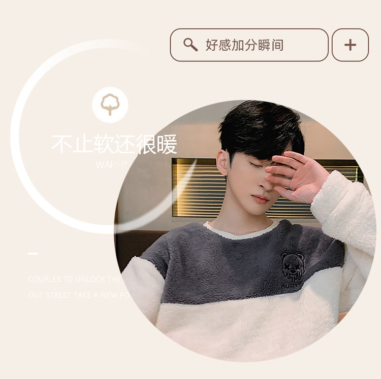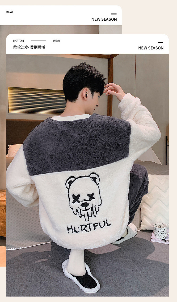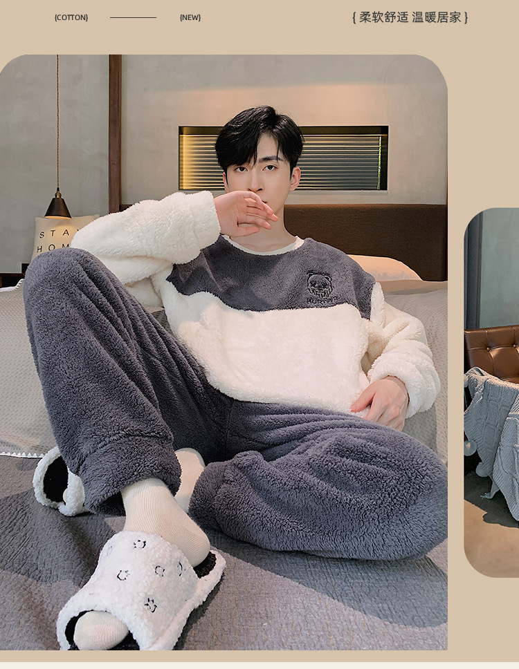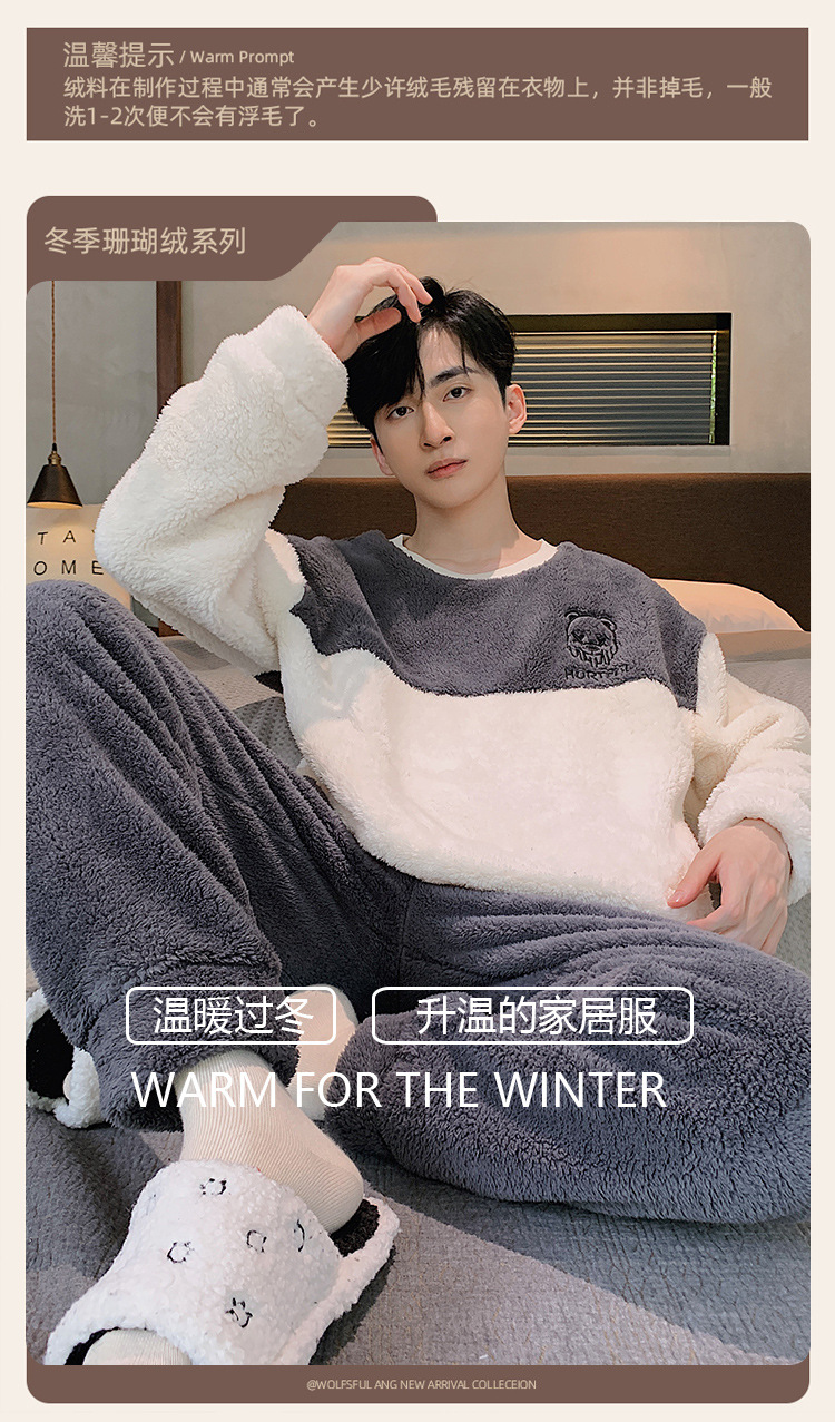 冬季新款青年男士长毛睡衣珊瑚绒舒适高颜值法兰绒保暖套装家居服