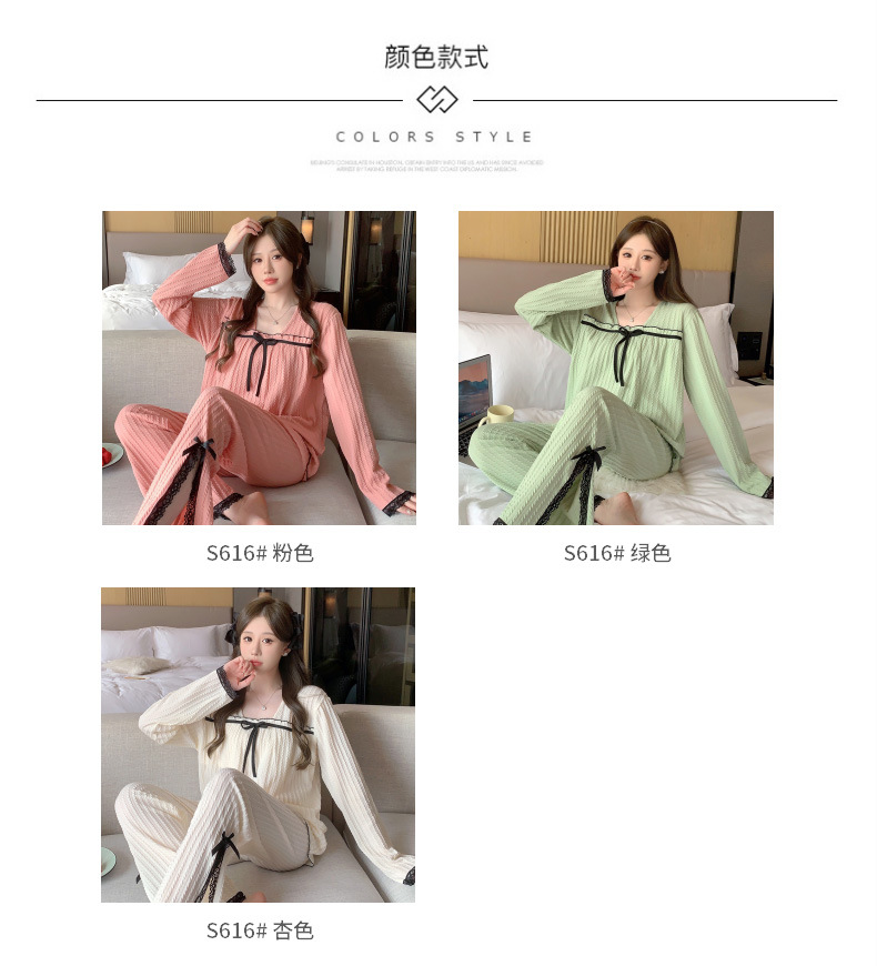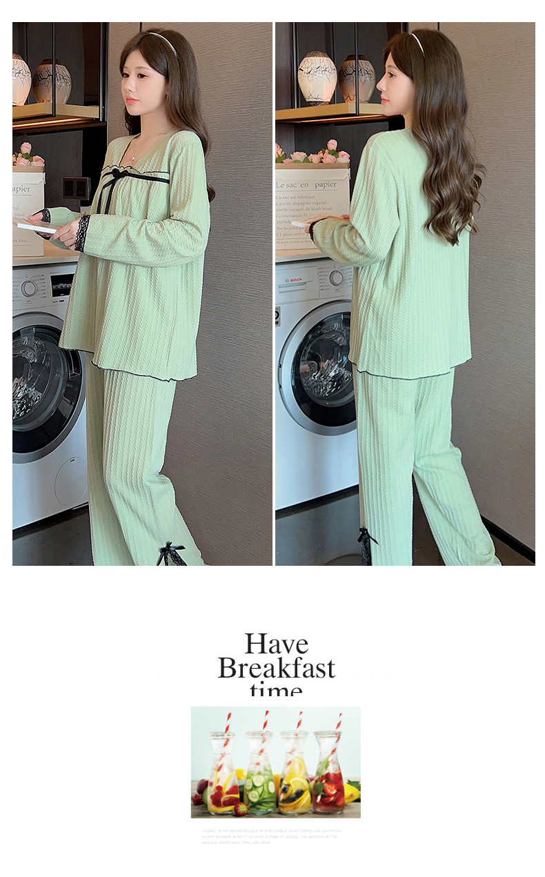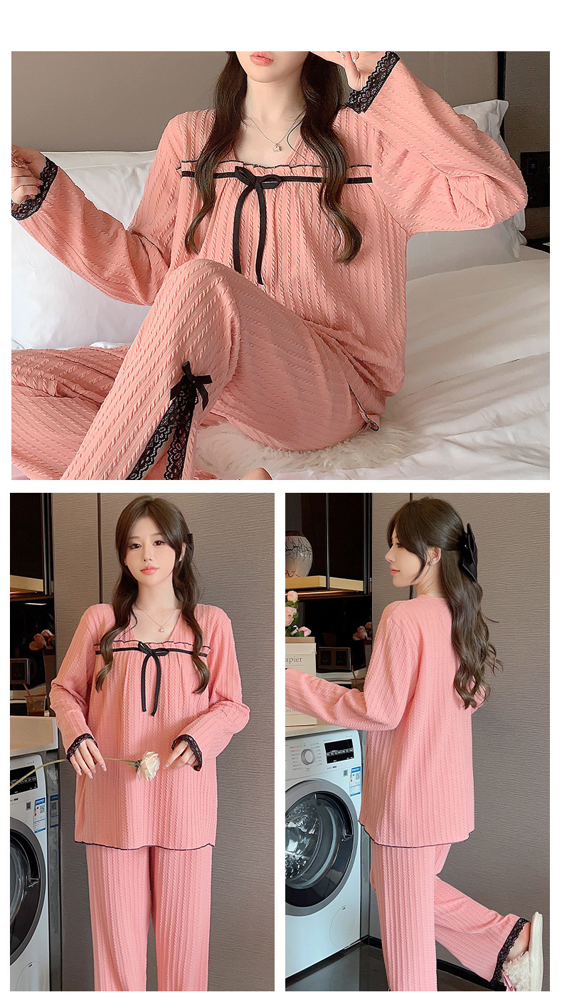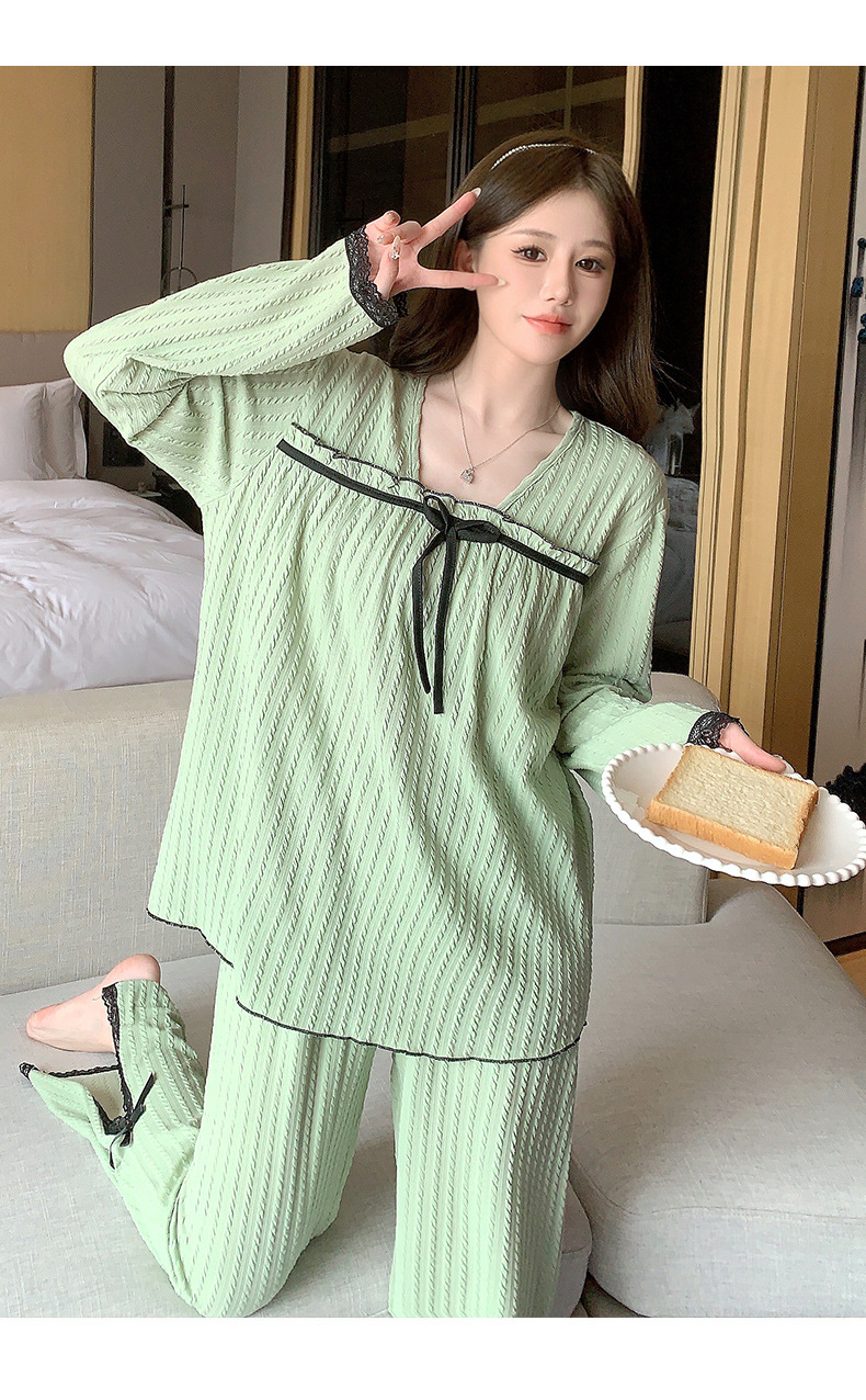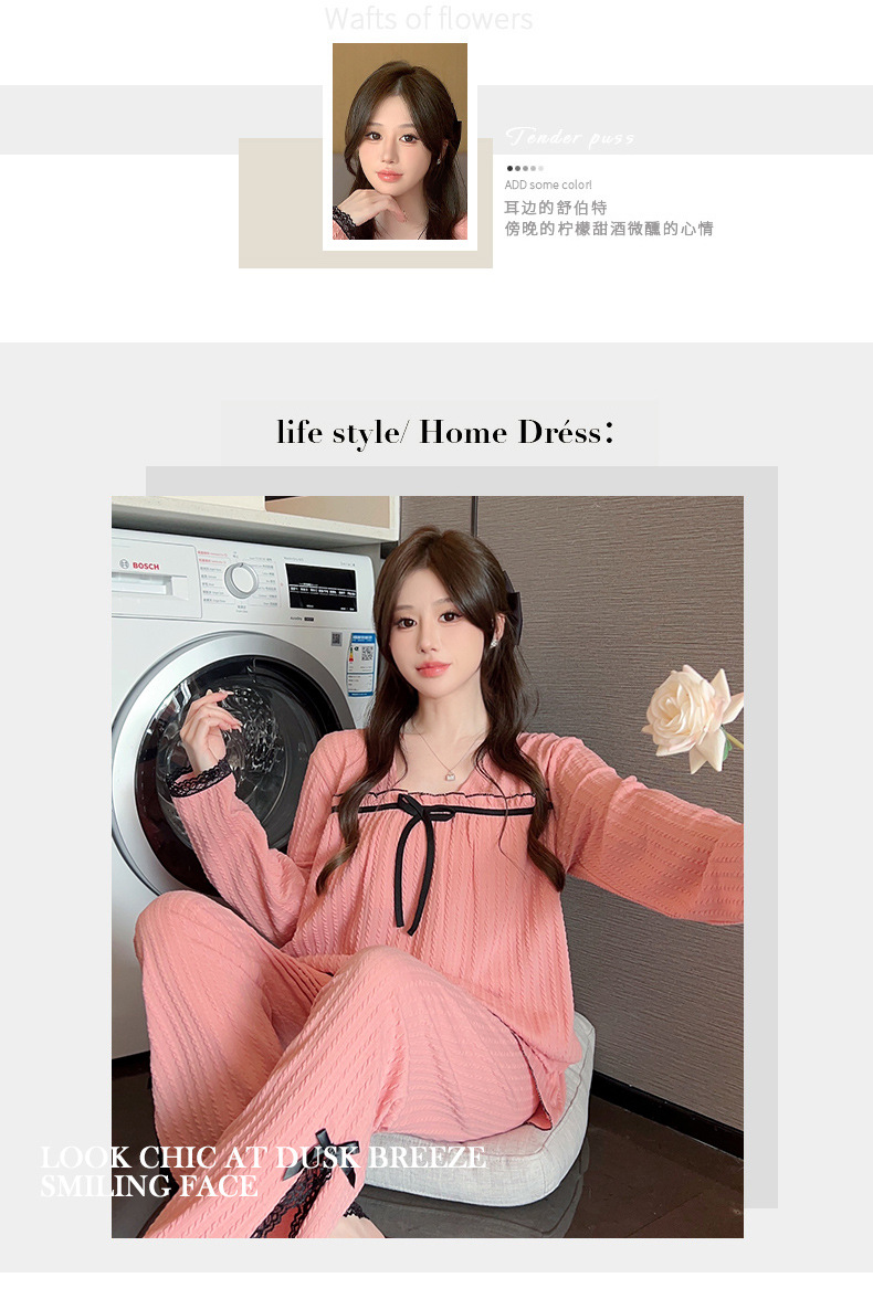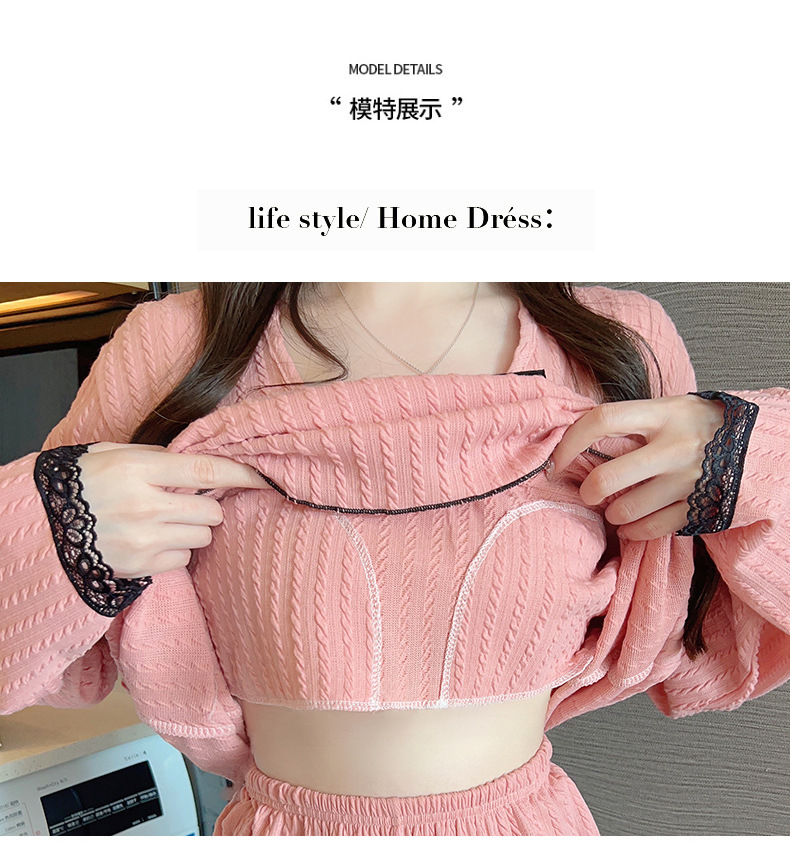 秋季可爱睡衣女带胸垫2023年新款时尚甜美风棉质套装家居服可外穿