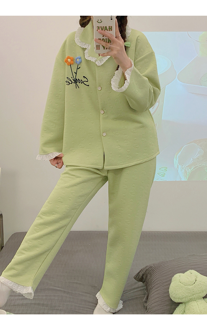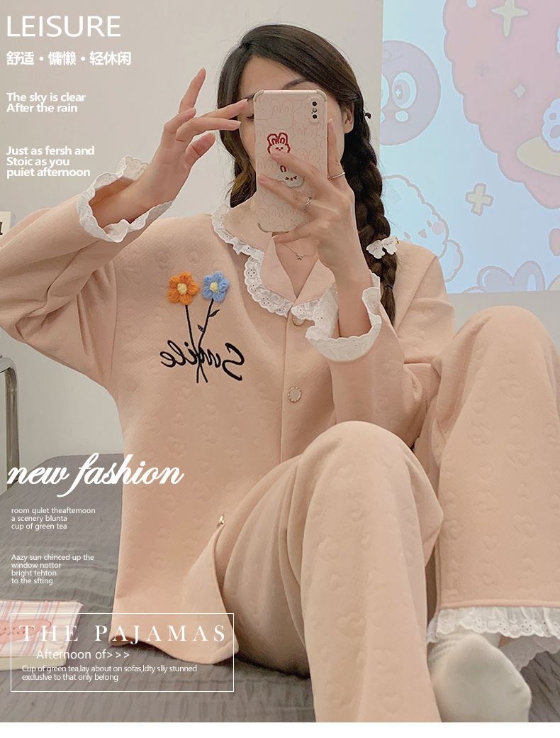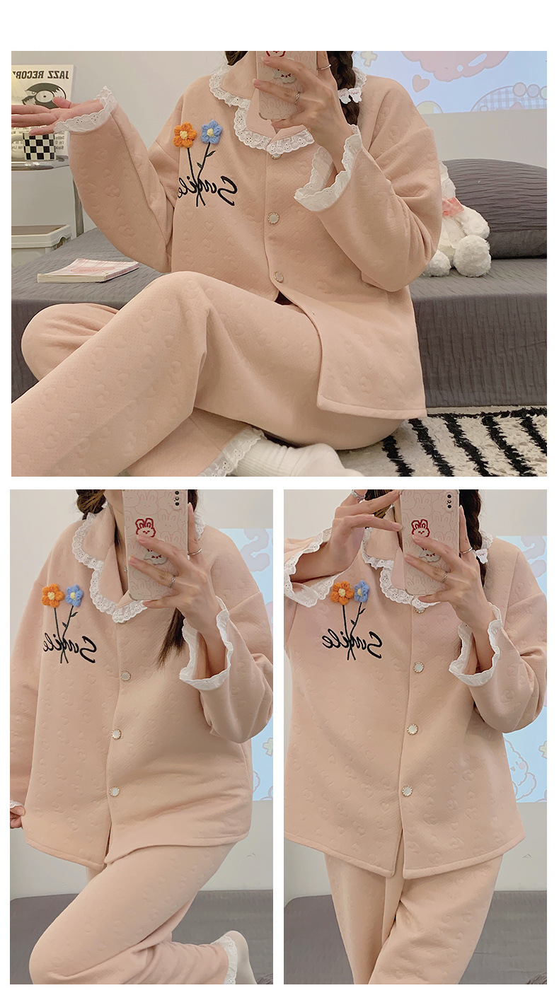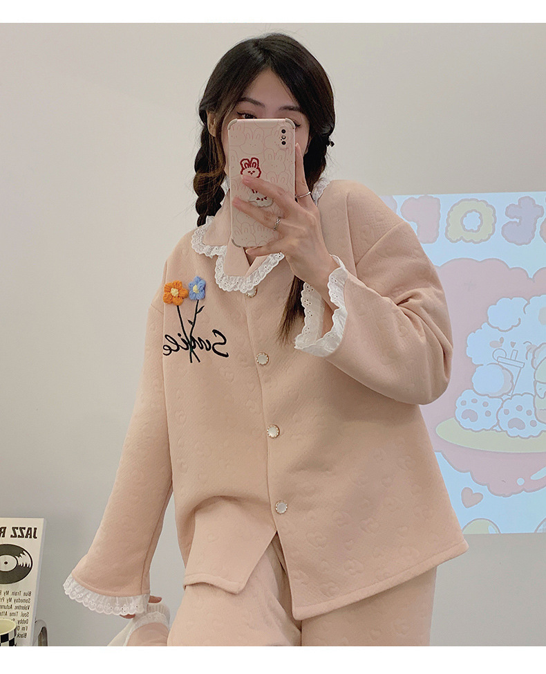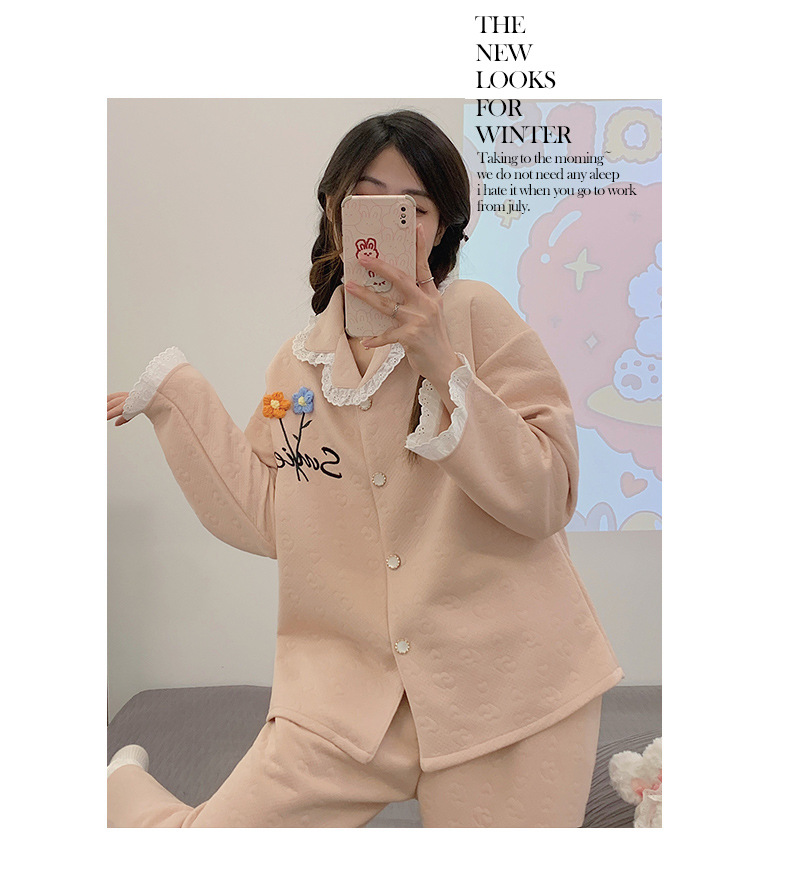 冬季空气棉夹层睡衣女可爱甜美风舒适加厚保暖2023新款家居服套装