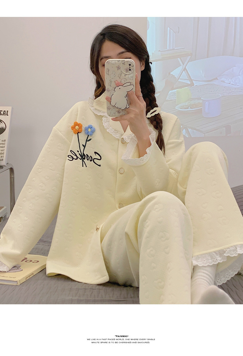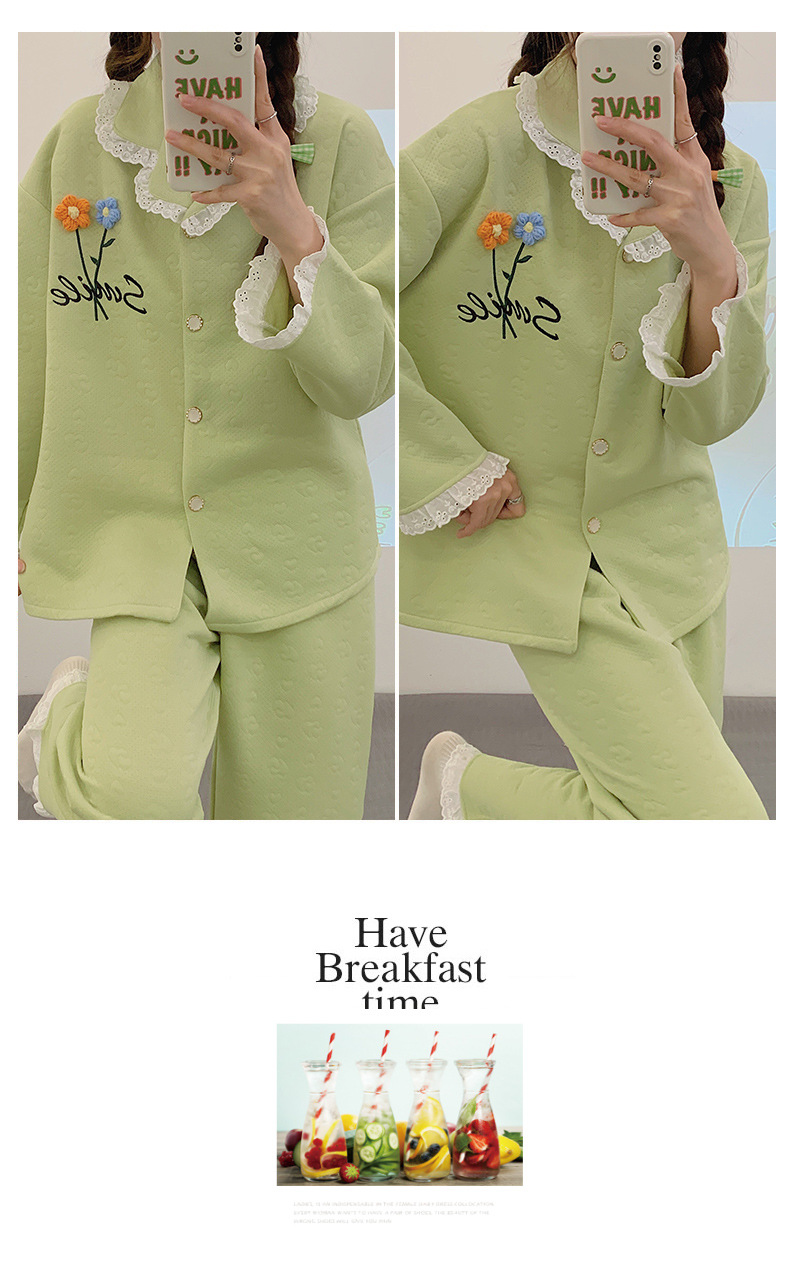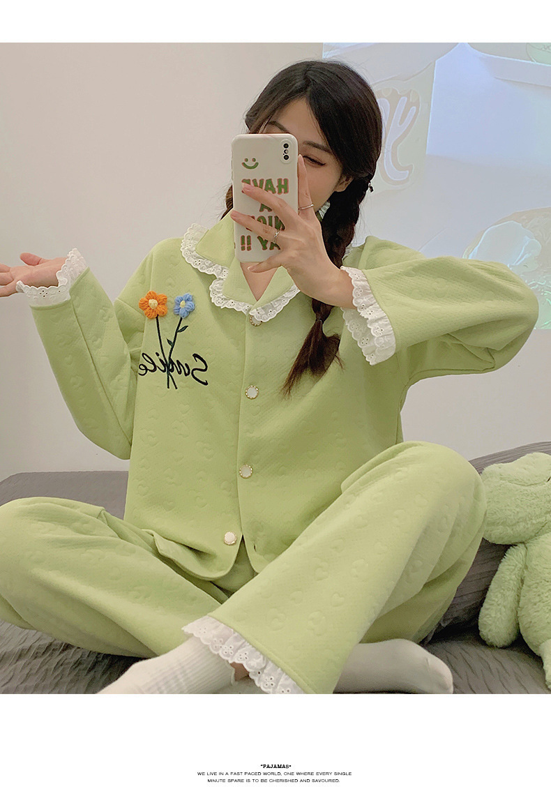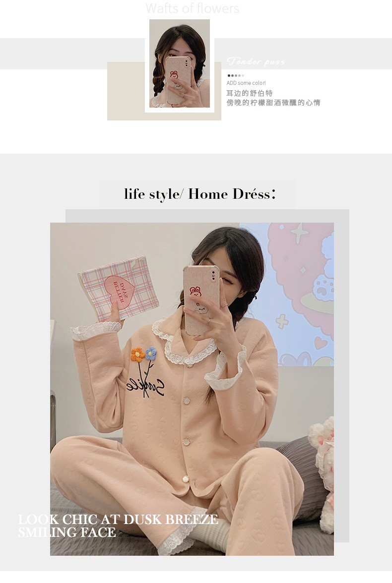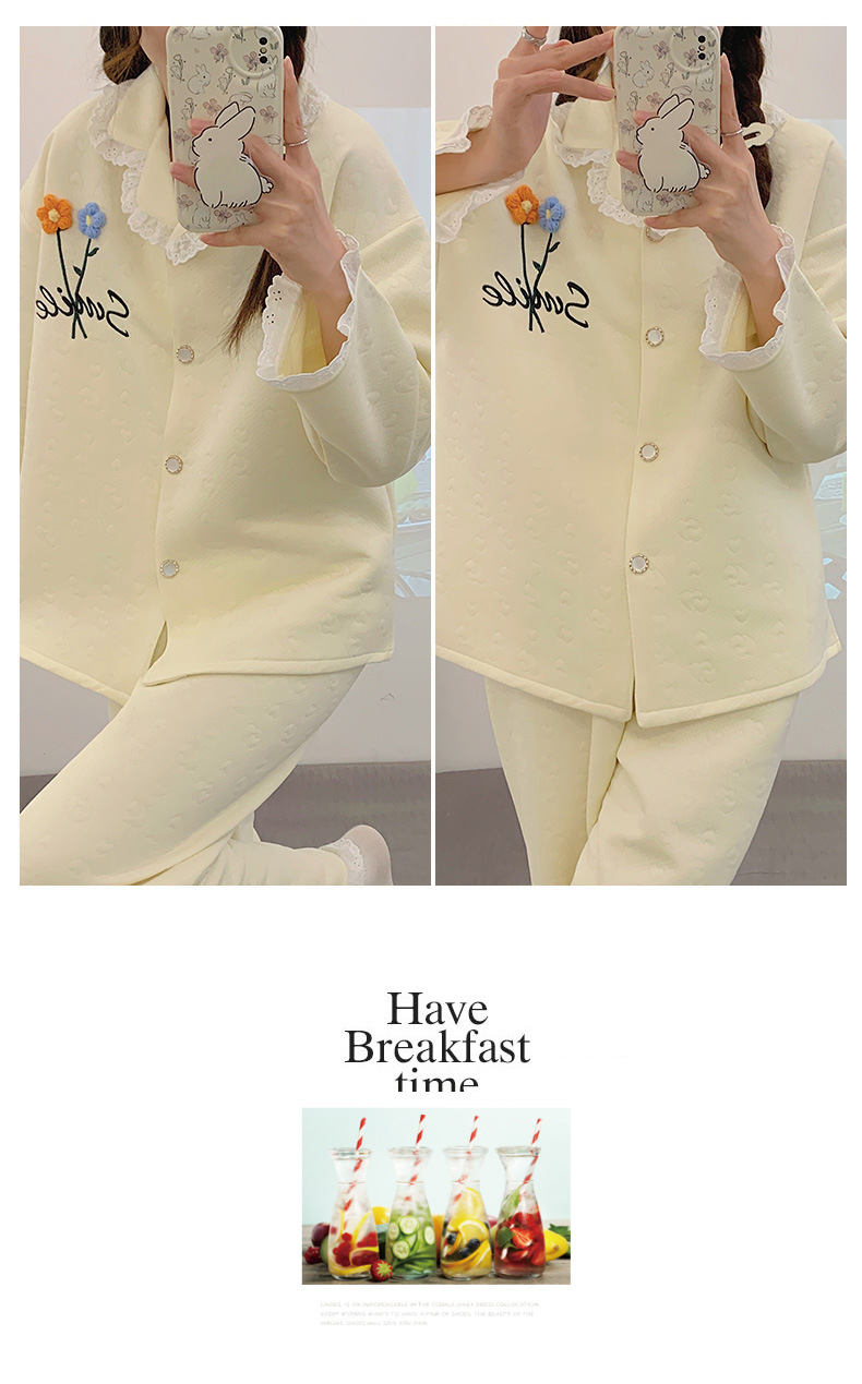冬季空气棉夹层睡衣女可爱甜美风舒适加厚保暖2023新款家居服套装