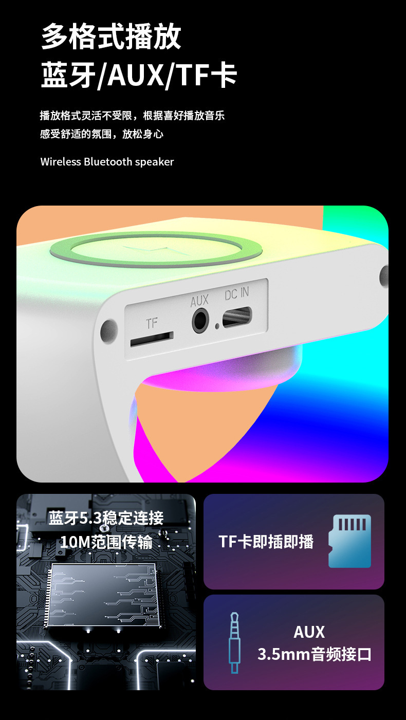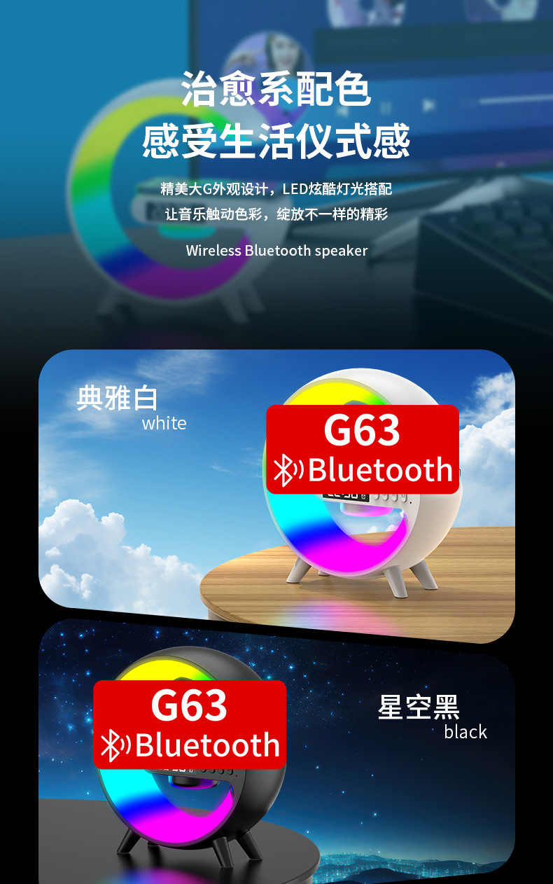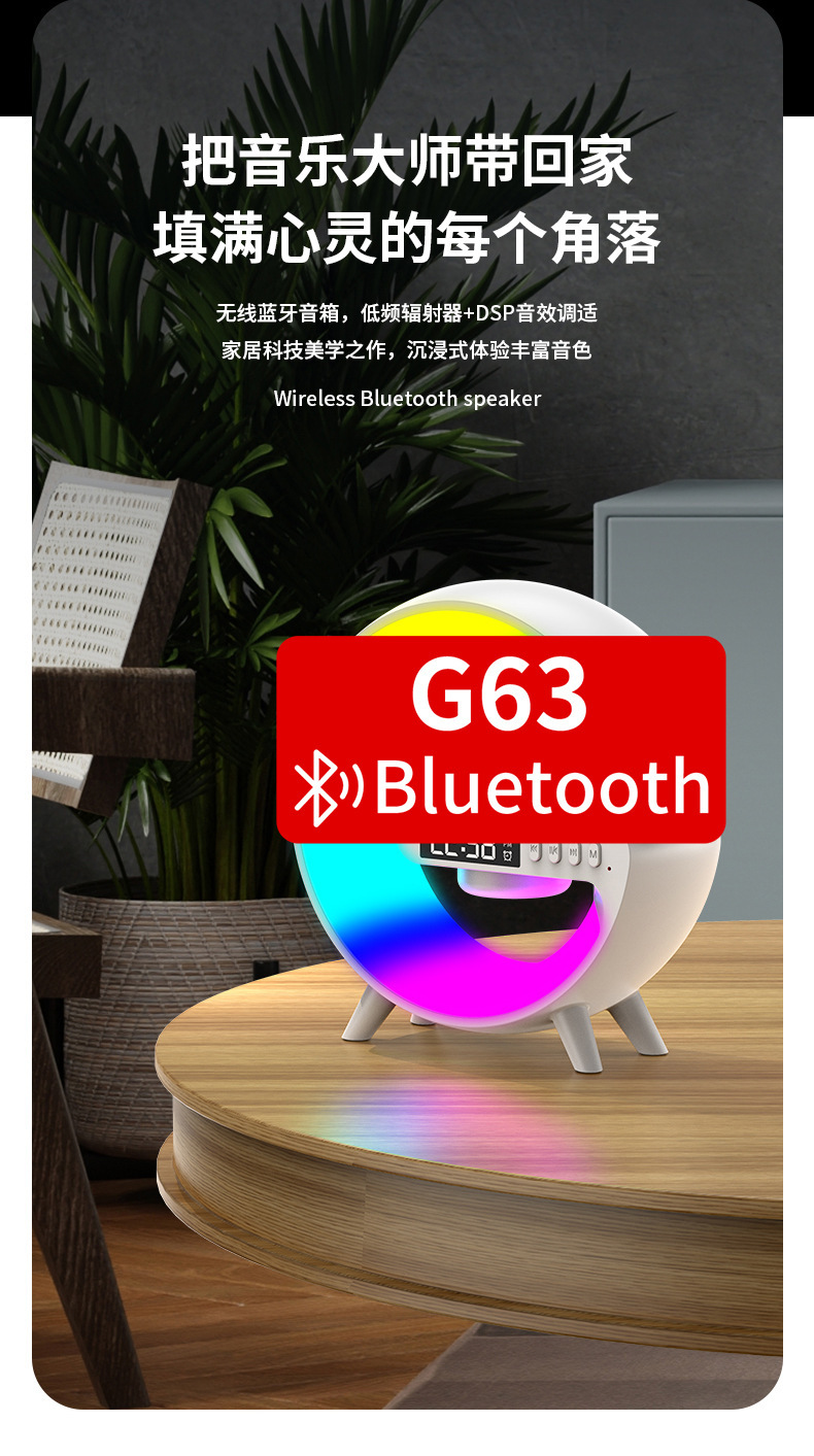 音响蓝牙 爆款G63炫彩带时钟灯床头无线充蓝牙音箱多功能蓝牙音响