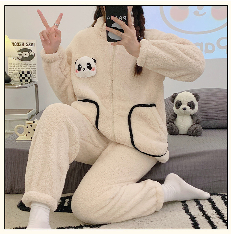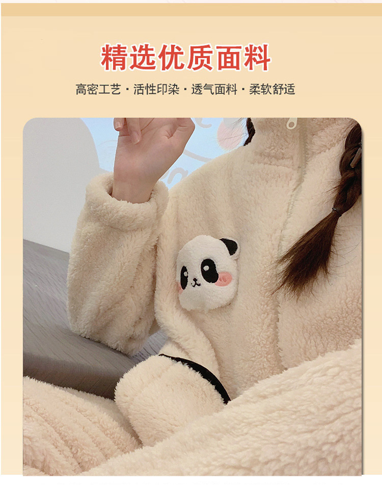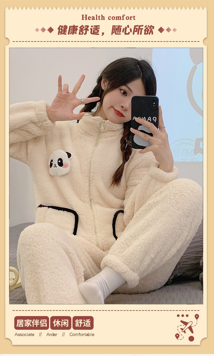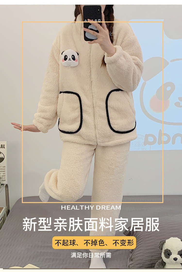 珊瑚绒睡衣冬季2023年舒适加厚法兰绒开衫拉链家居服可外穿两件套