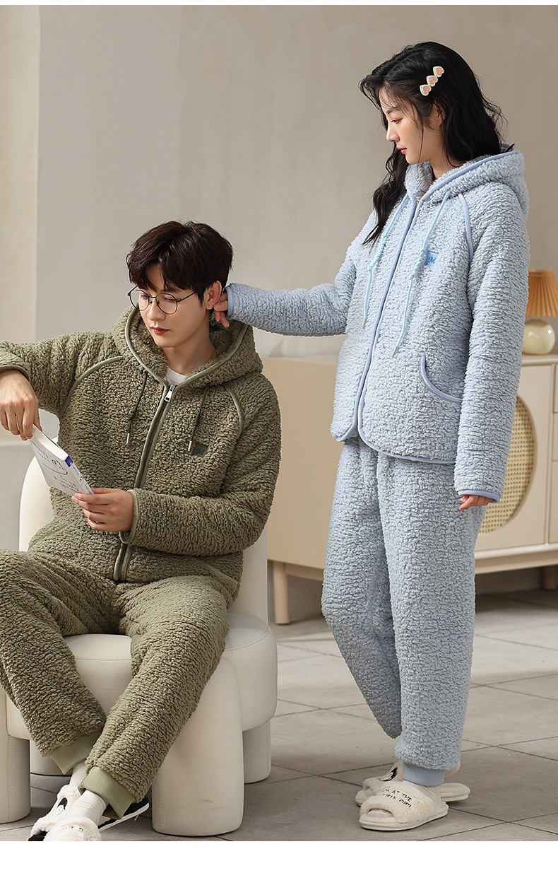 2023冬季新款可爱甜美珊瑚绒套装情侣睡衣保暖法兰绒家居服可外穿