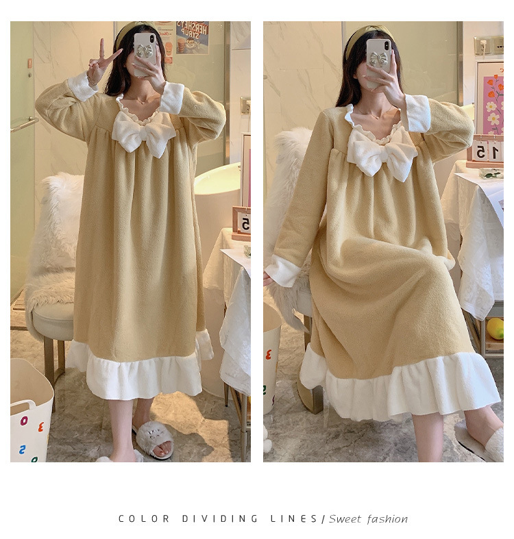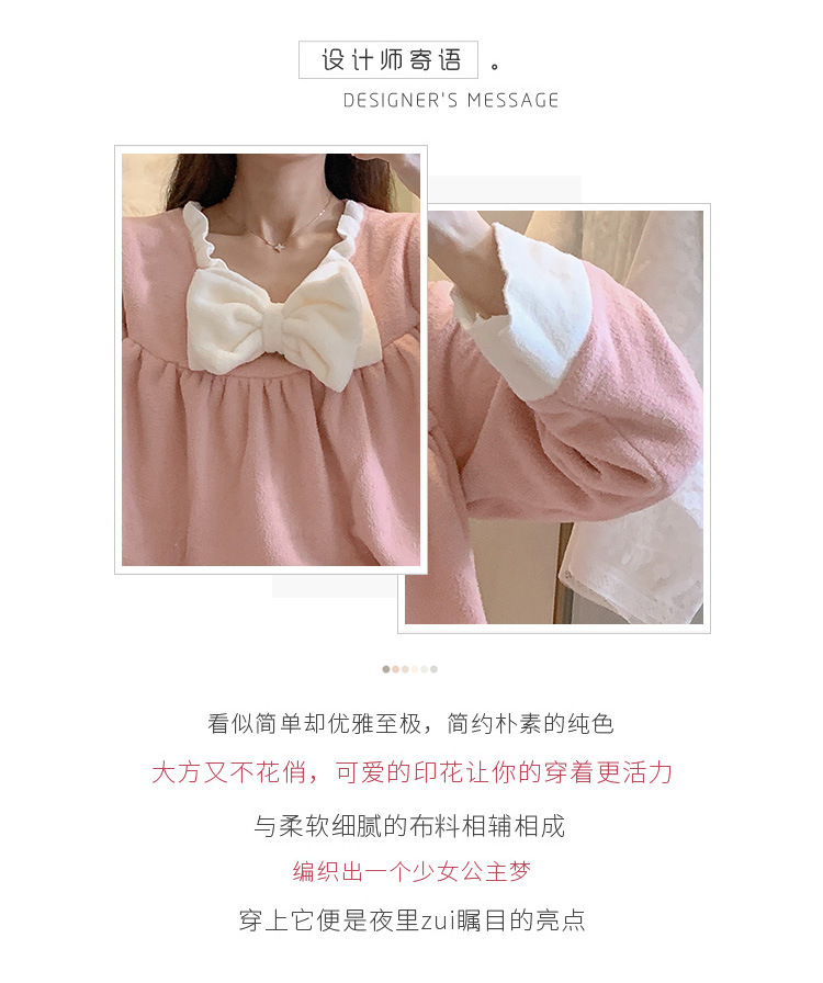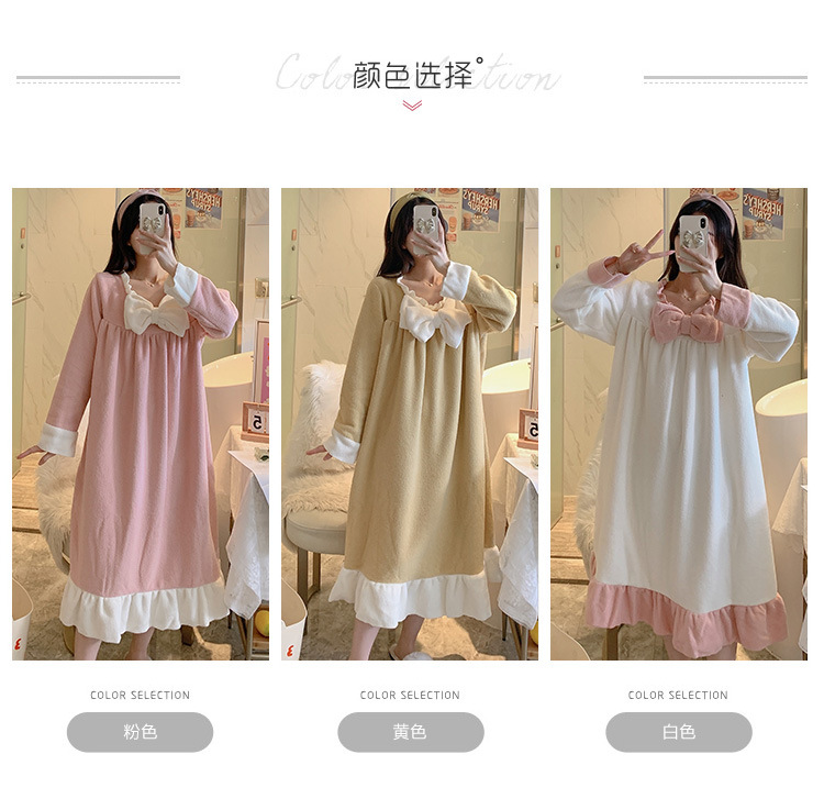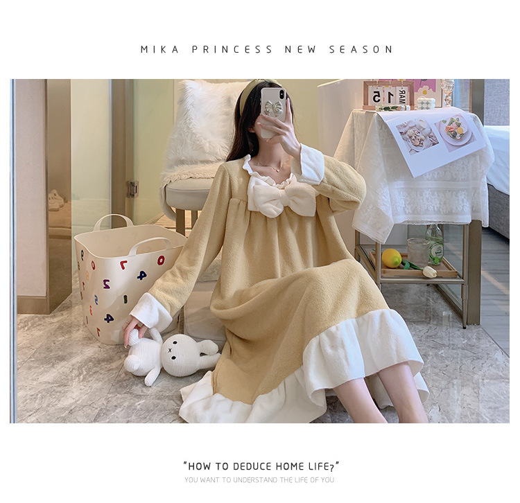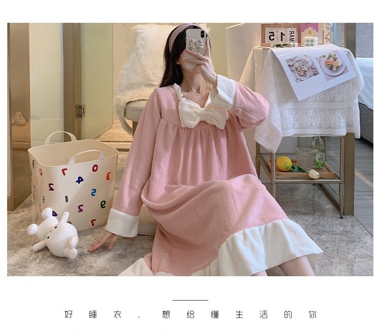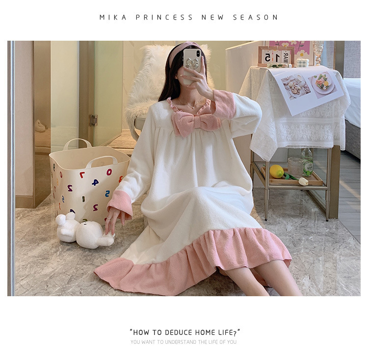 可爱珊瑚绒睡裙女冬季新款公主风加厚款舒适蝴蝶结少女长裙家居服