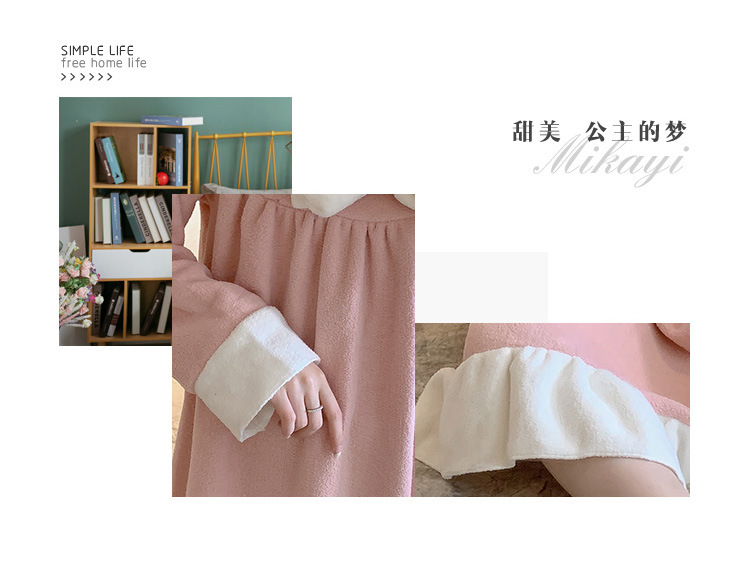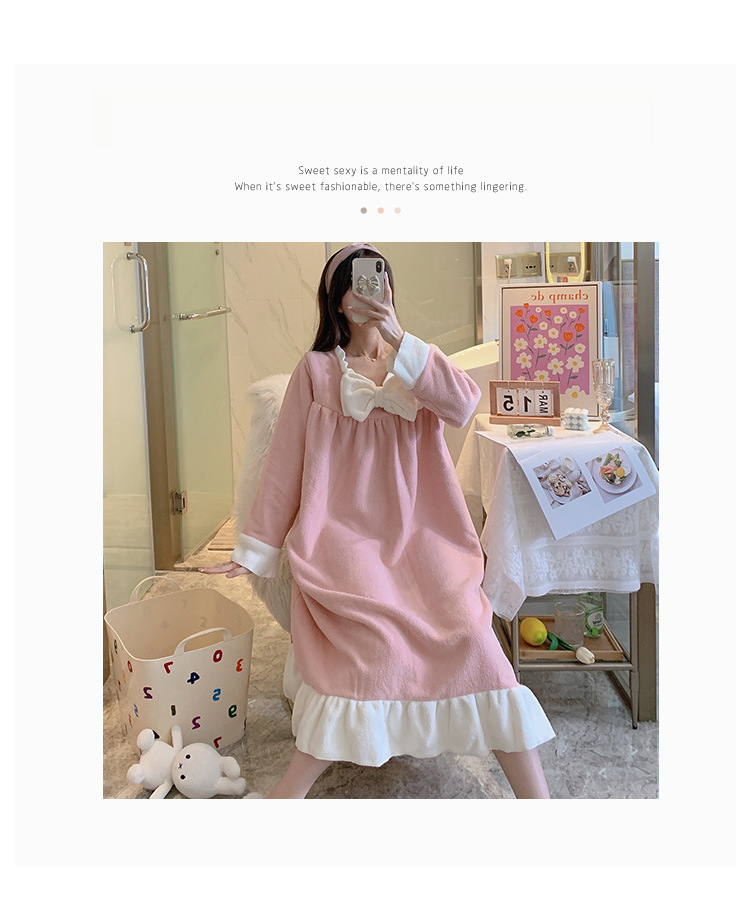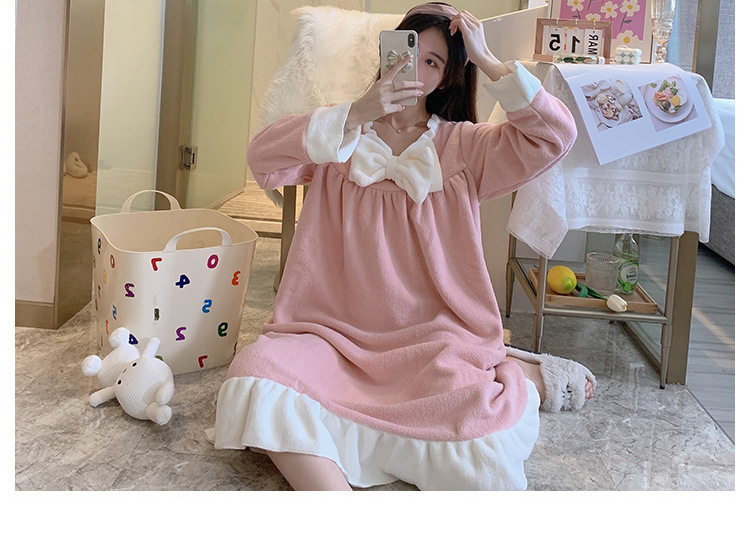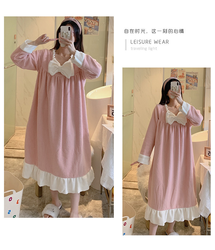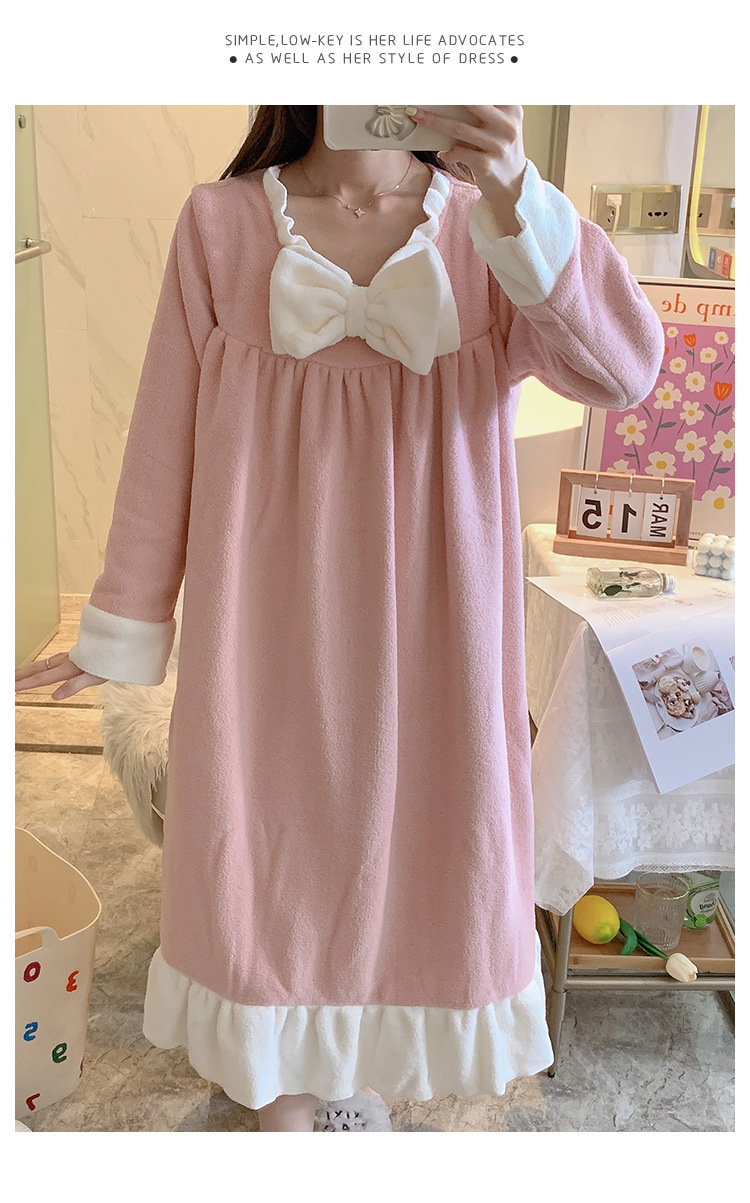 可爱珊瑚绒睡裙女冬季新款公主风加厚款舒适蝴蝶结少女长裙家居服