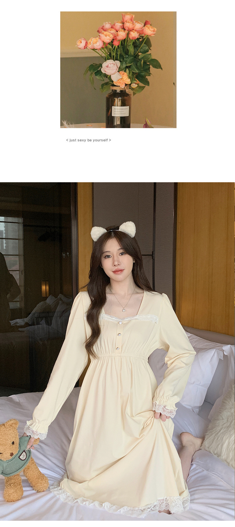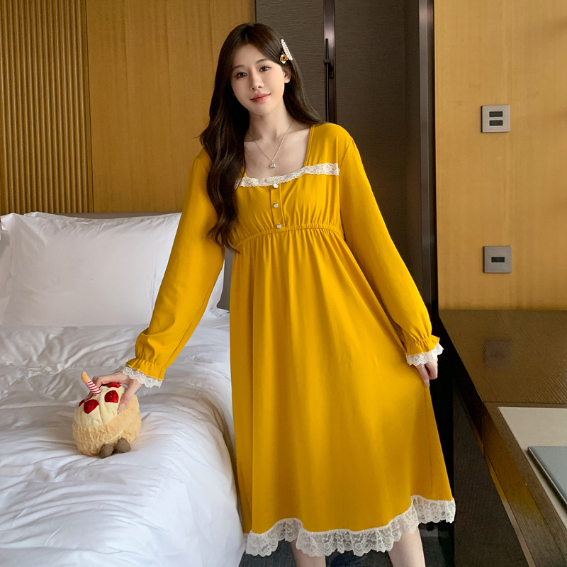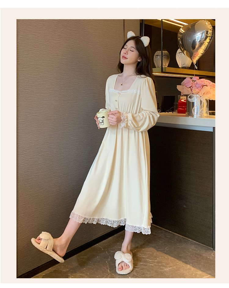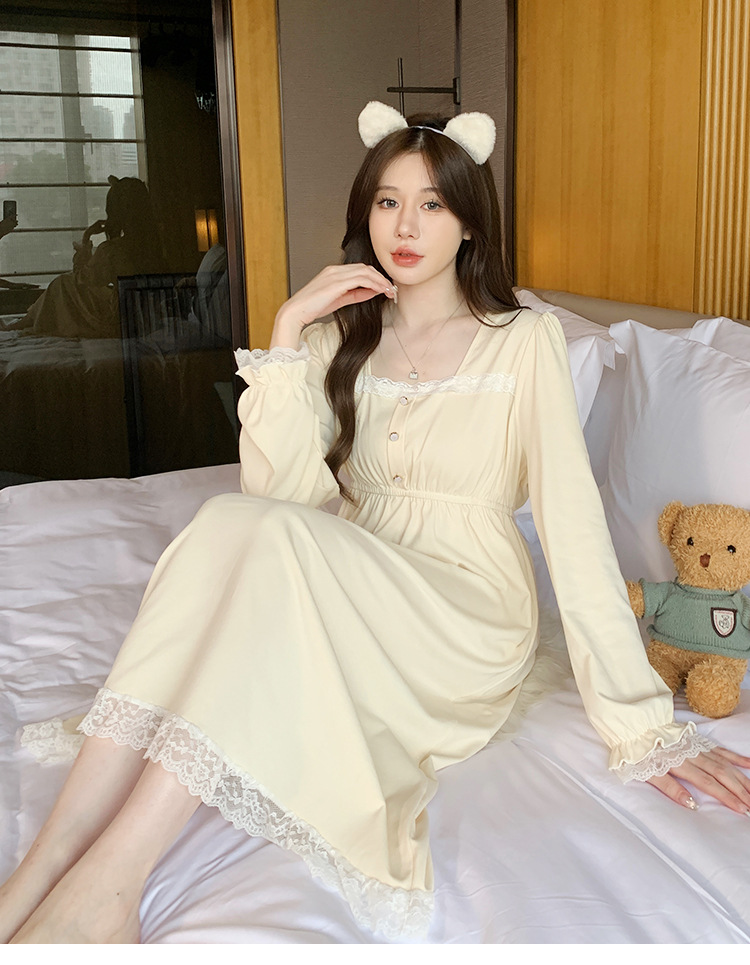 2023年新款秋冬纯棉睡裙女可爱时尚高级感公主风长袖家居服可外穿