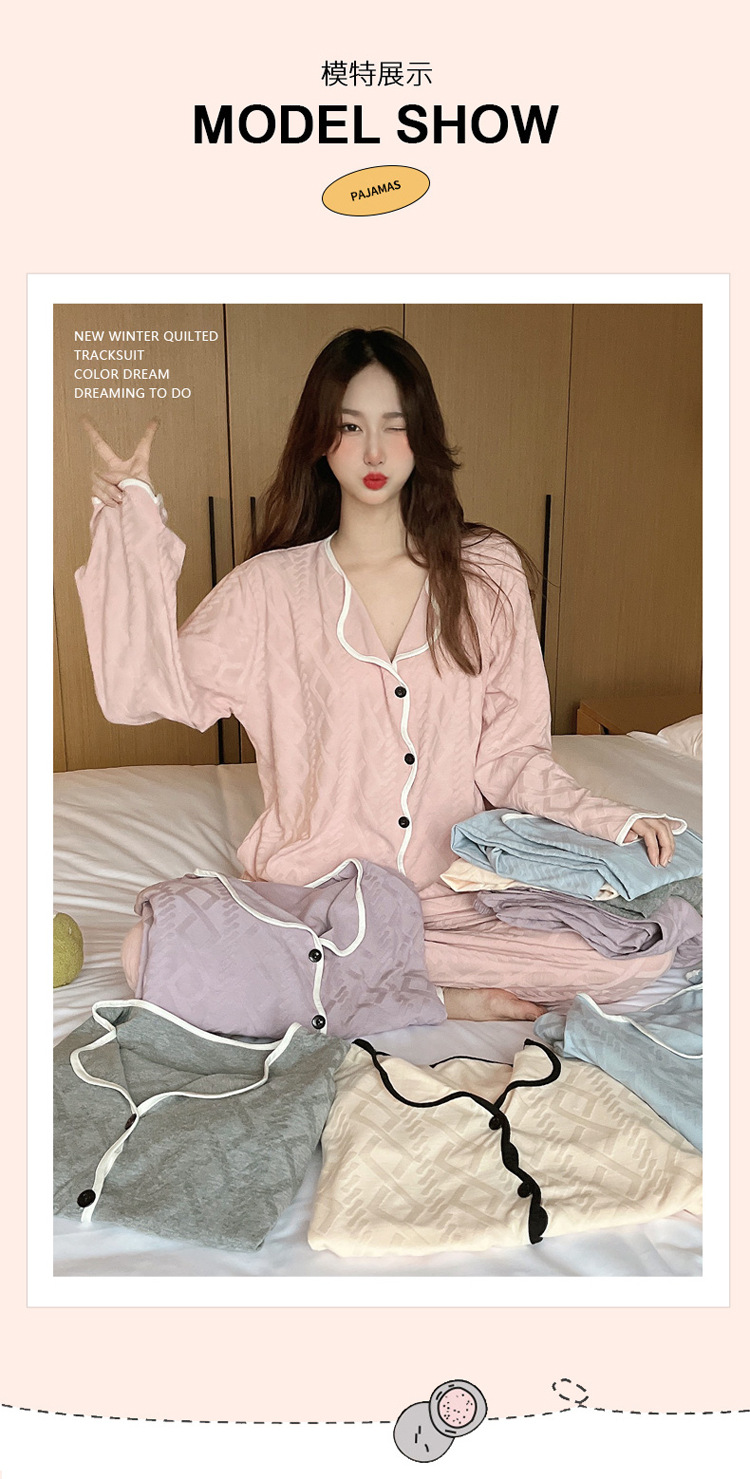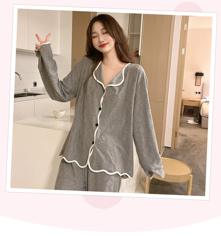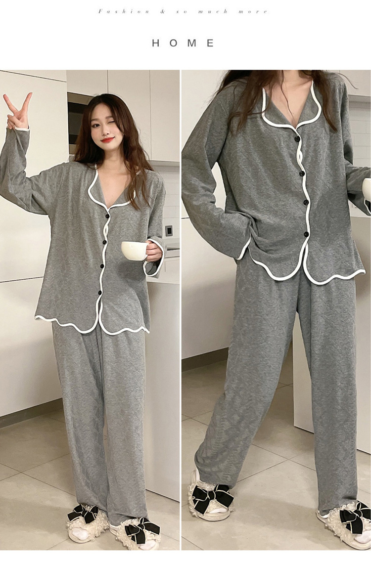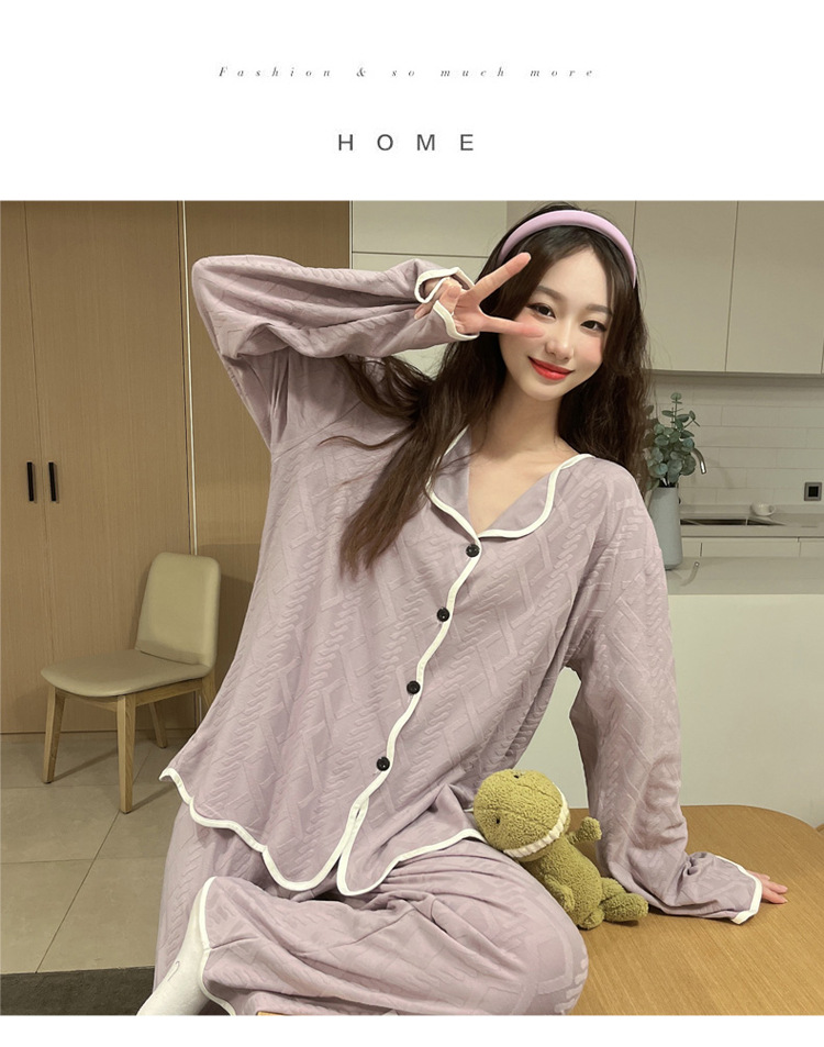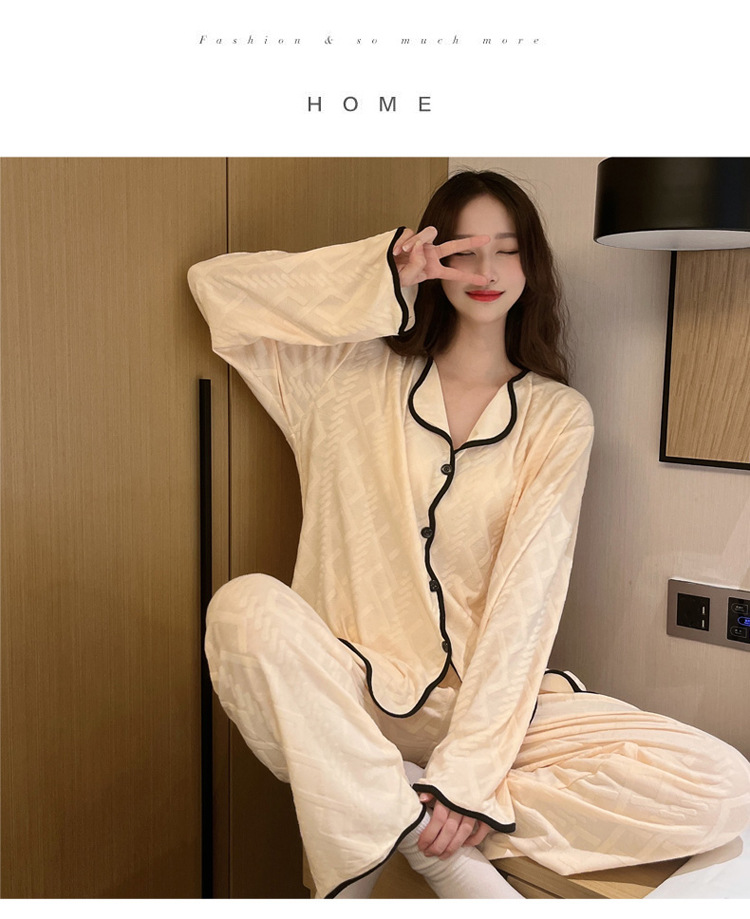 秋季休闲简约长袖长裤睡衣女士2023年新款高级感开衫家居服可外穿
