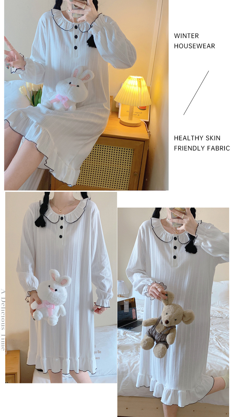 秋季纯色睡裙女2023年新款可爱简约时尚长袖中裙休闲家居服可外穿
