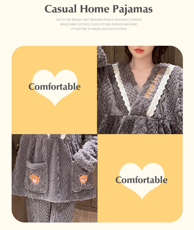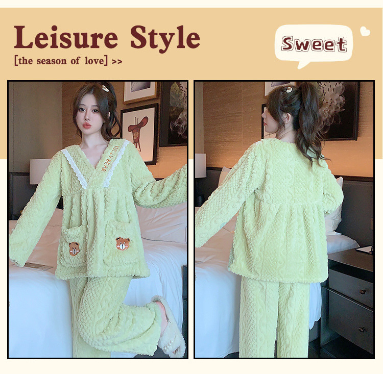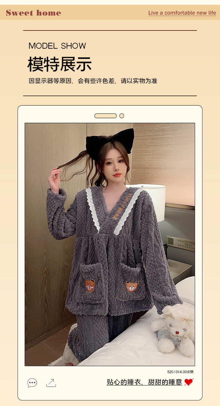 冬季新款法兰绒睡衣女2023年舒适大码保暖珊瑚绒家居服可外穿套装