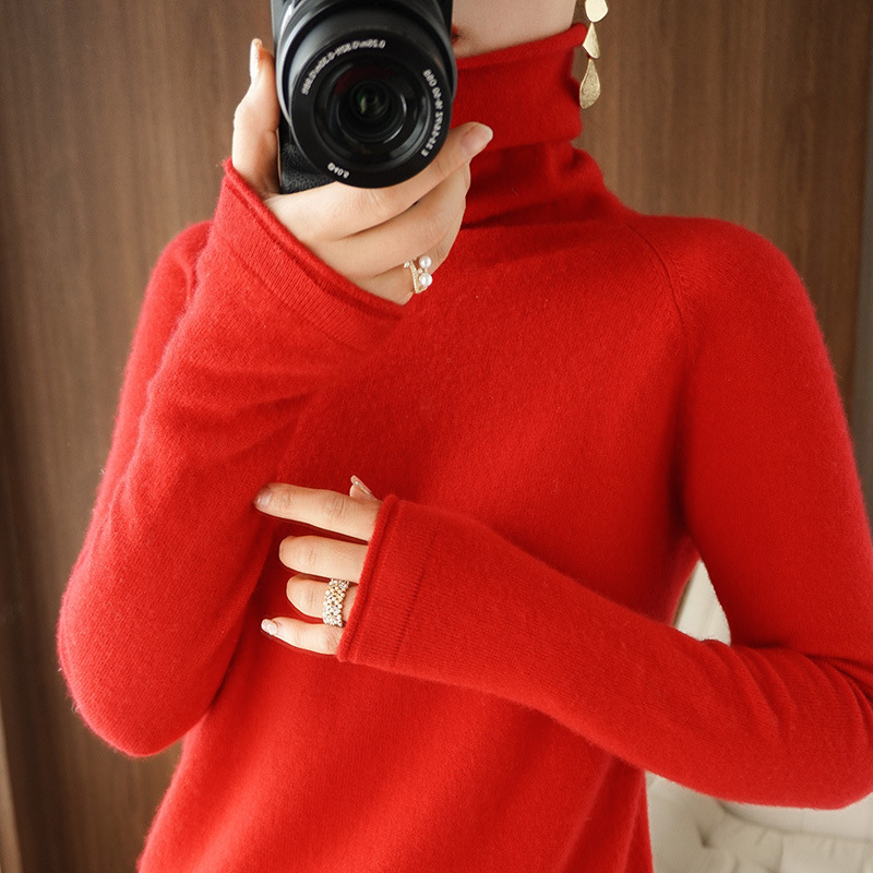 秋冬新款高领针织衫女长袖毛衣堆堆领纯色宽松显瘦打底衫上衣洋气