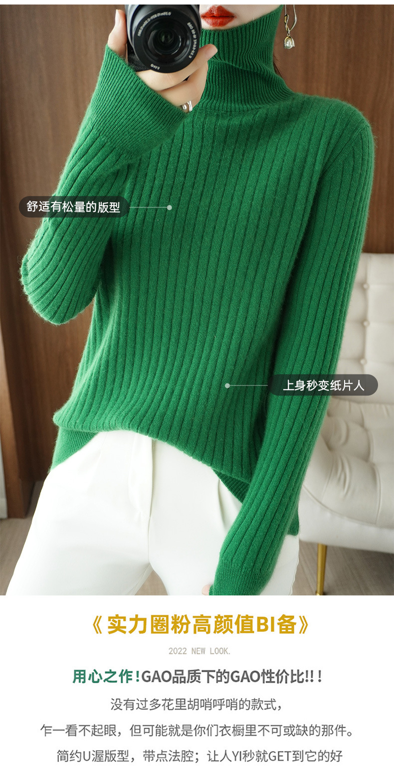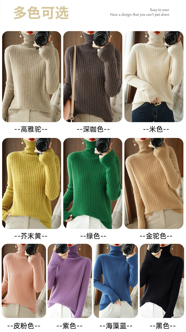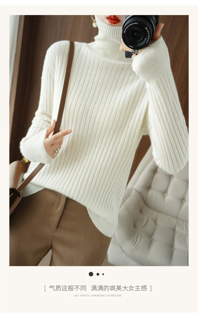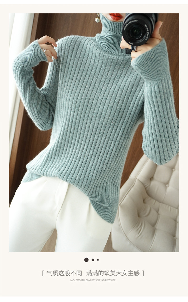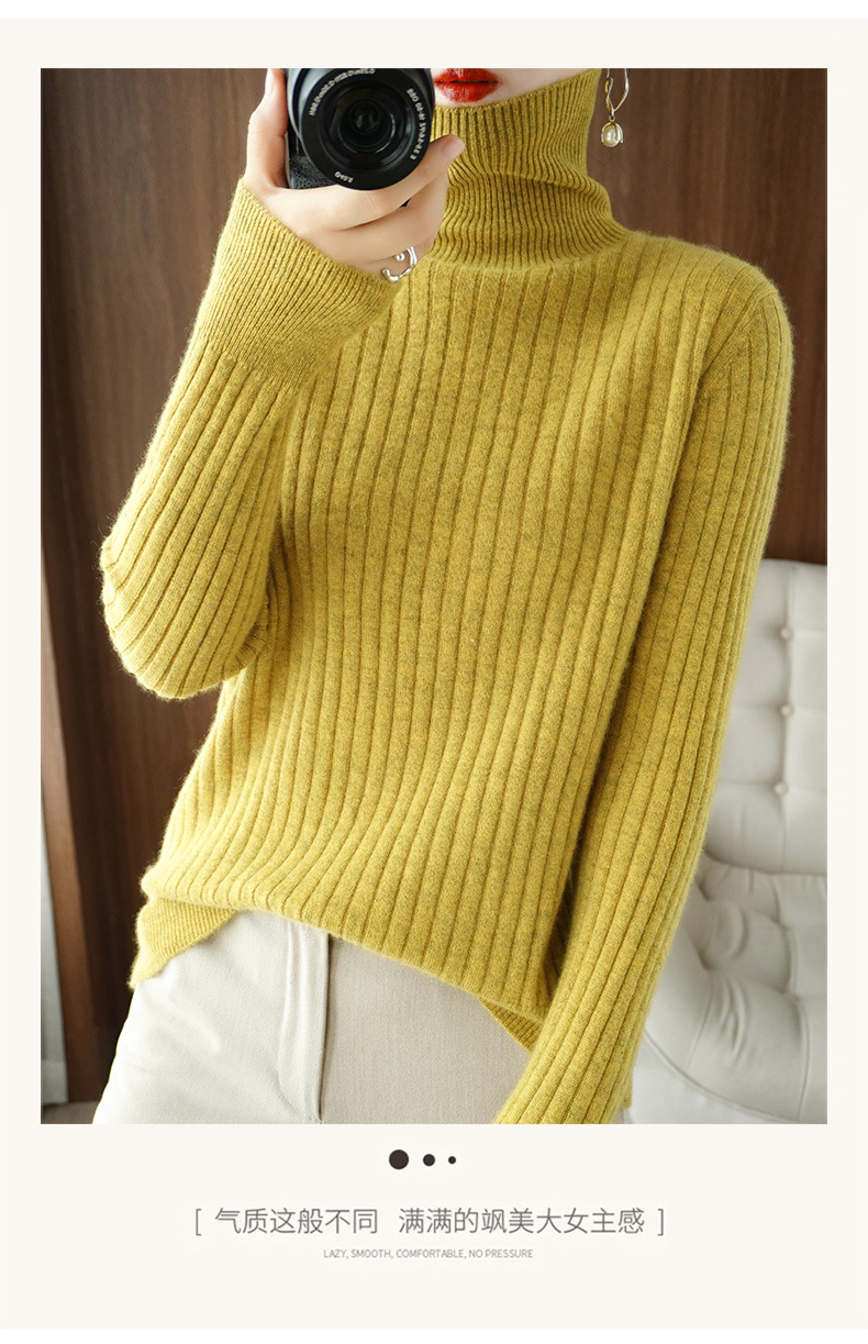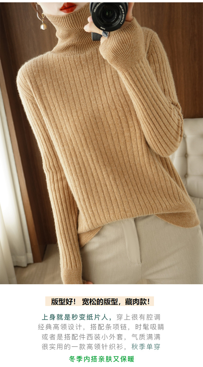 23秋冬加厚抽条高领毛衣女秋装外穿打底衫女肌肤感立领羊毛针织衫