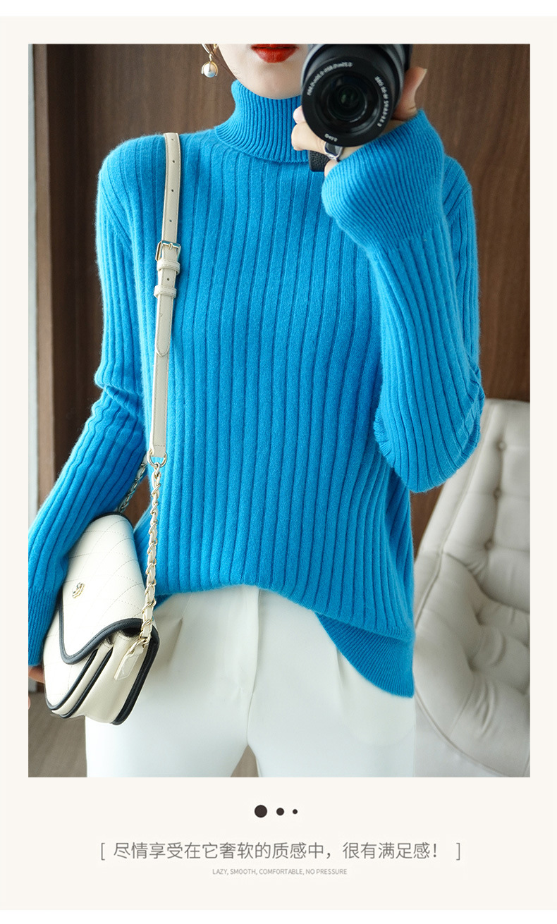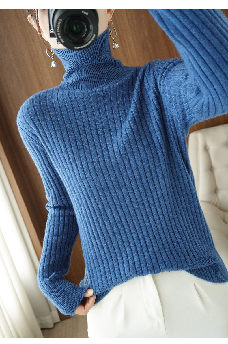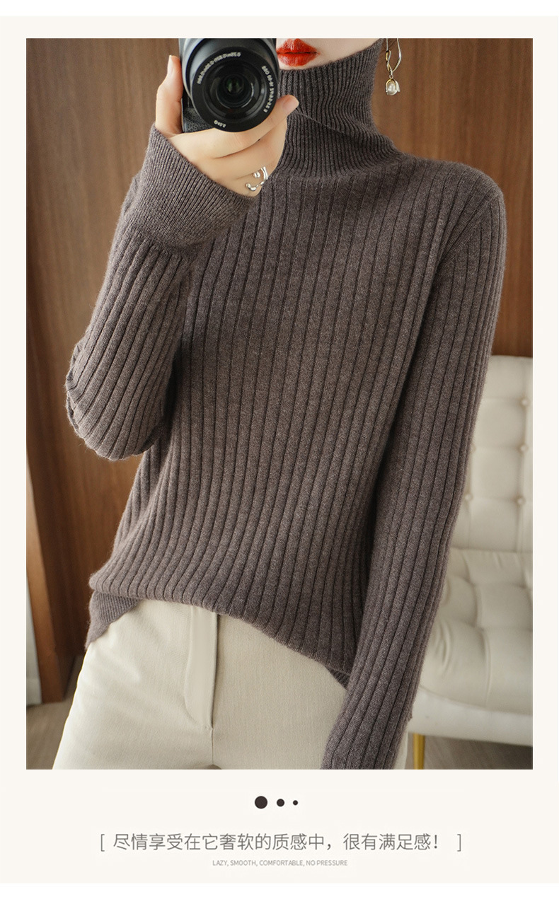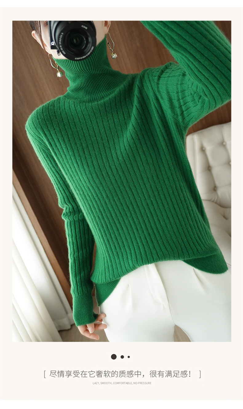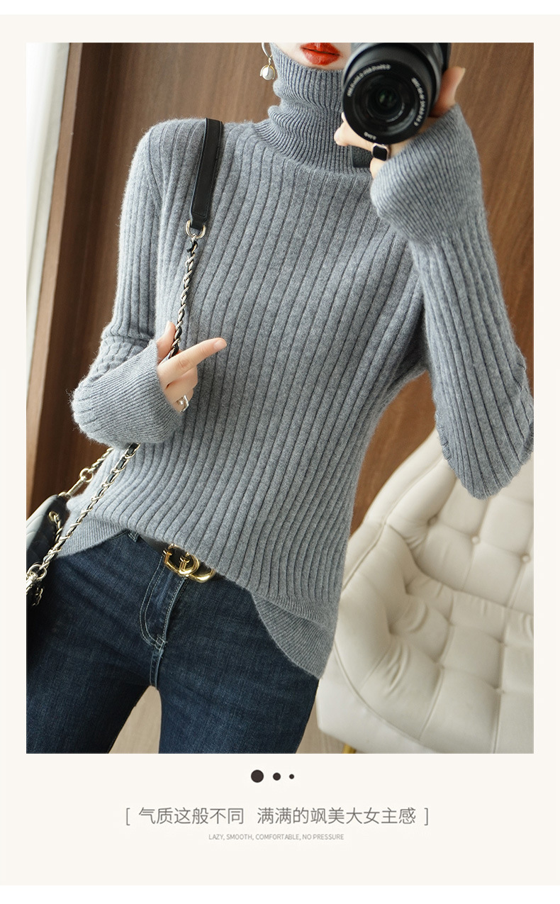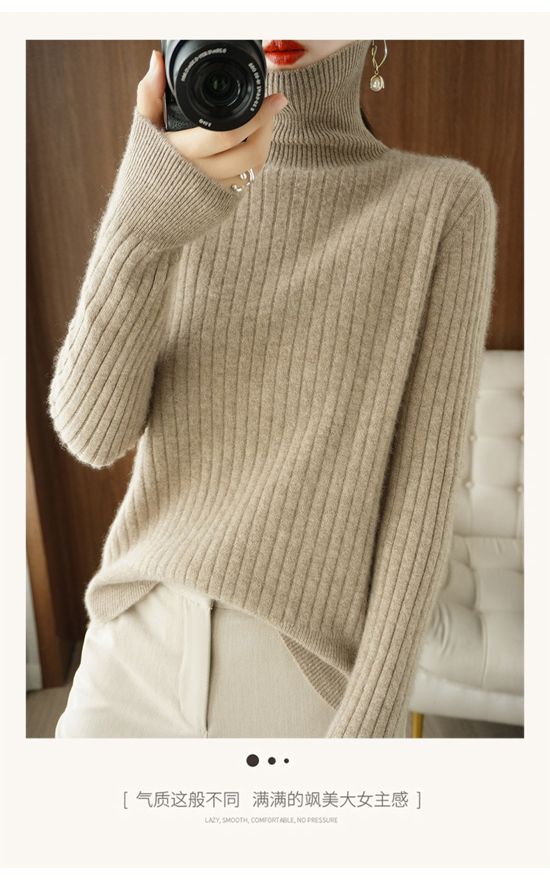 23秋冬加厚抽条高领毛衣女秋装外穿打底衫女肌肤感立领羊毛针织衫