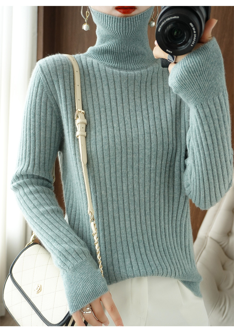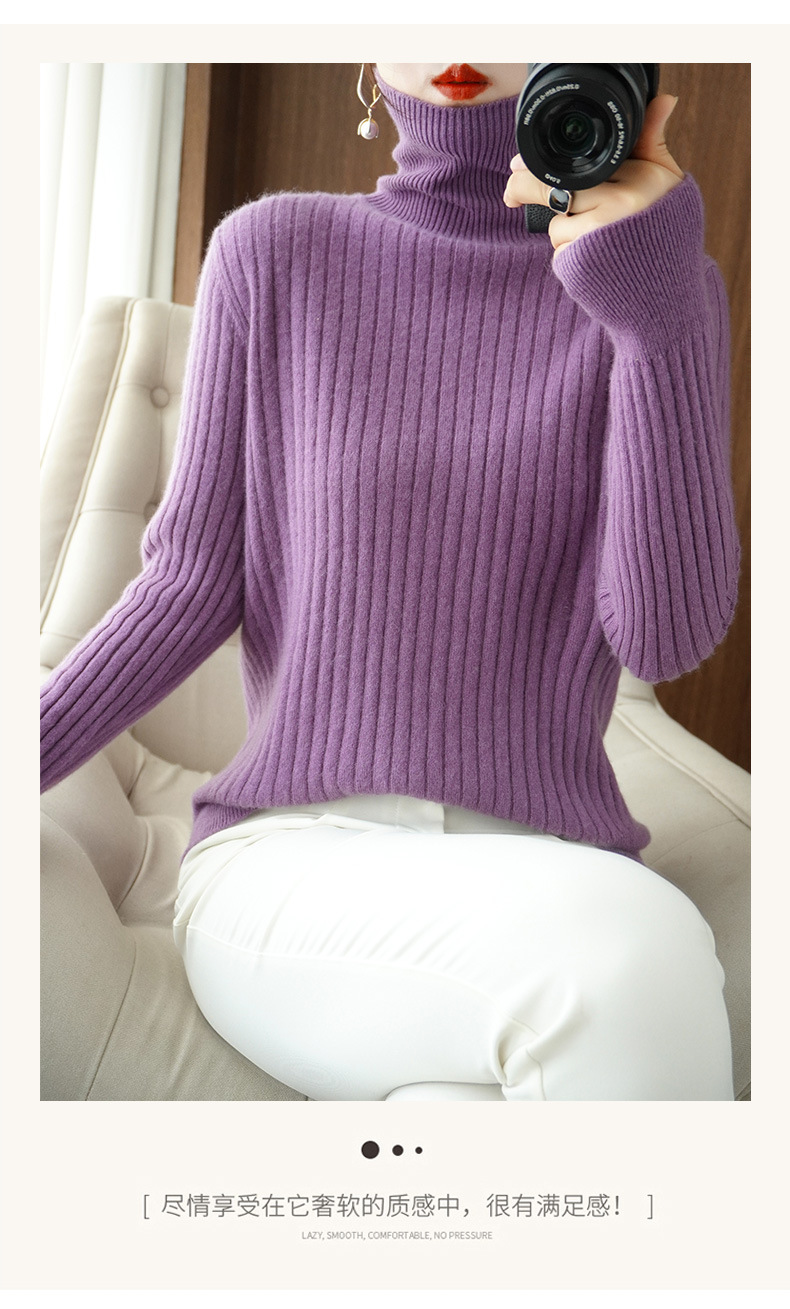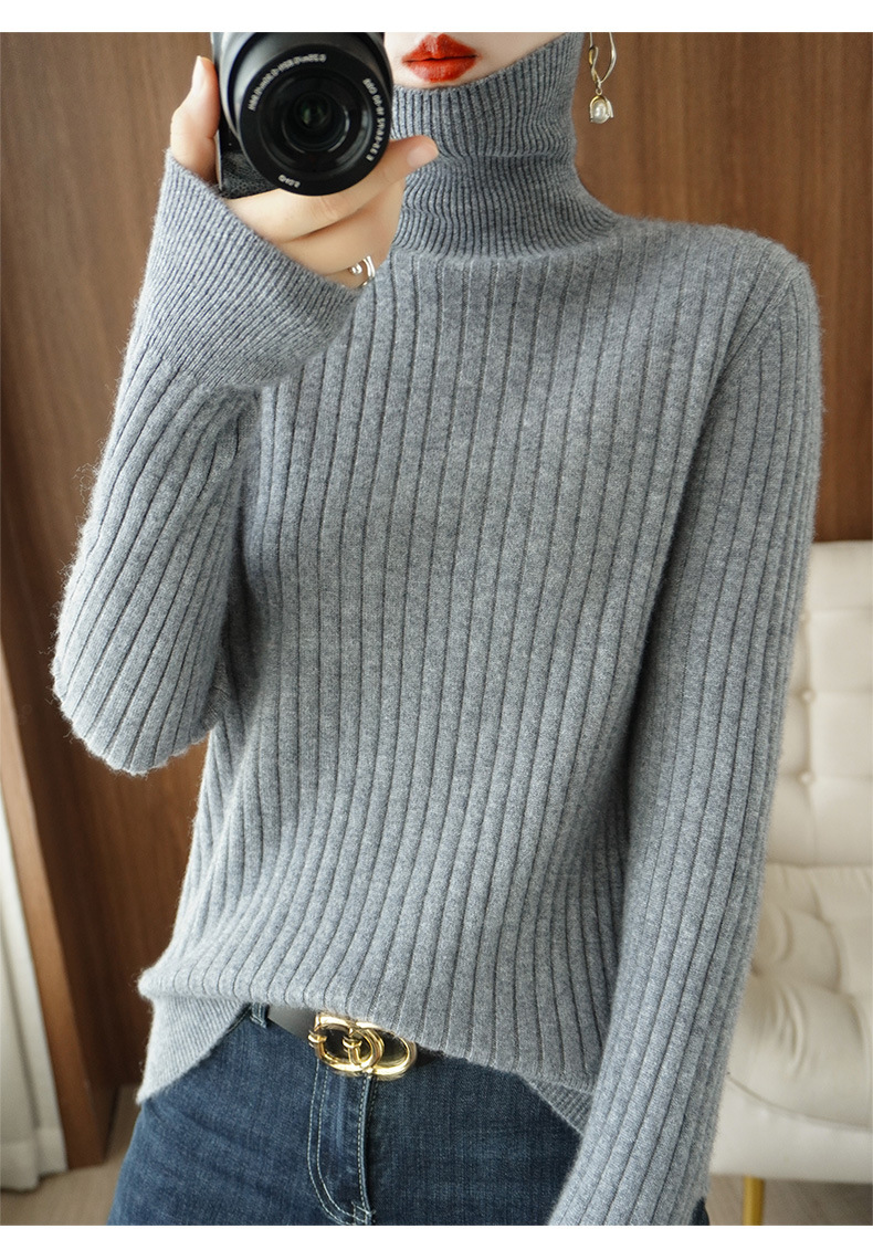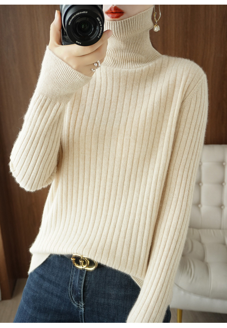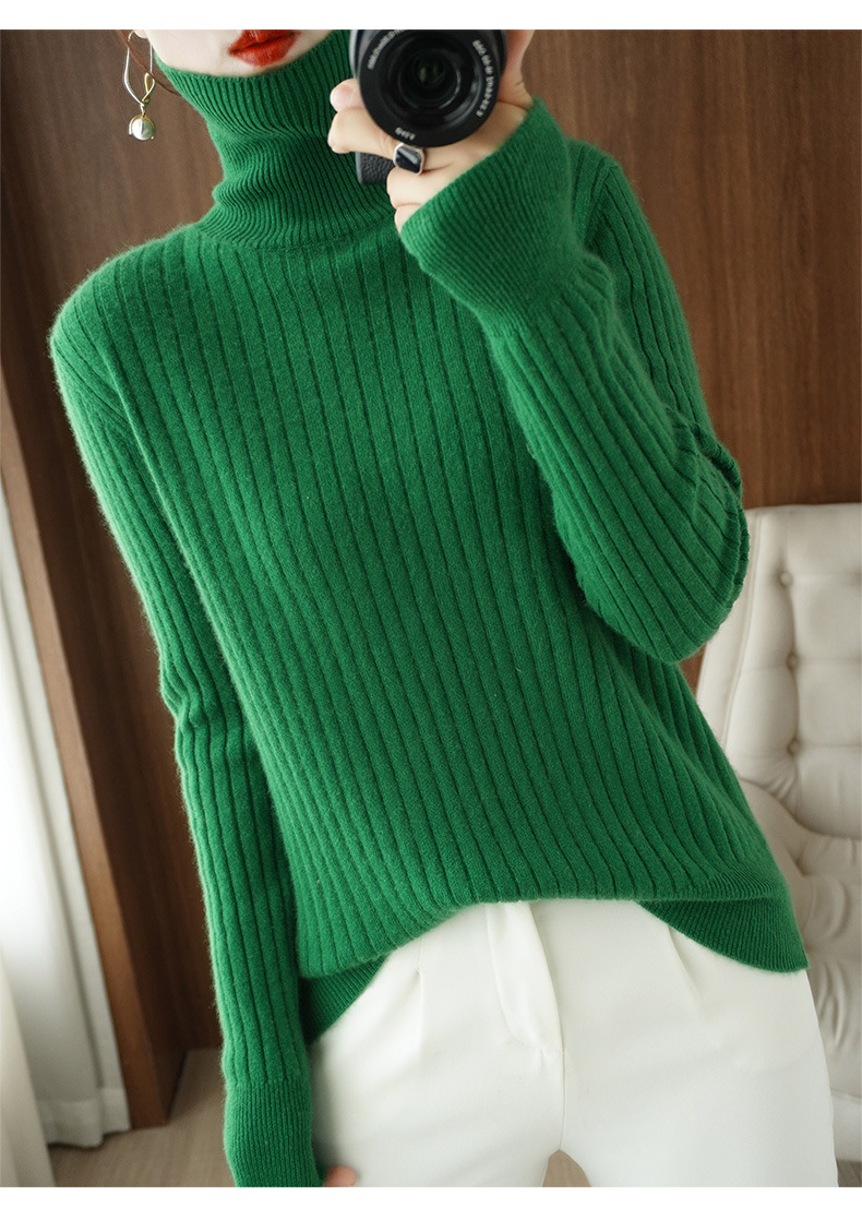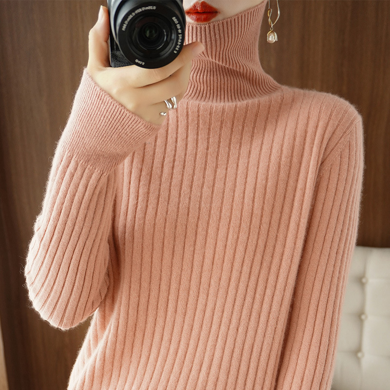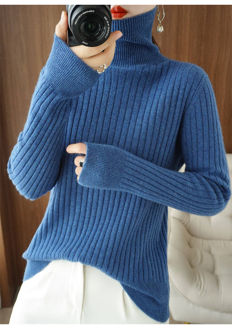23秋冬加厚抽条高领毛衣女秋装外穿打底衫女肌肤感立领羊毛针织衫