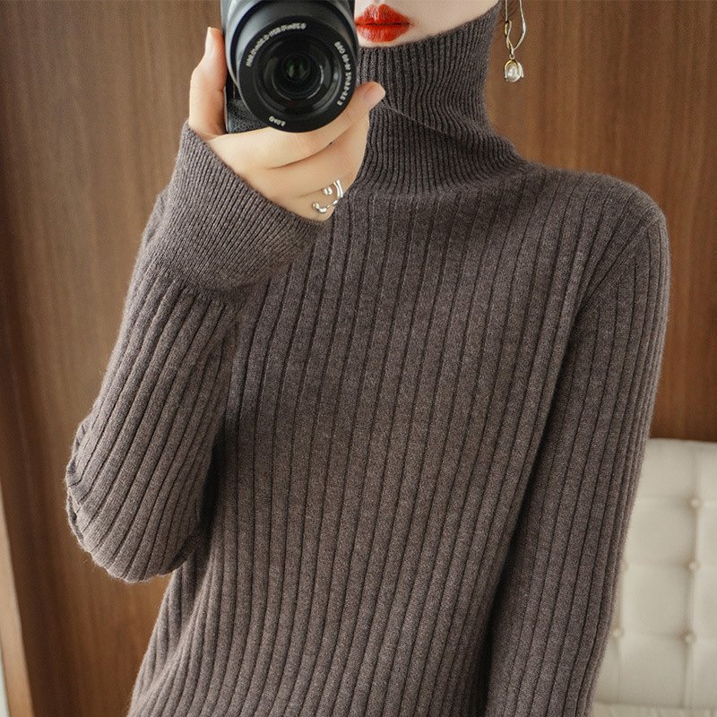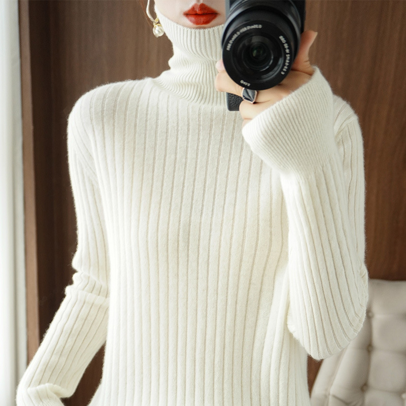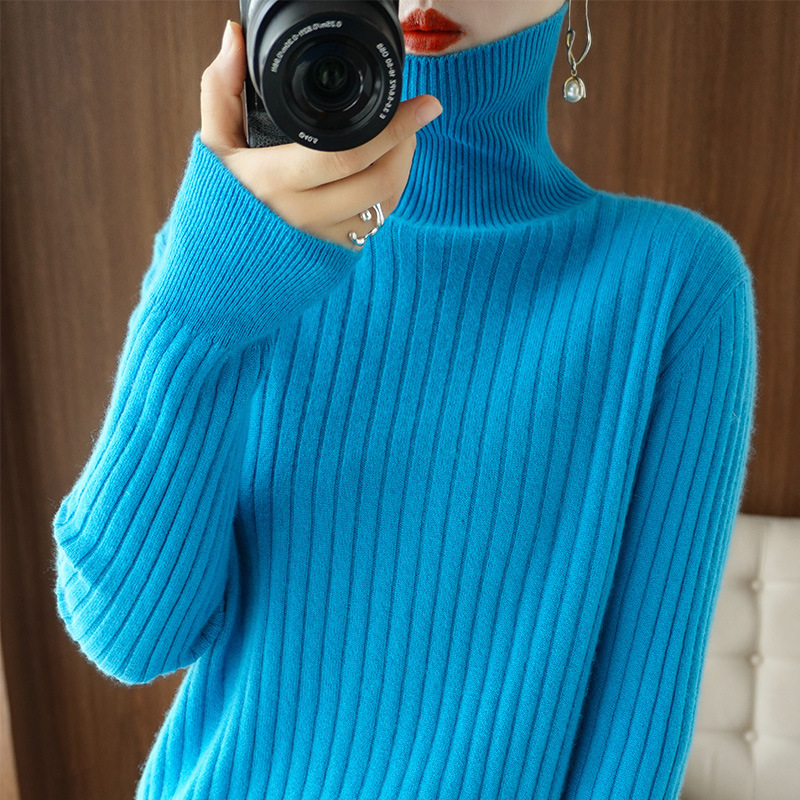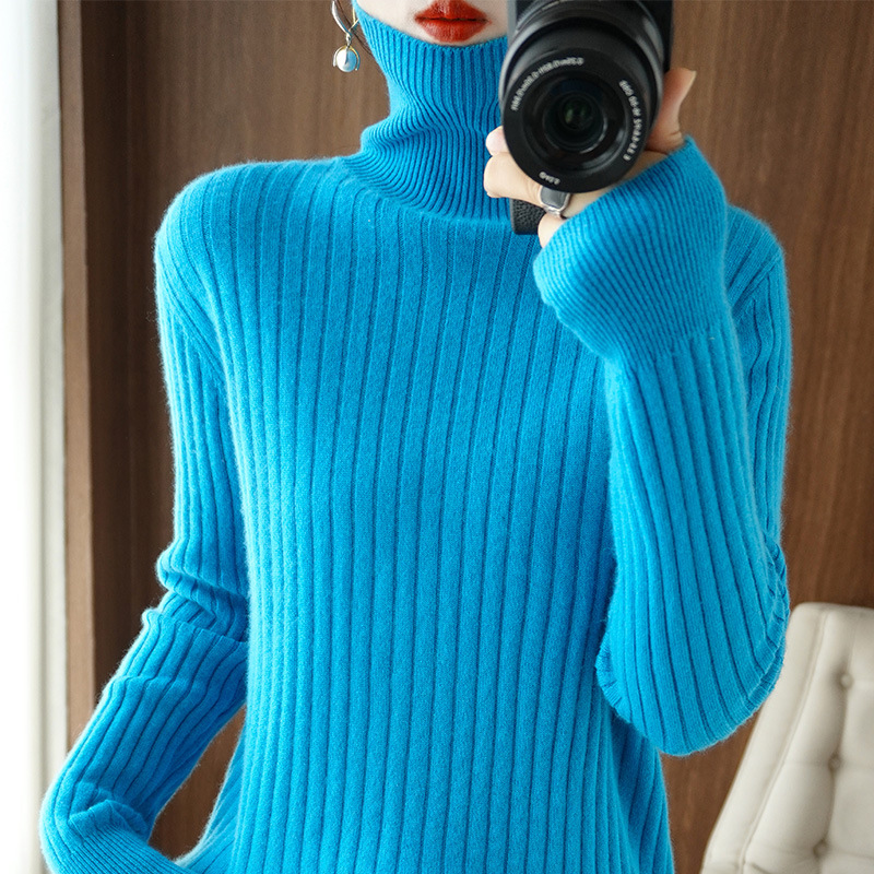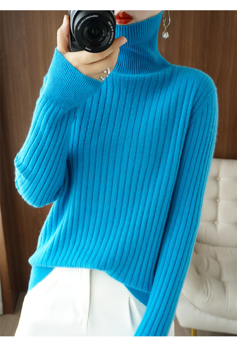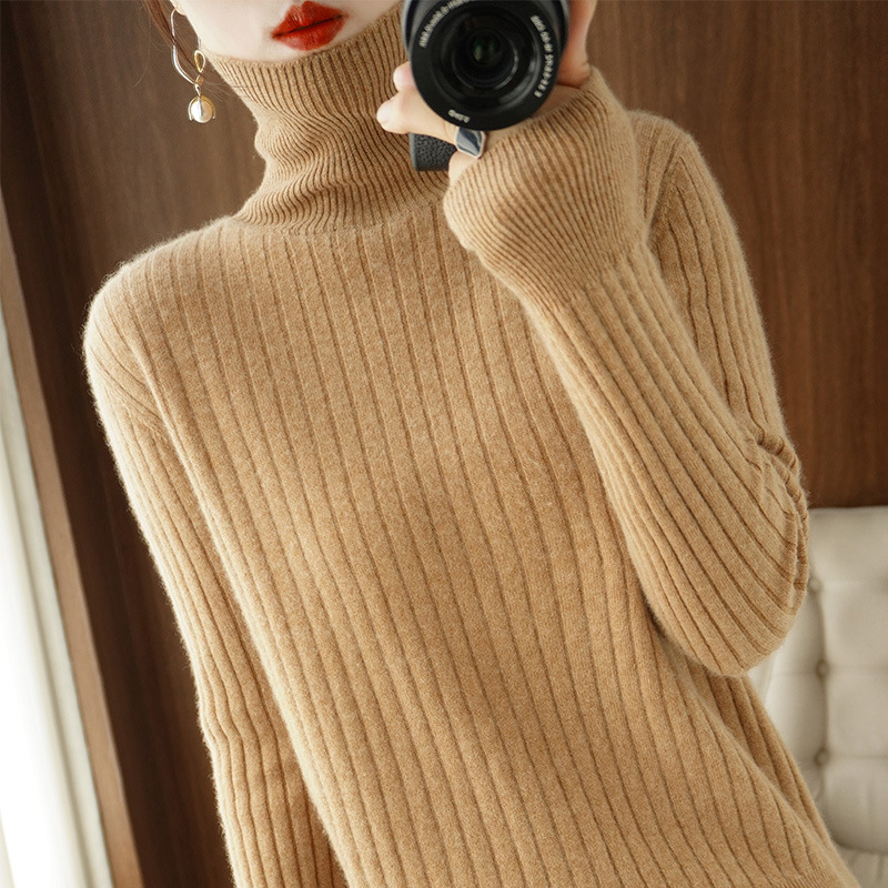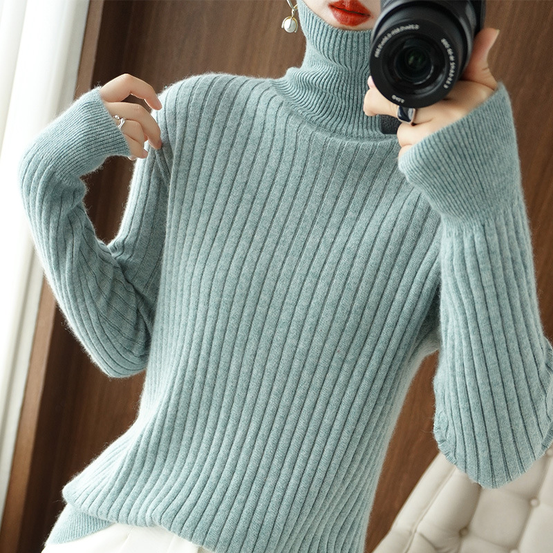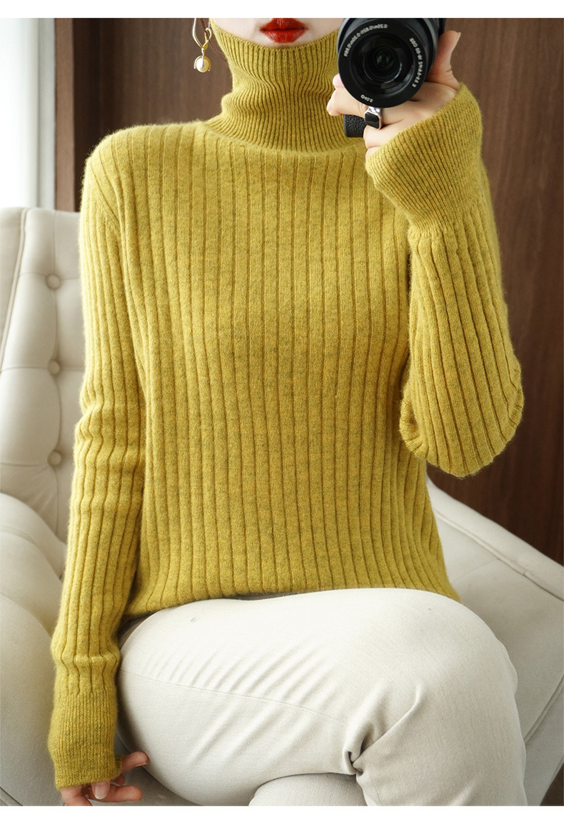 23秋冬加厚抽条高领毛衣女秋装外穿打底衫女肌肤感立领羊毛针织衫