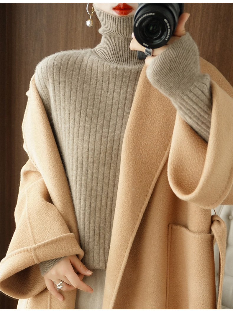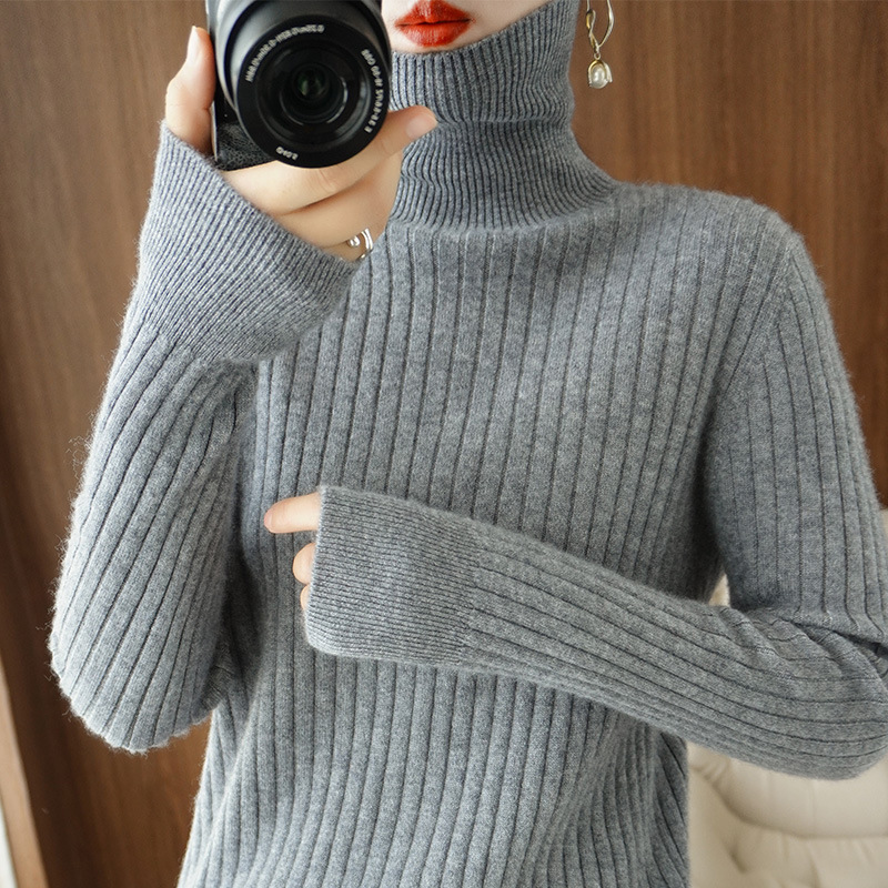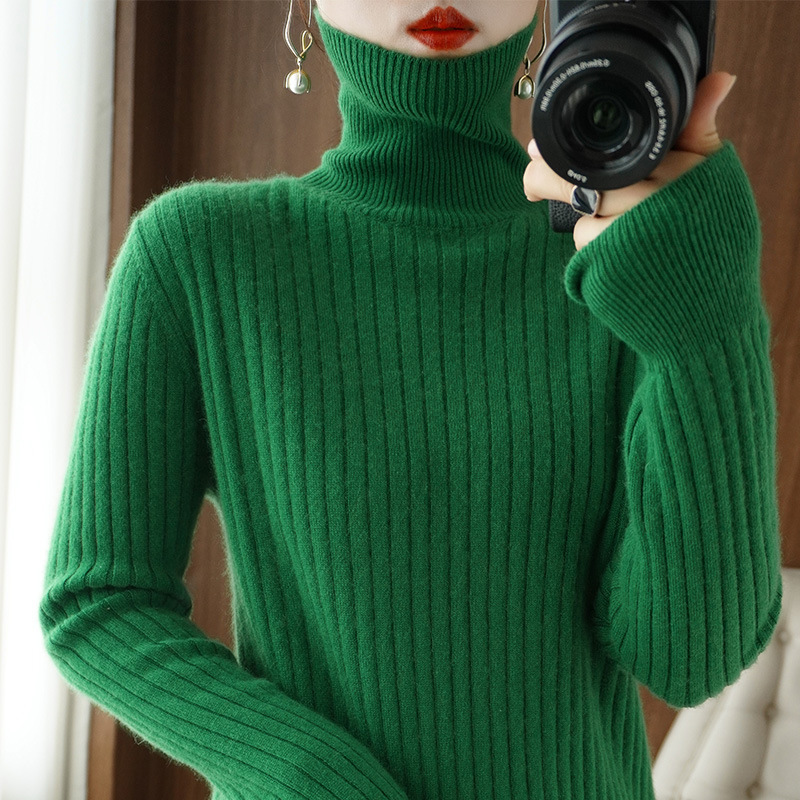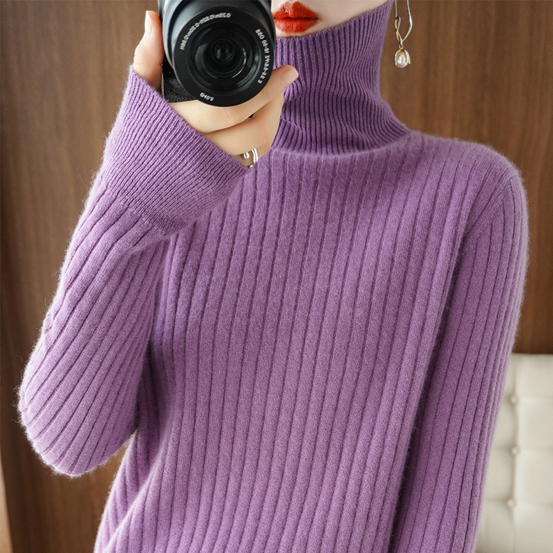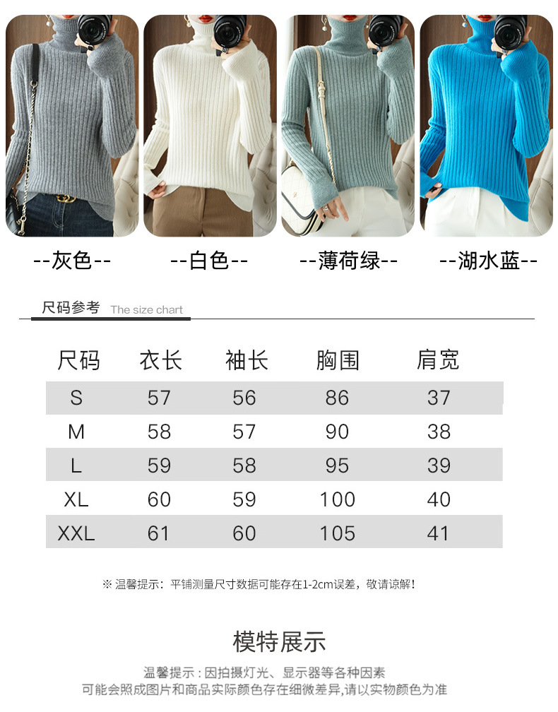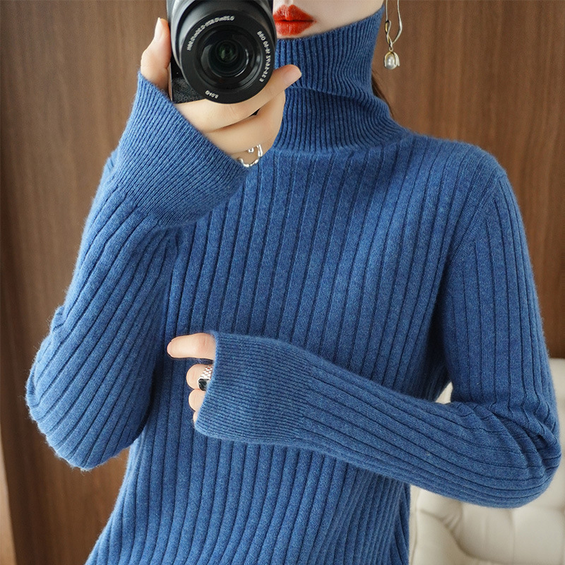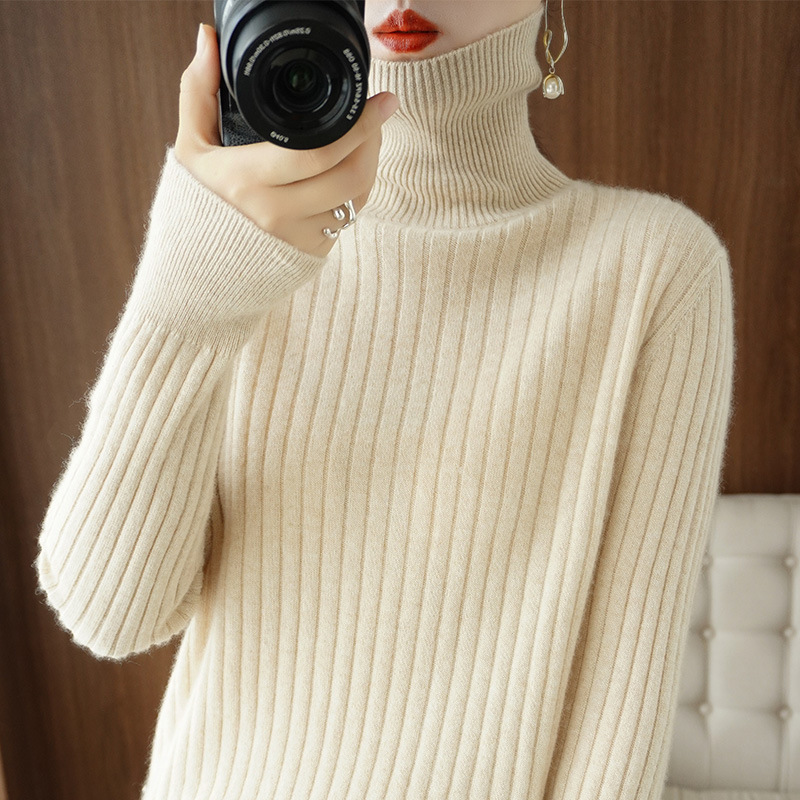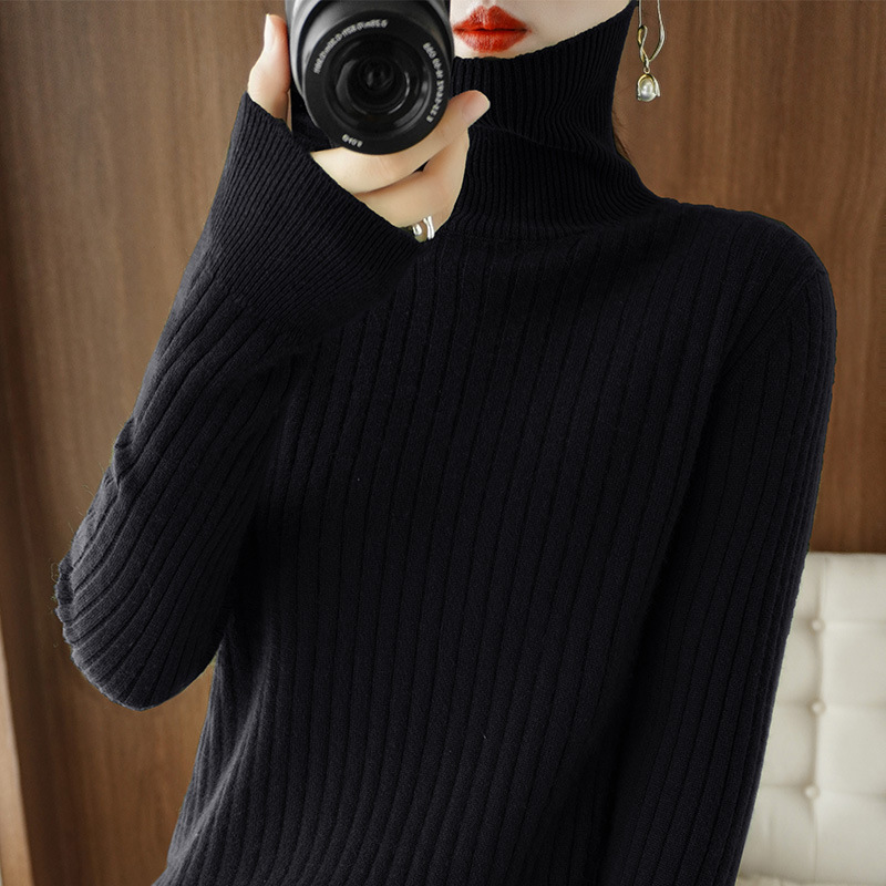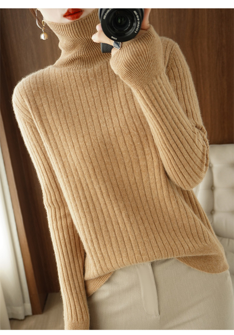 23秋冬加厚抽条高领毛衣女秋装外穿打底衫女肌肤感立领羊毛针织衫