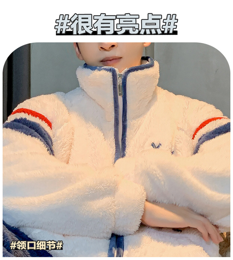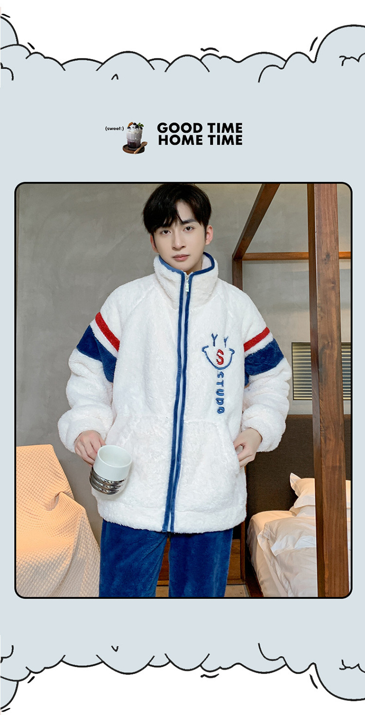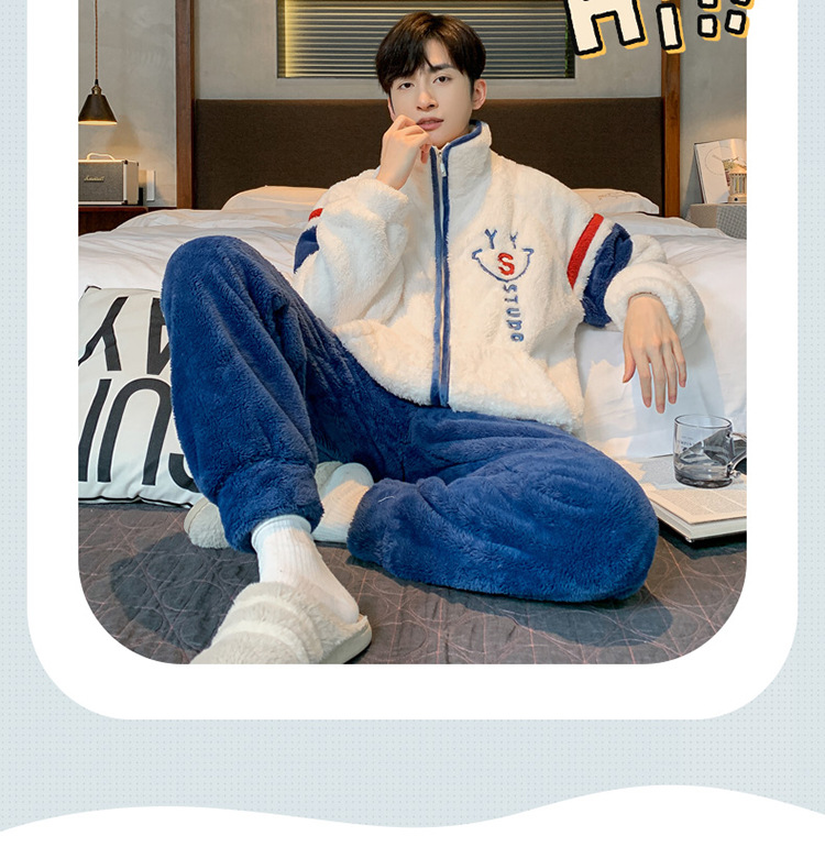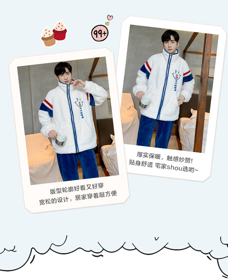 2023新款冬季法兰绒男士睡衣保暖开衫珊瑚绒青年家居服两件套