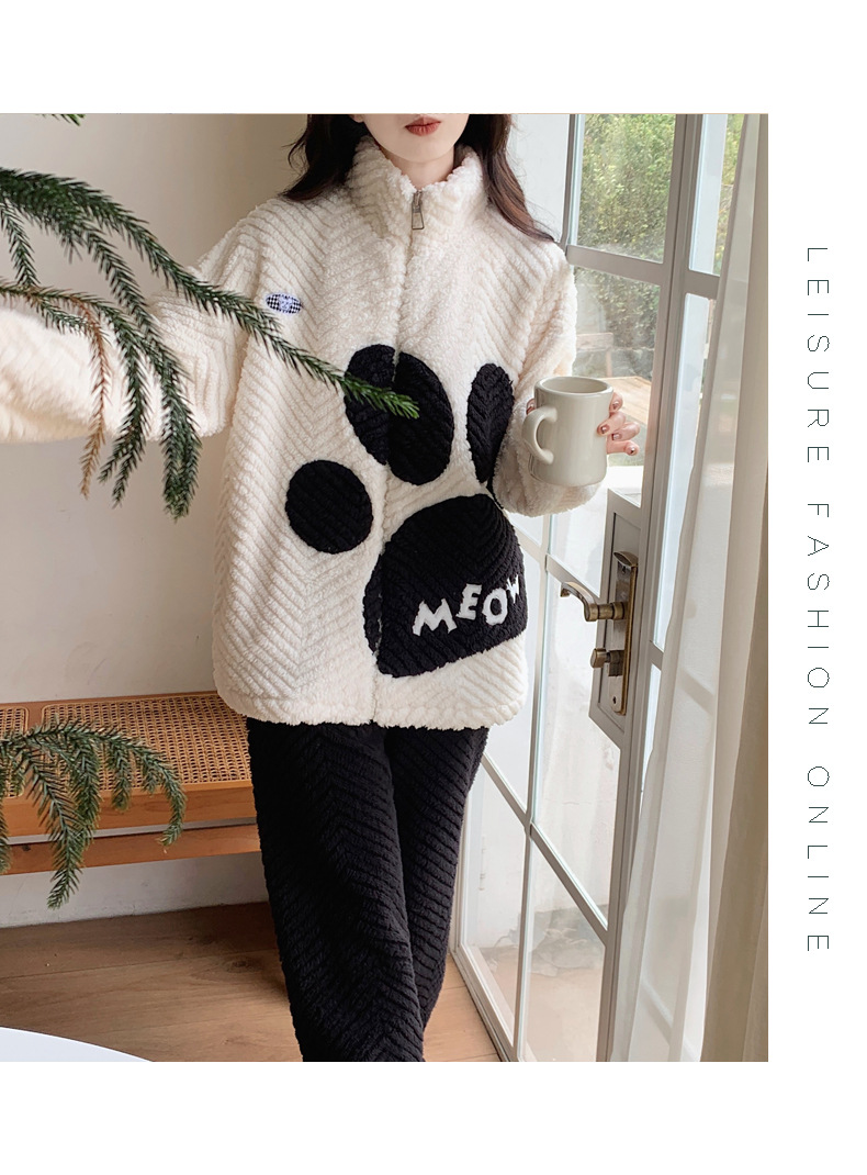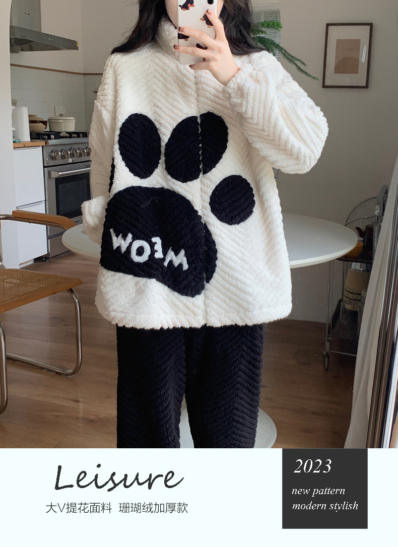 冬季新款珊瑚绒睡衣女甜美公主风脚印加厚法兰绒家居服套装可外穿