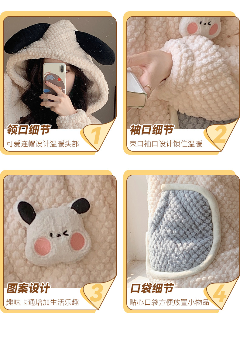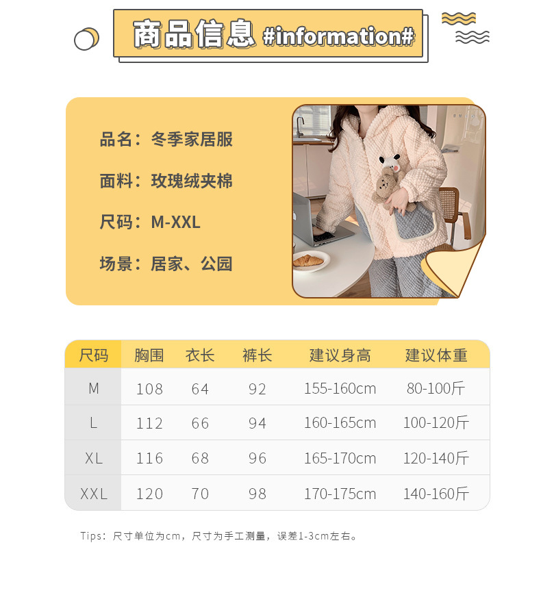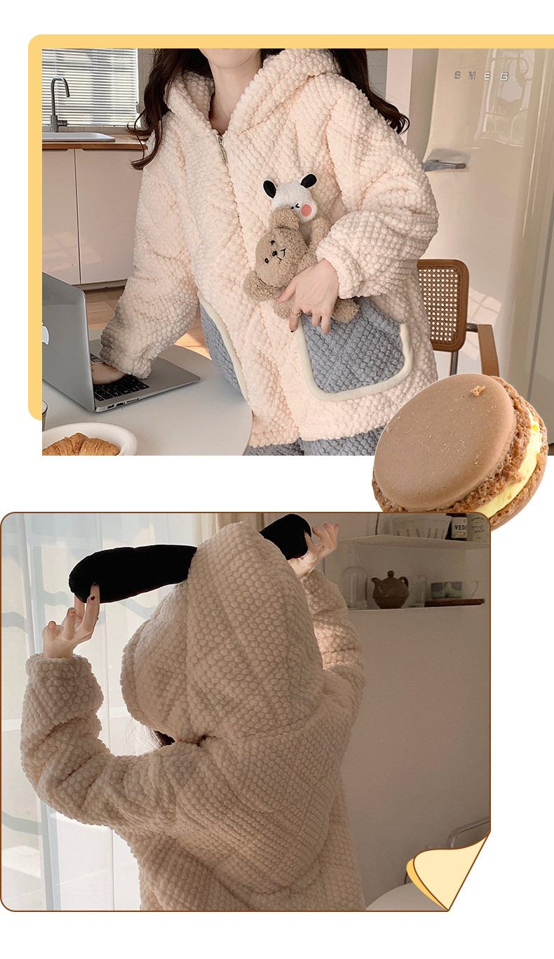 珊瑚绒三层夹棉睡衣女秋冬季加厚加绒新款卡通少女连帽家居服套装