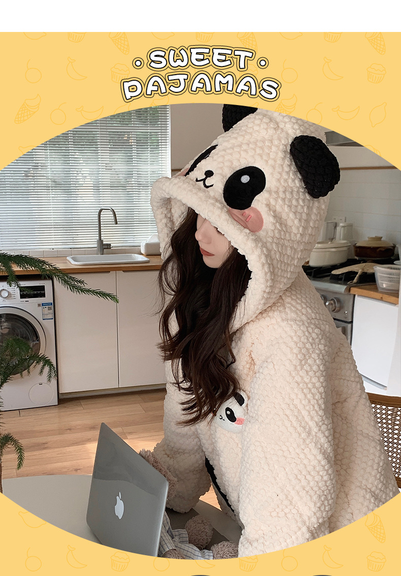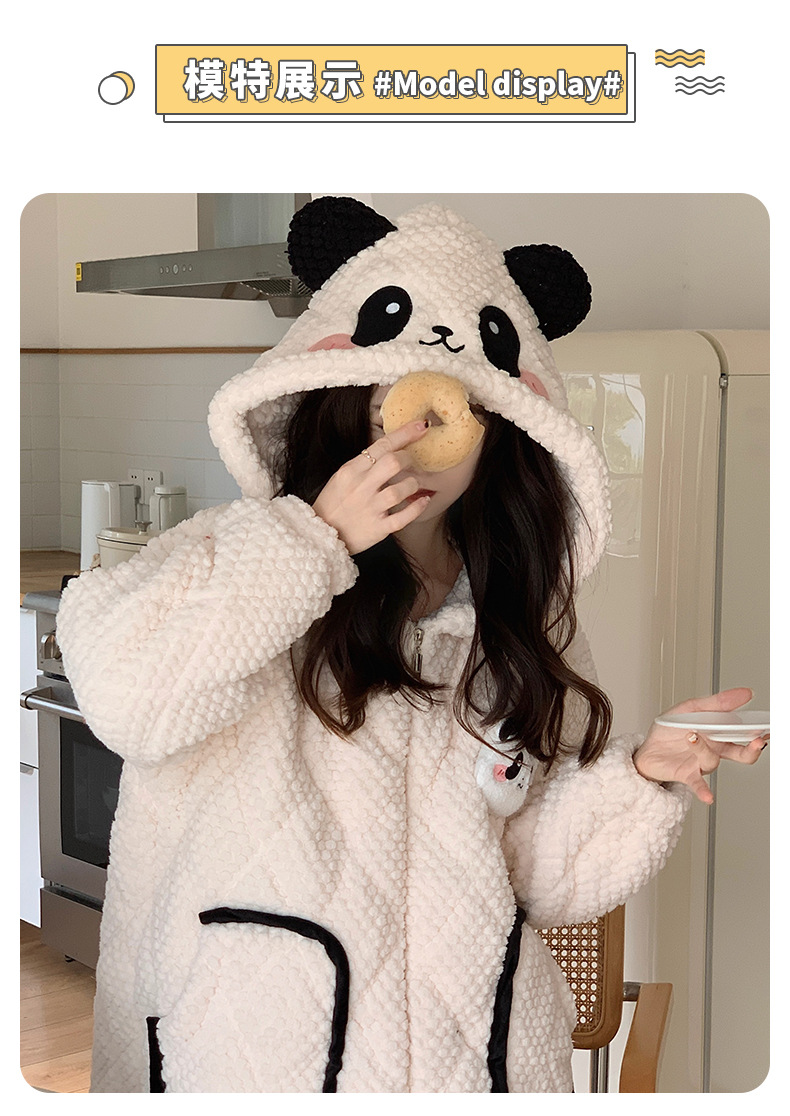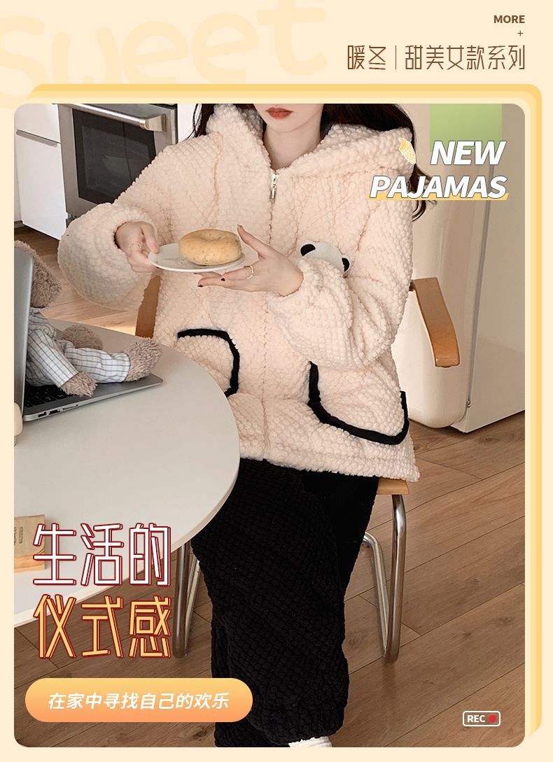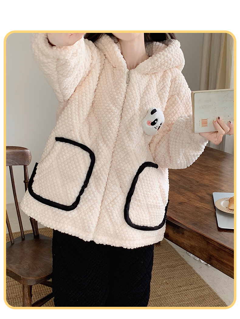 冬季睡衣女士加绒加厚三层夹棉珊瑚绒冬天新款连帽外穿睡衣家居服