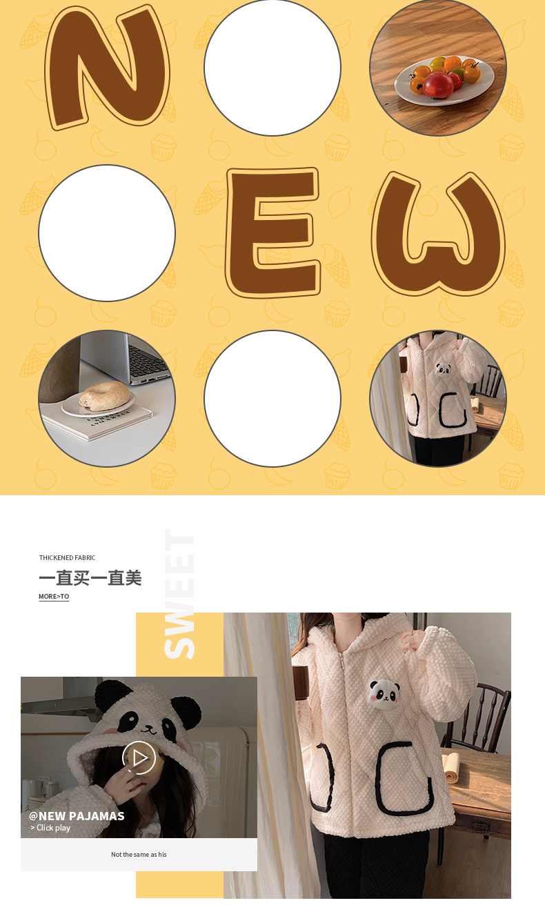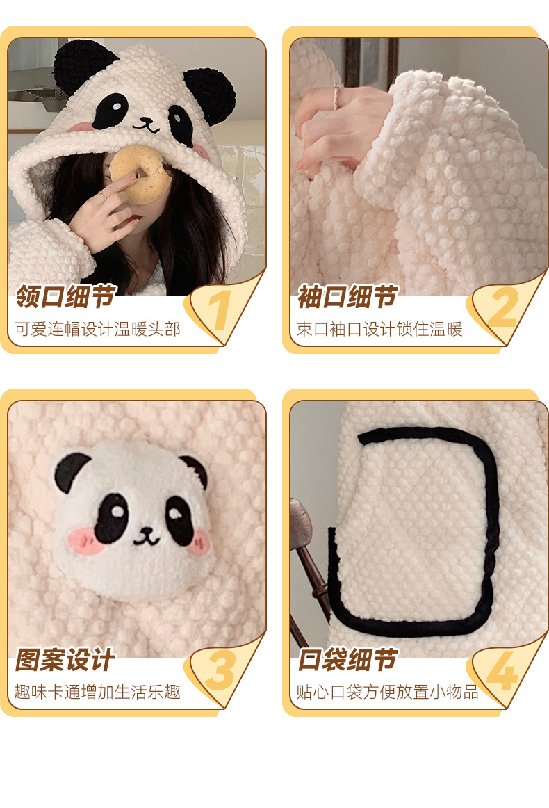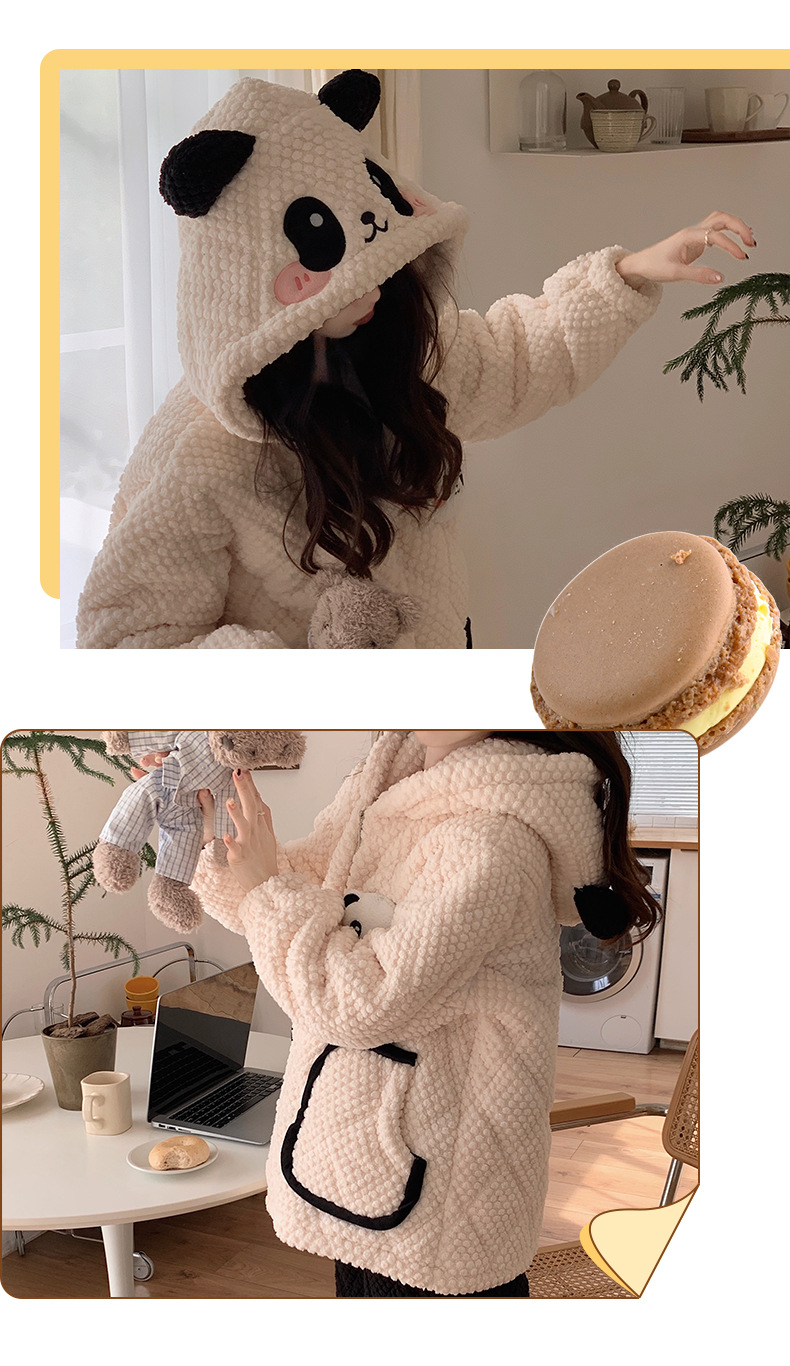 冬季睡衣女士加绒加厚三层夹棉珊瑚绒冬天新款连帽外穿睡衣家居服