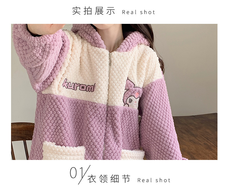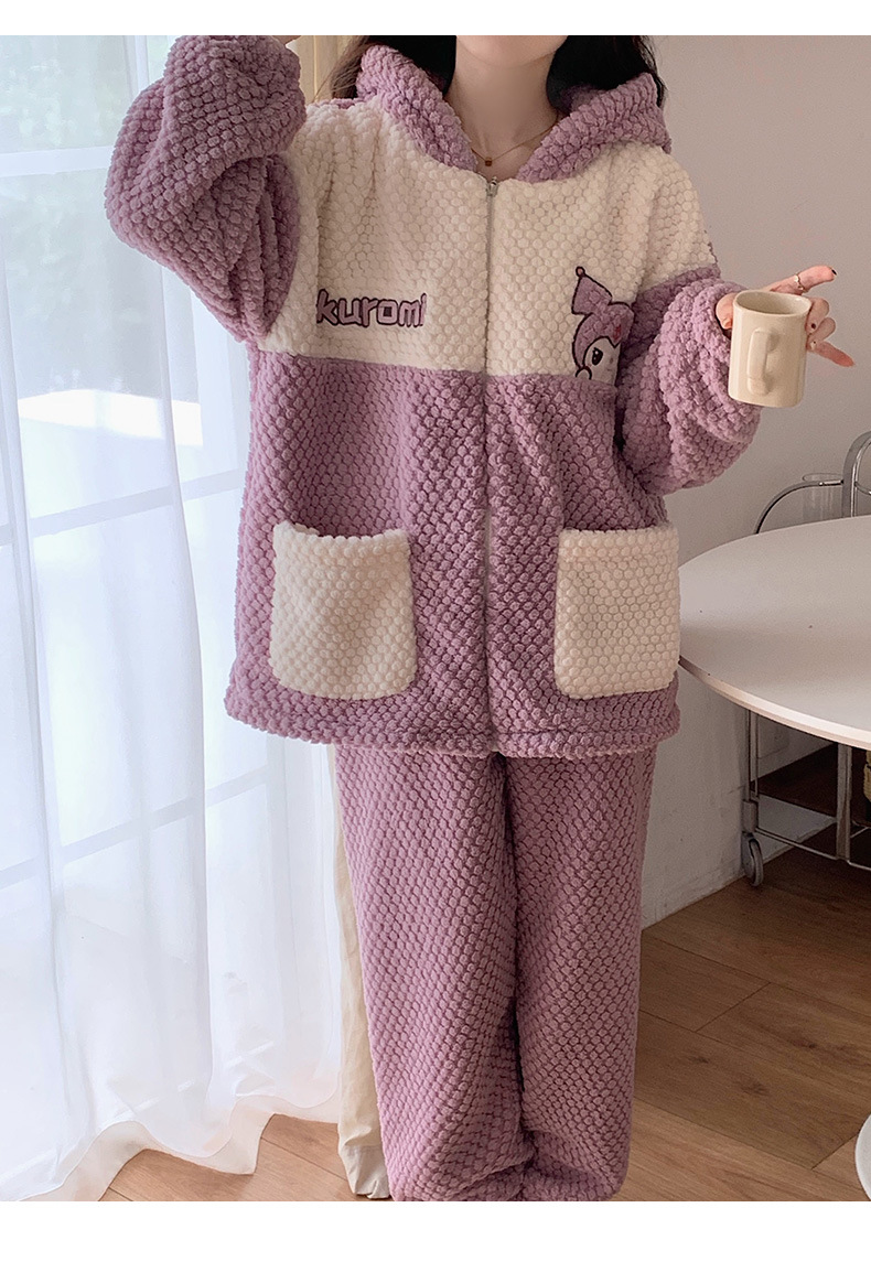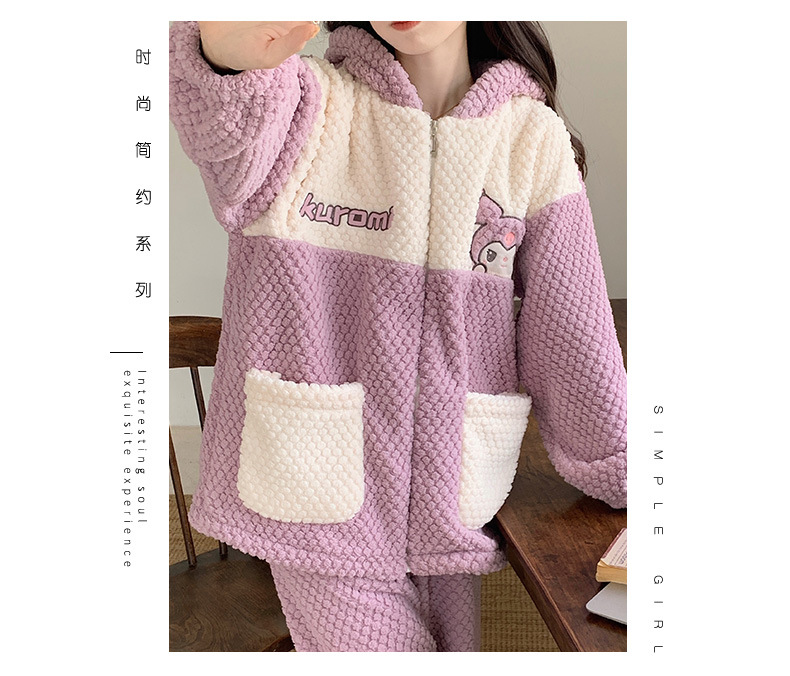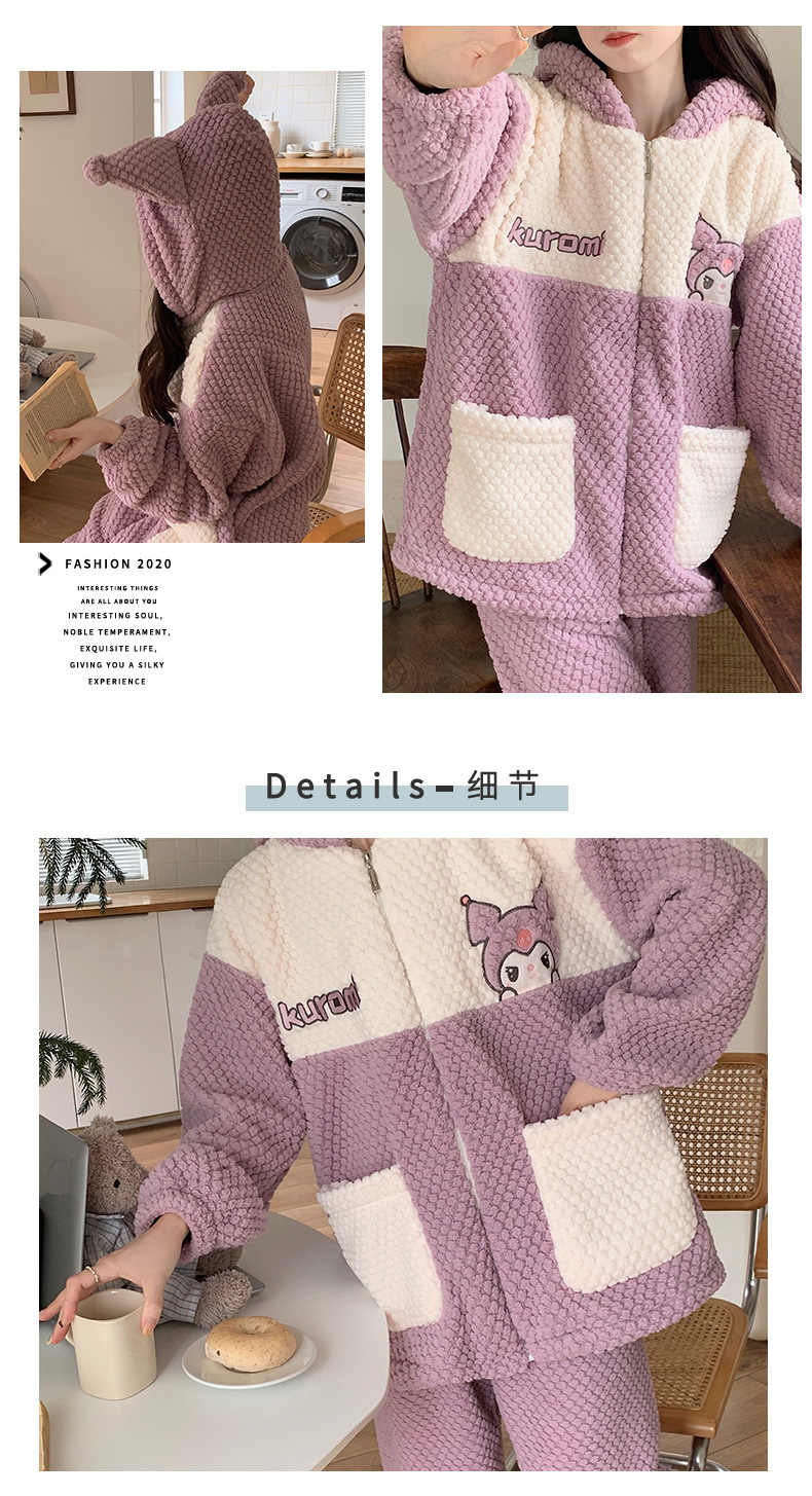 2023年冬季珊瑚绒新款睡衣女甜美卡通风加绒加厚法兰绒少女家居服
