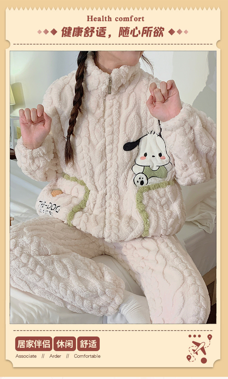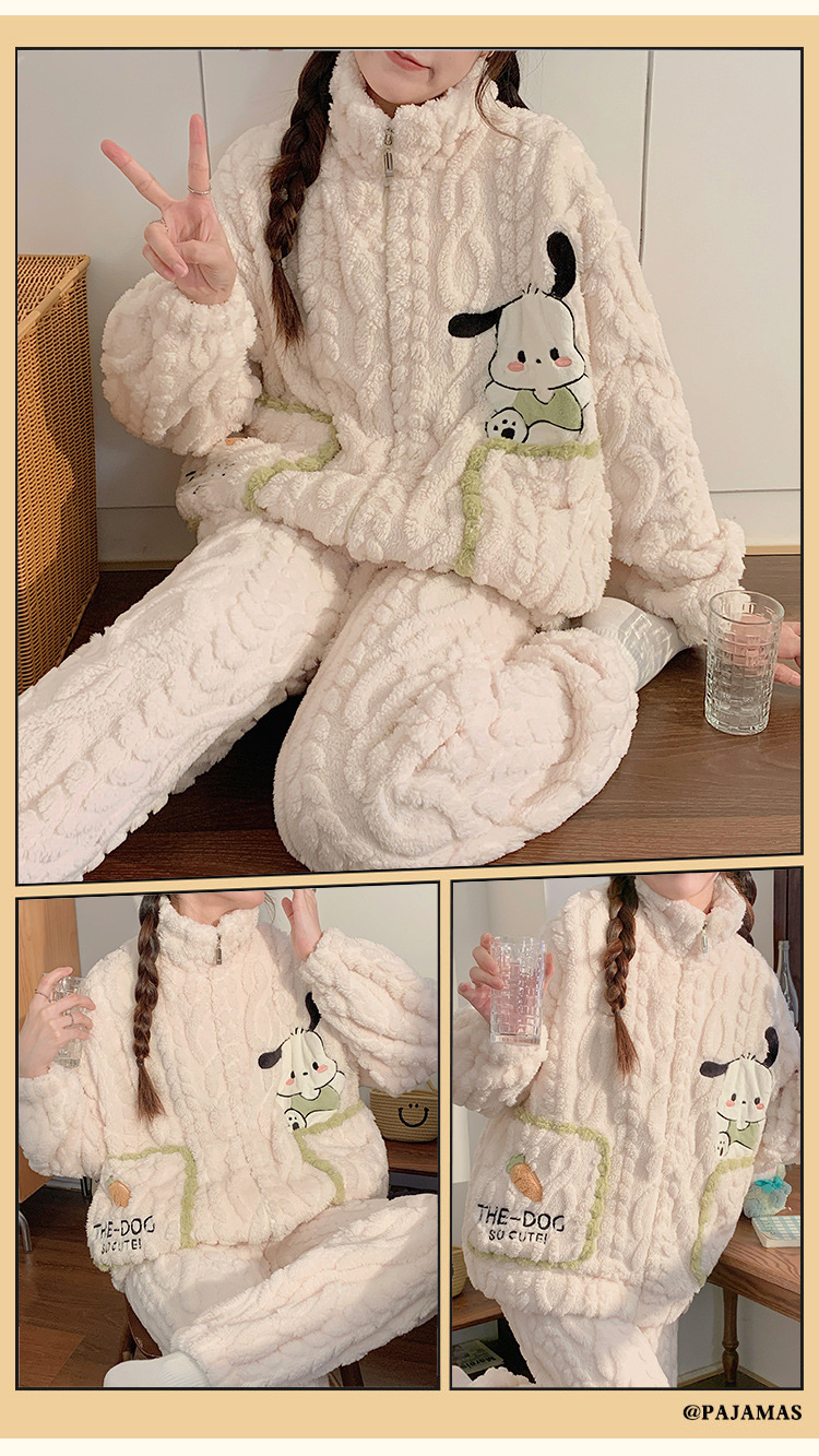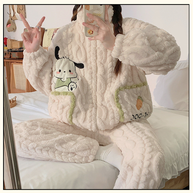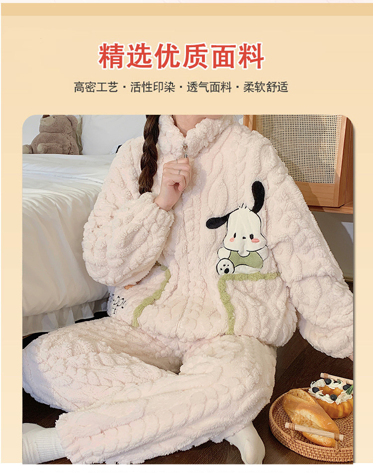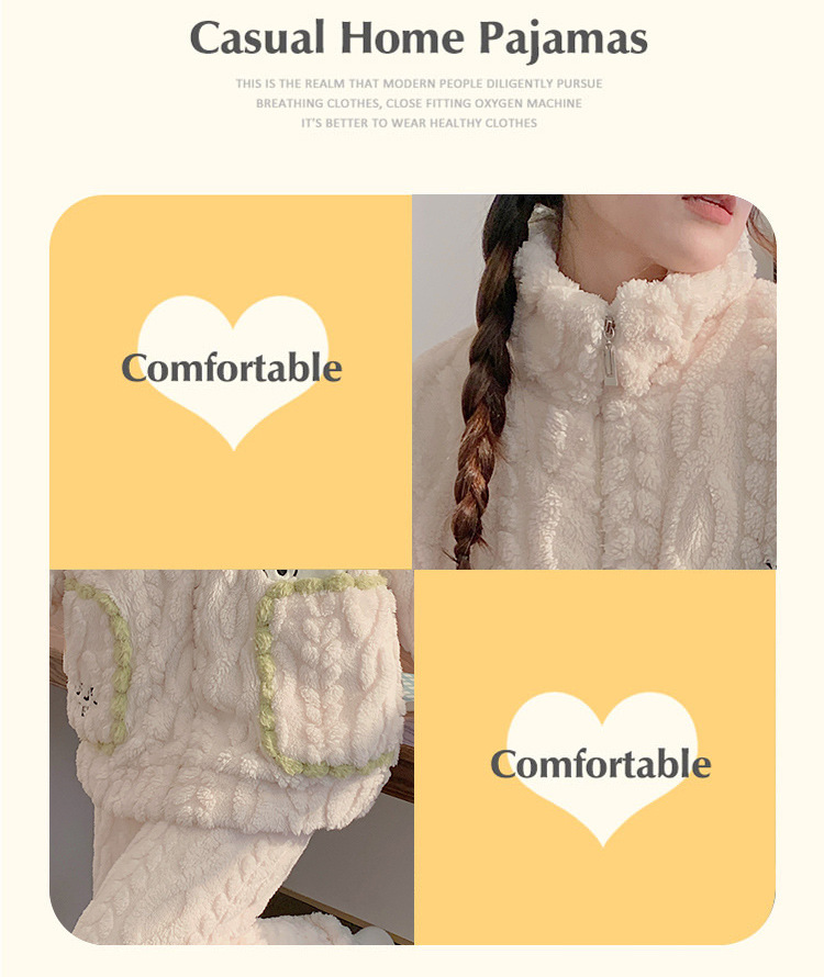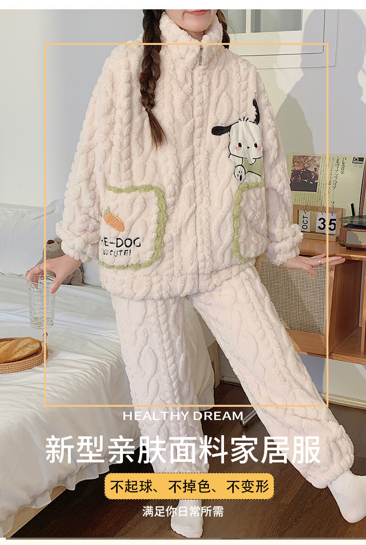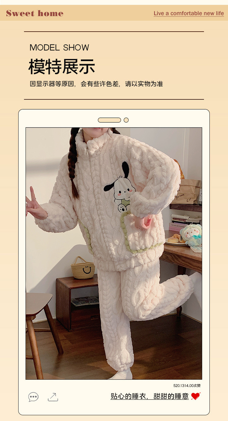 冬季新款2023年珊瑚绒睡衣女卡通舒适保暖法兰绒家居服可外穿套装