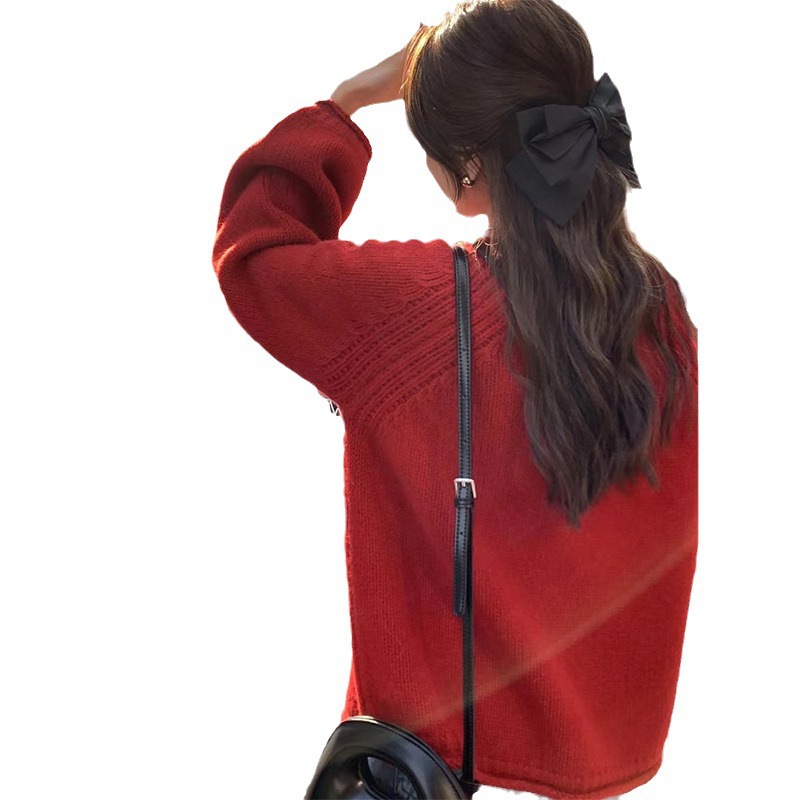 慵懒风洋气套头毛衣女针织衫秋冬百搭新款宽松外穿纯色打底上衣潮