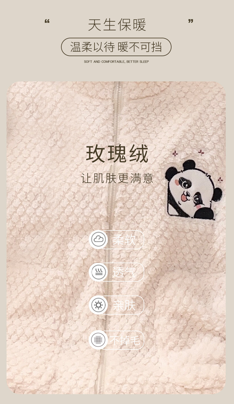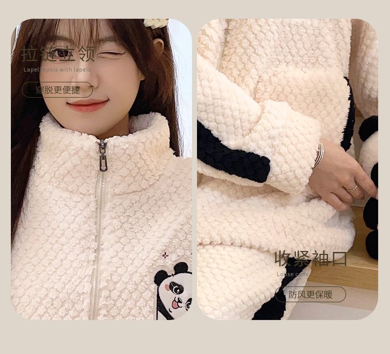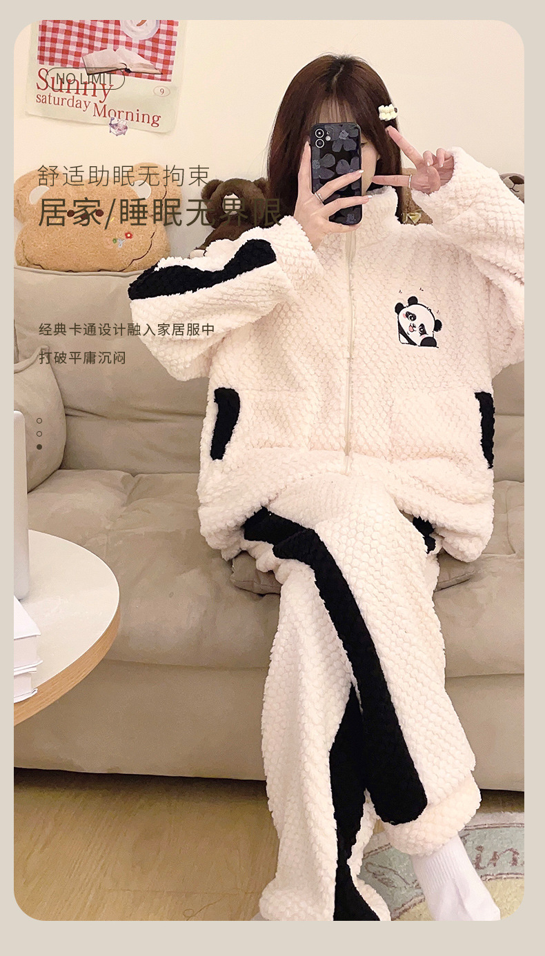 珊瑚绒睡衣拉链款冬季加厚法兰绒2023年新款女士家居服可外穿套装
