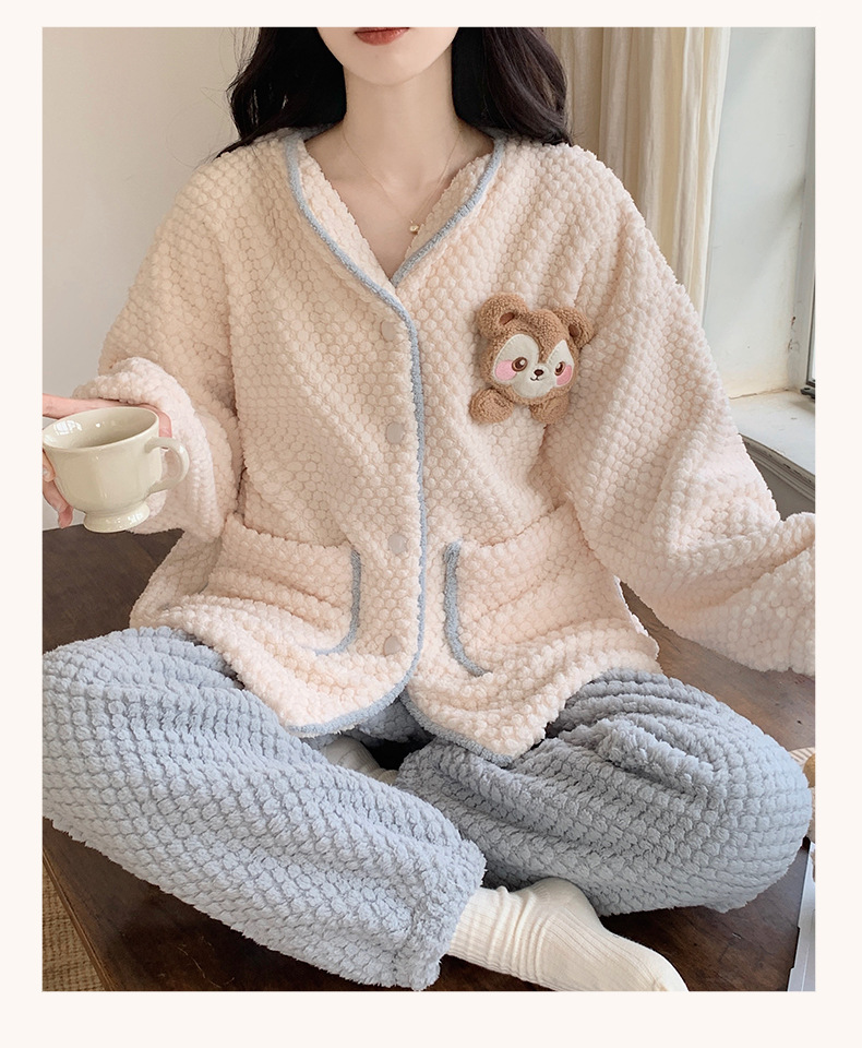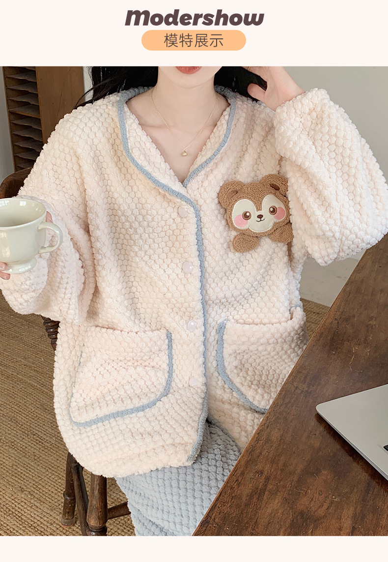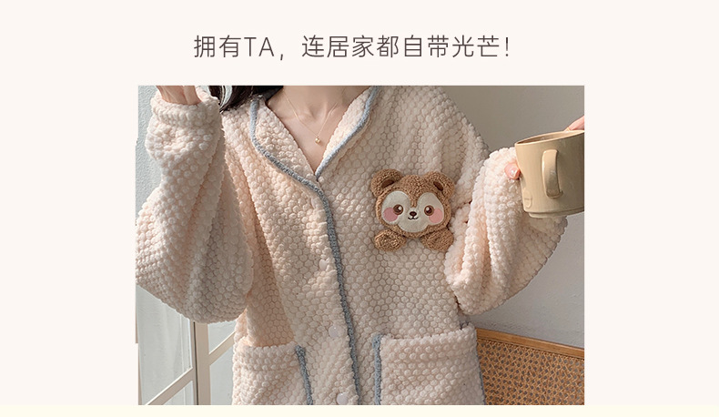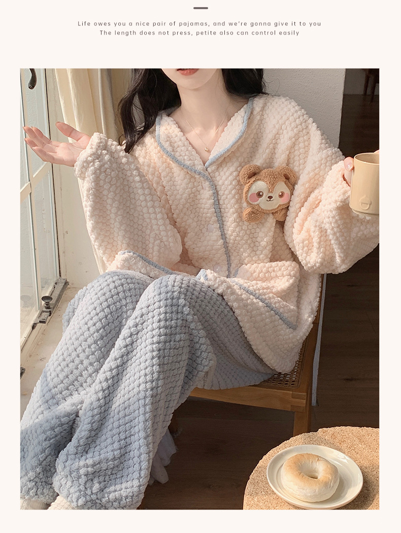 2023年秋冬款法兰绒睡衣卡通清新风加厚珊瑚绒新款女士家居服套装