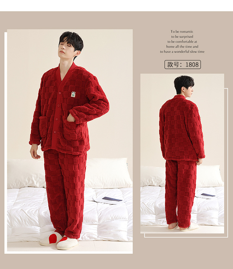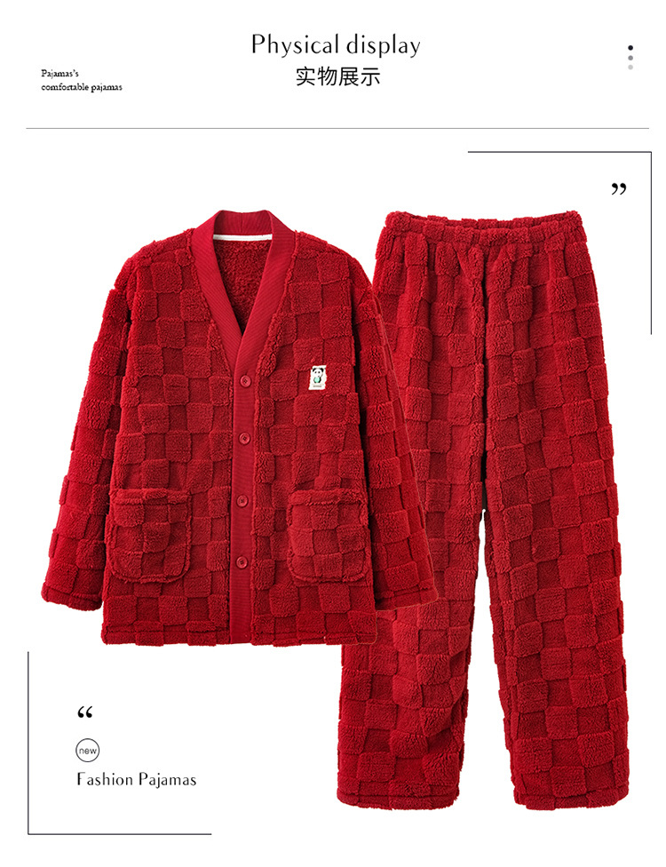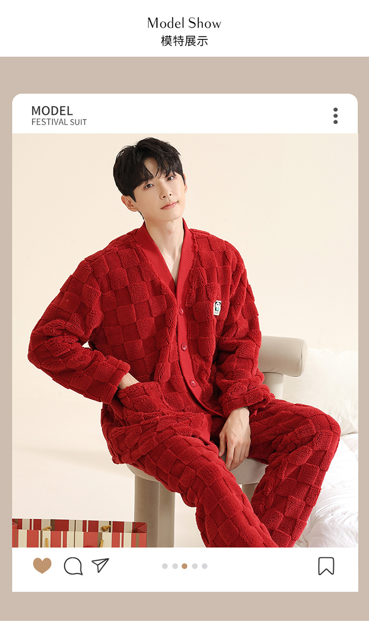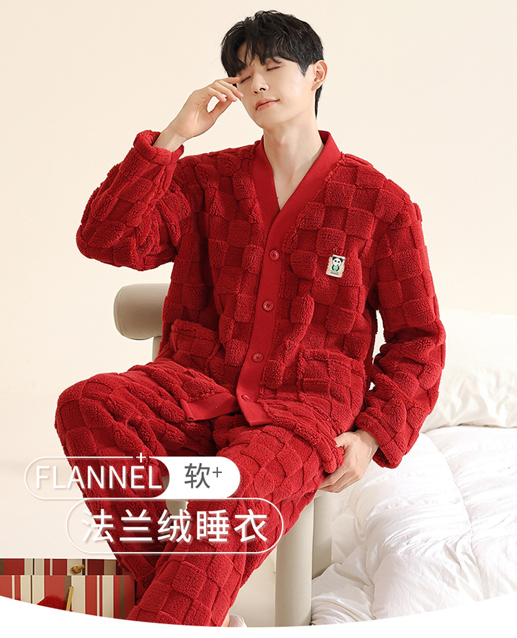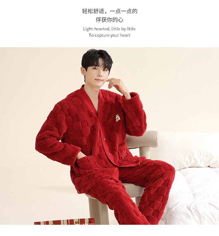 男士睡衣2023年珊瑚绒时尚大红新婚喜庆加厚法兰绒青年家居服套装