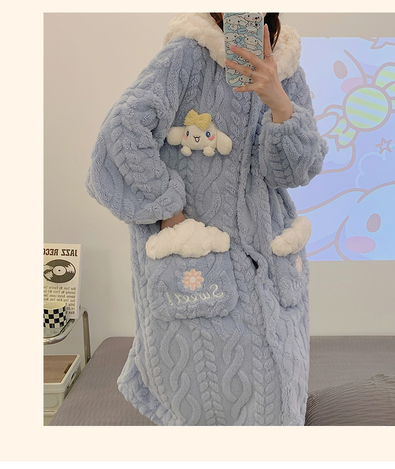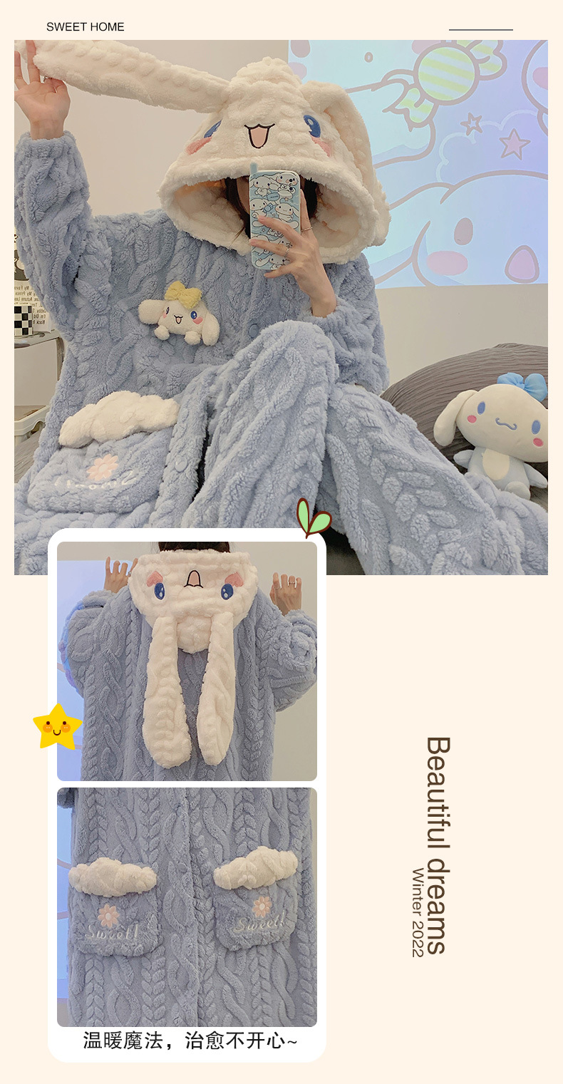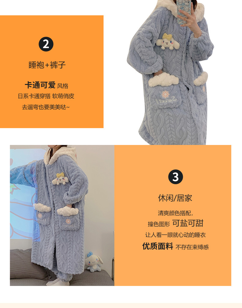 睡衣女秋冬珊瑚绒长款睡袍加厚加绒可爱小狗长袖春秋款家居服套装