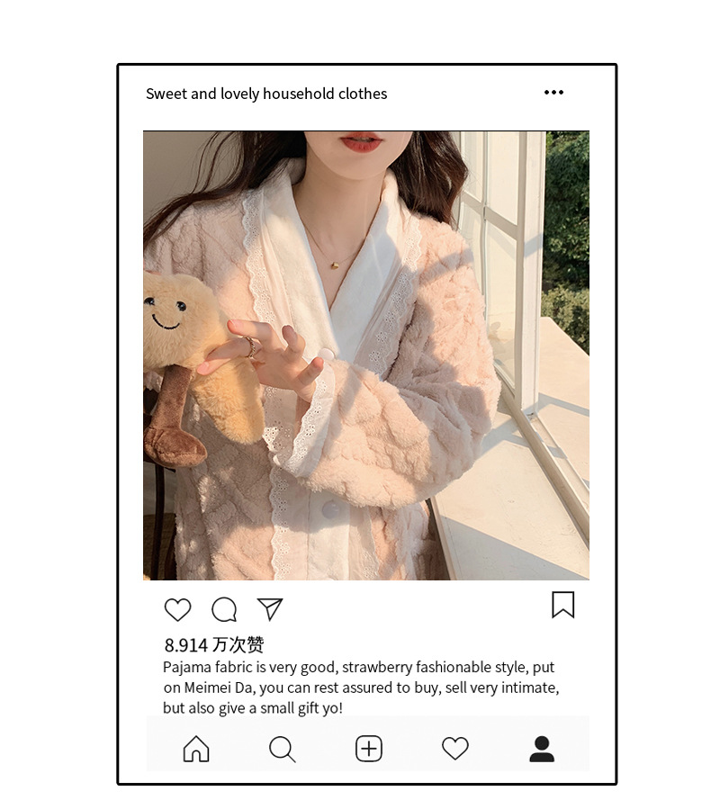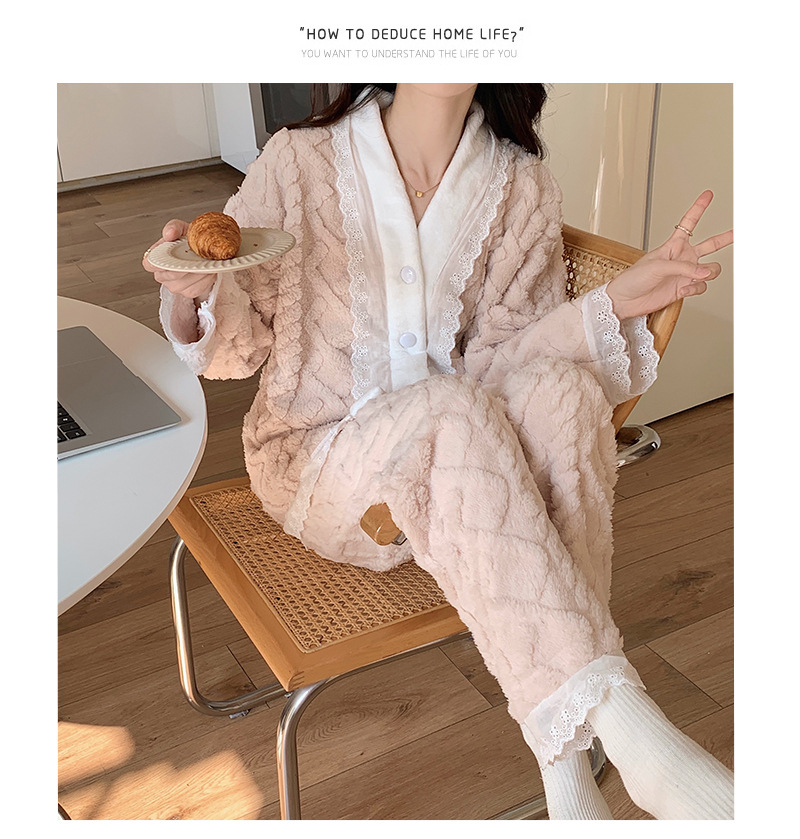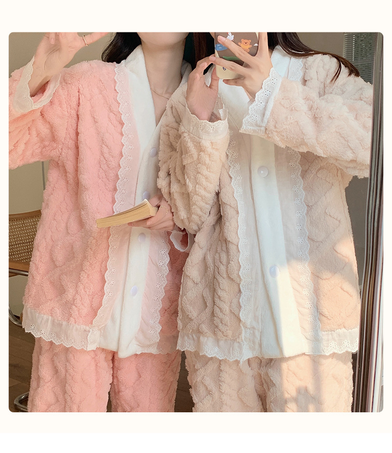 2023年冬季新款珊瑚绒可爱甜美公主风提花套装法兰绒睡衣女家居服