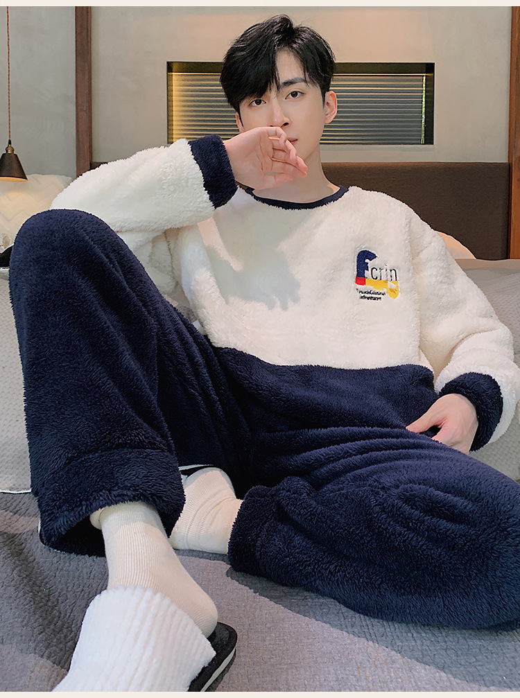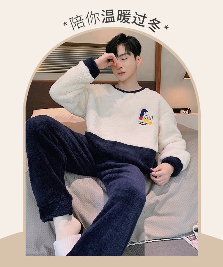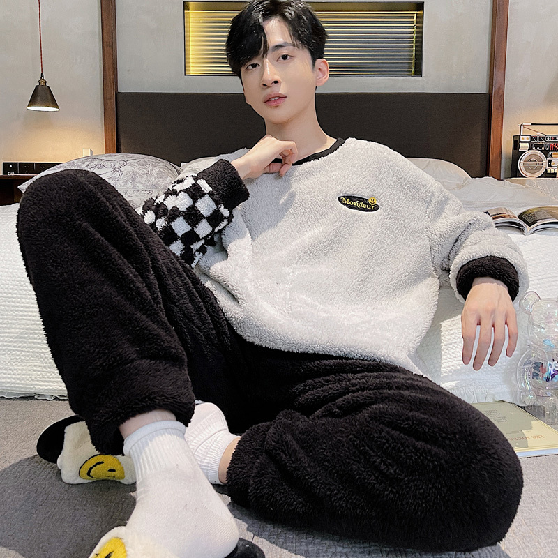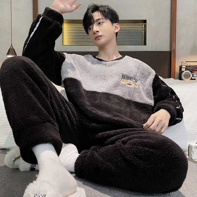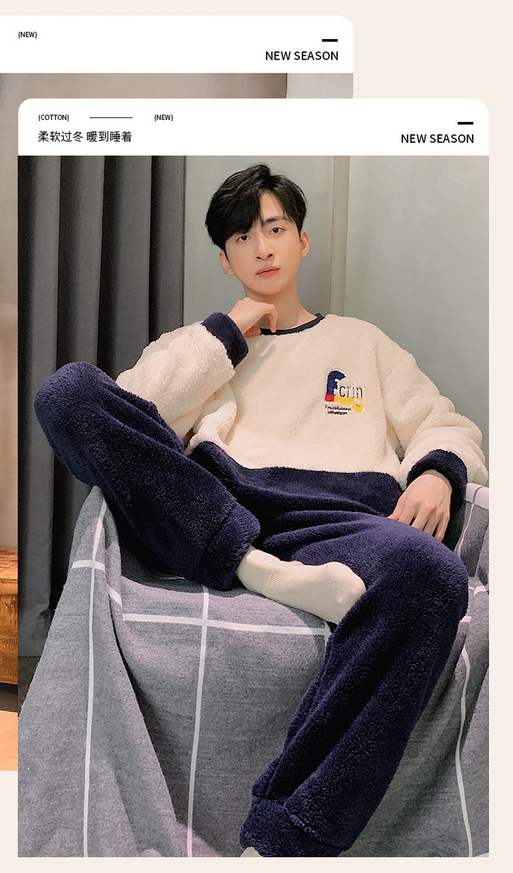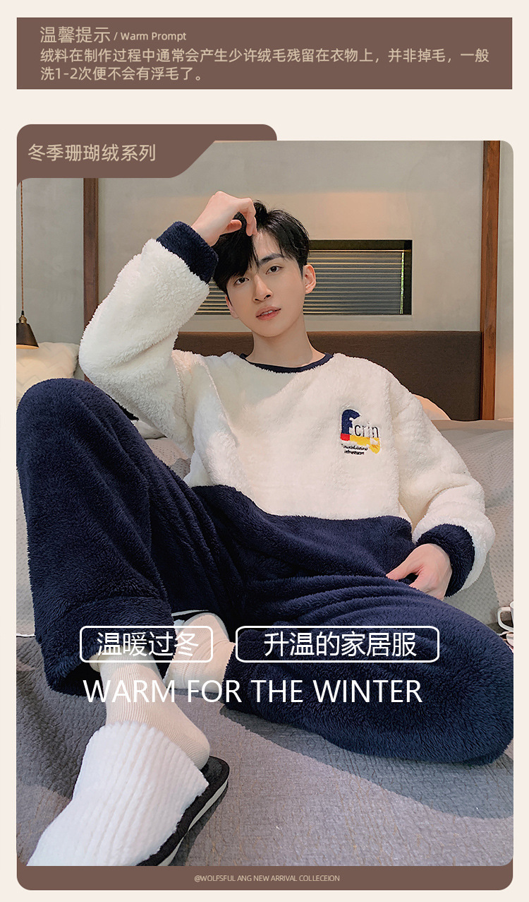 珊瑚绒睡衣青年男冬天新款2023舒适感保暖法兰绒套装家居服可外穿