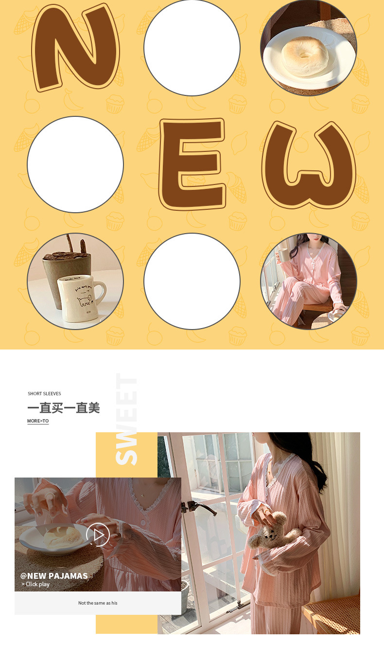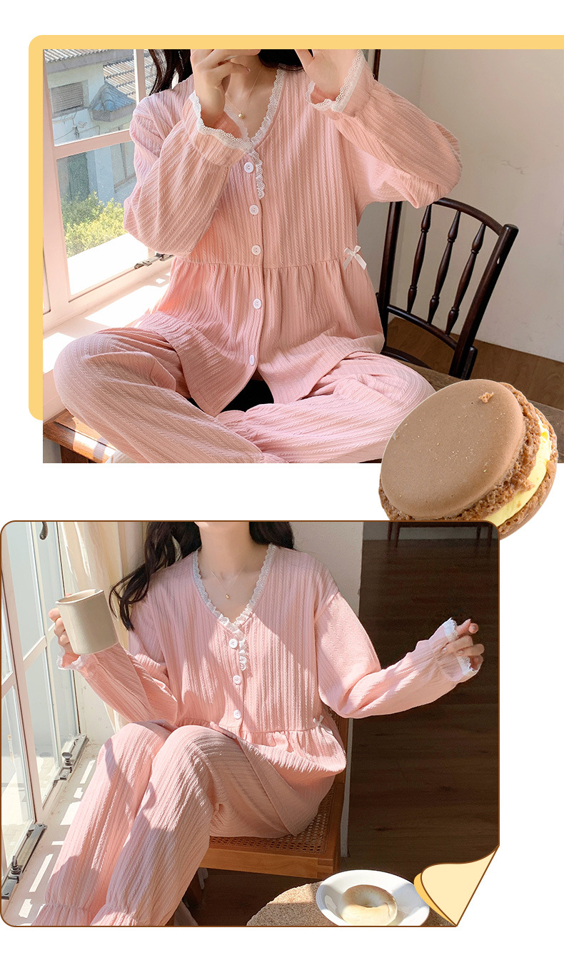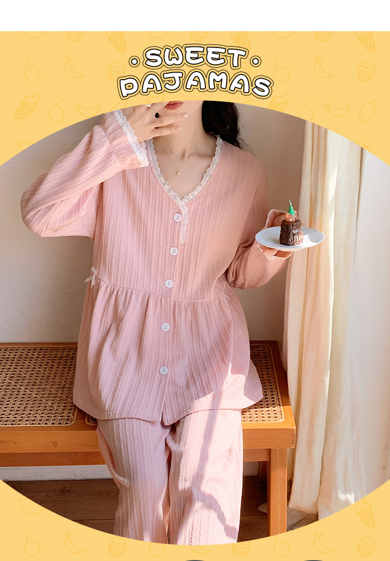 睡衣女秋季2023年新款棉质可爱甜美公主风开衫长袖纯色家居服套装