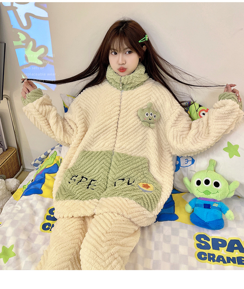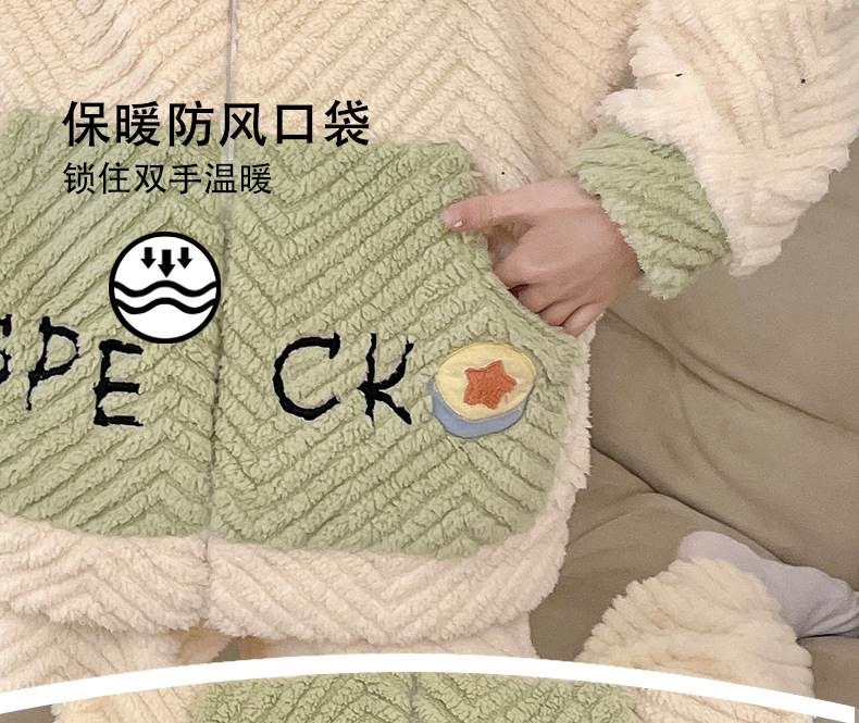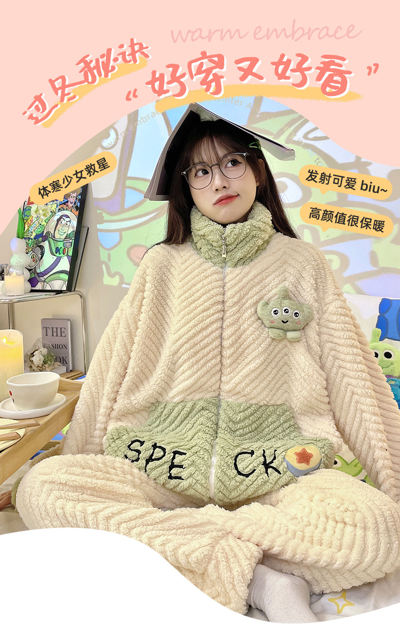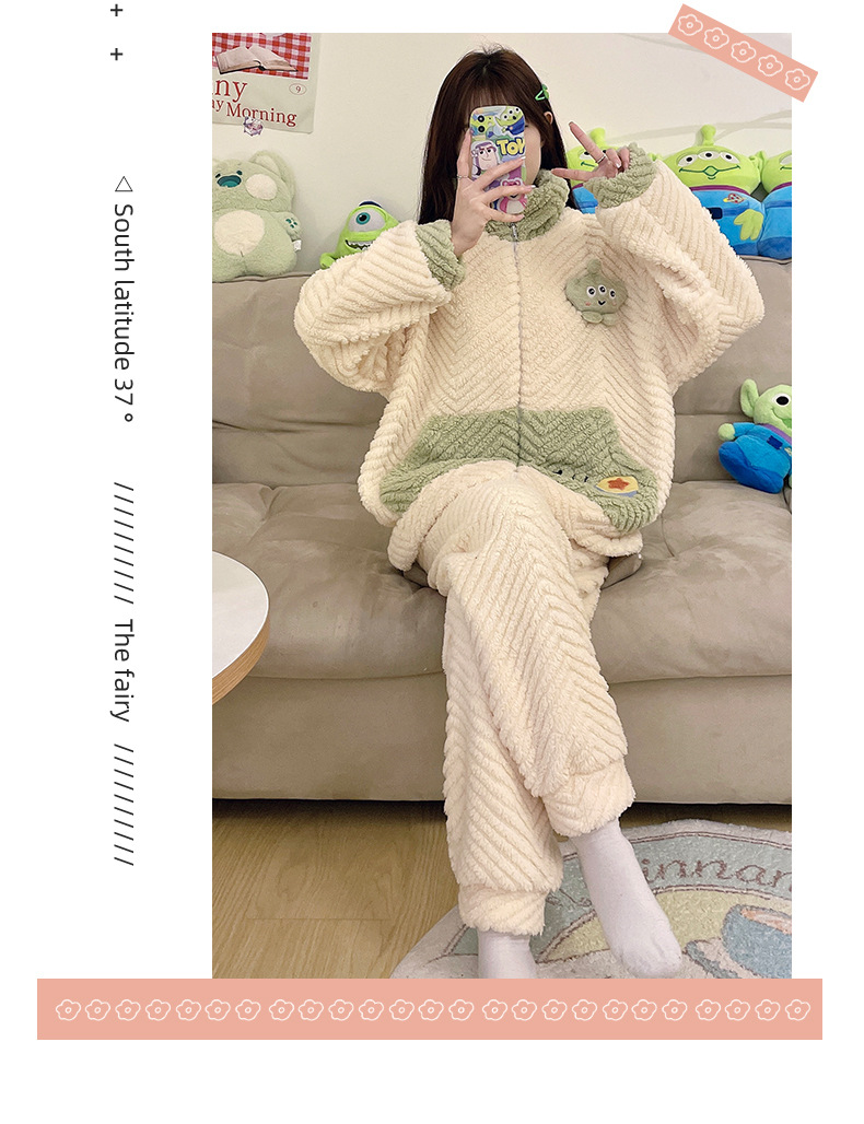 珊瑚绒睡衣女冬季长袖加厚可爱卡通家居服法兰绒春秋款可外穿套装