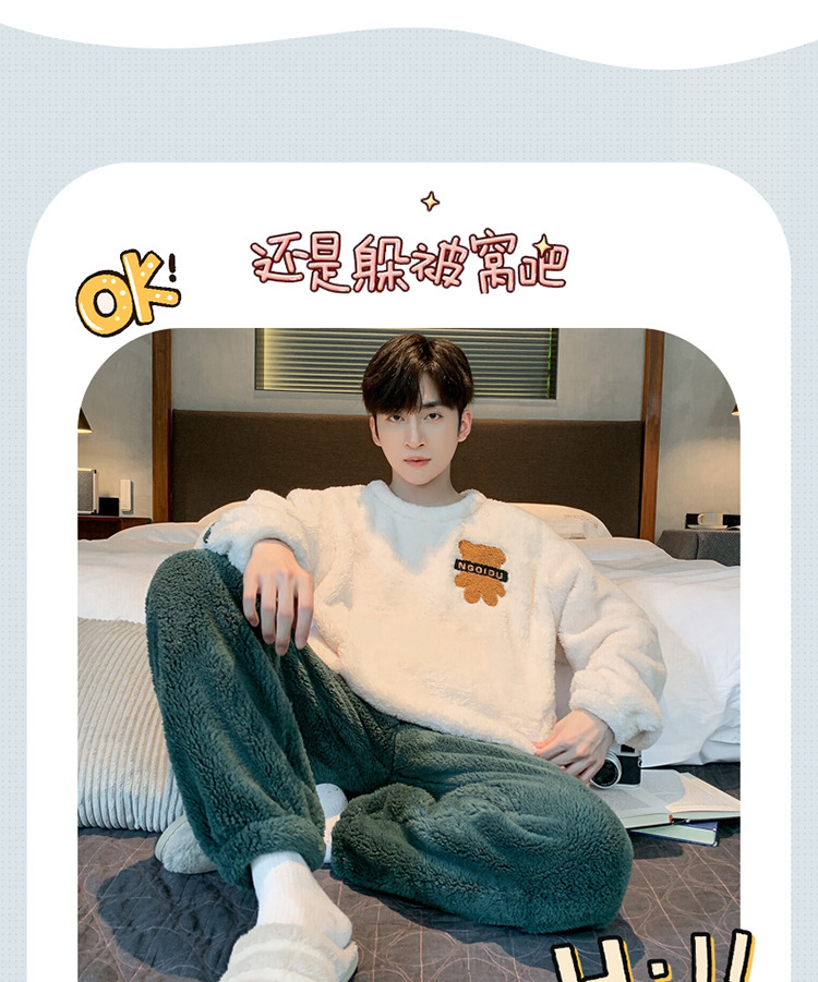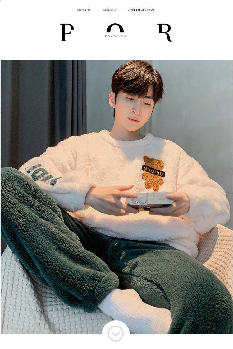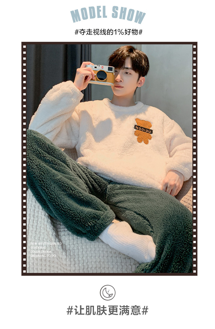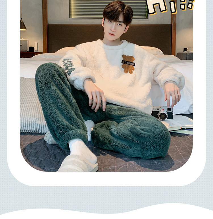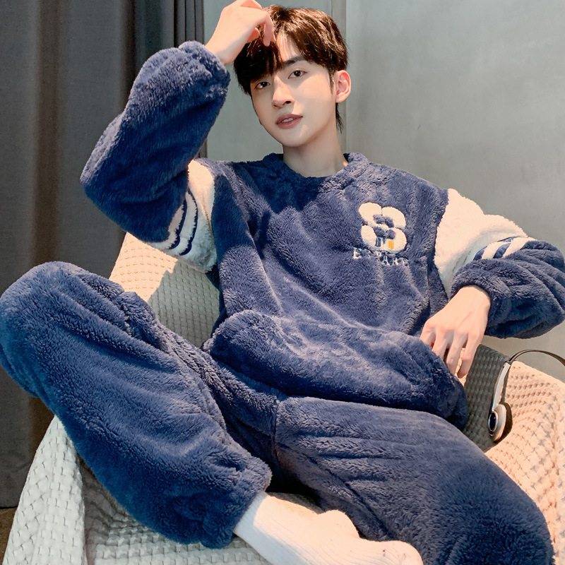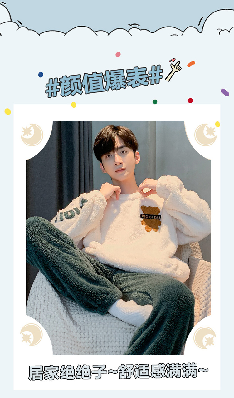 冬季珊瑚绒男士睡衣时尚保暖加厚2023年新款青年套装家居服可外穿