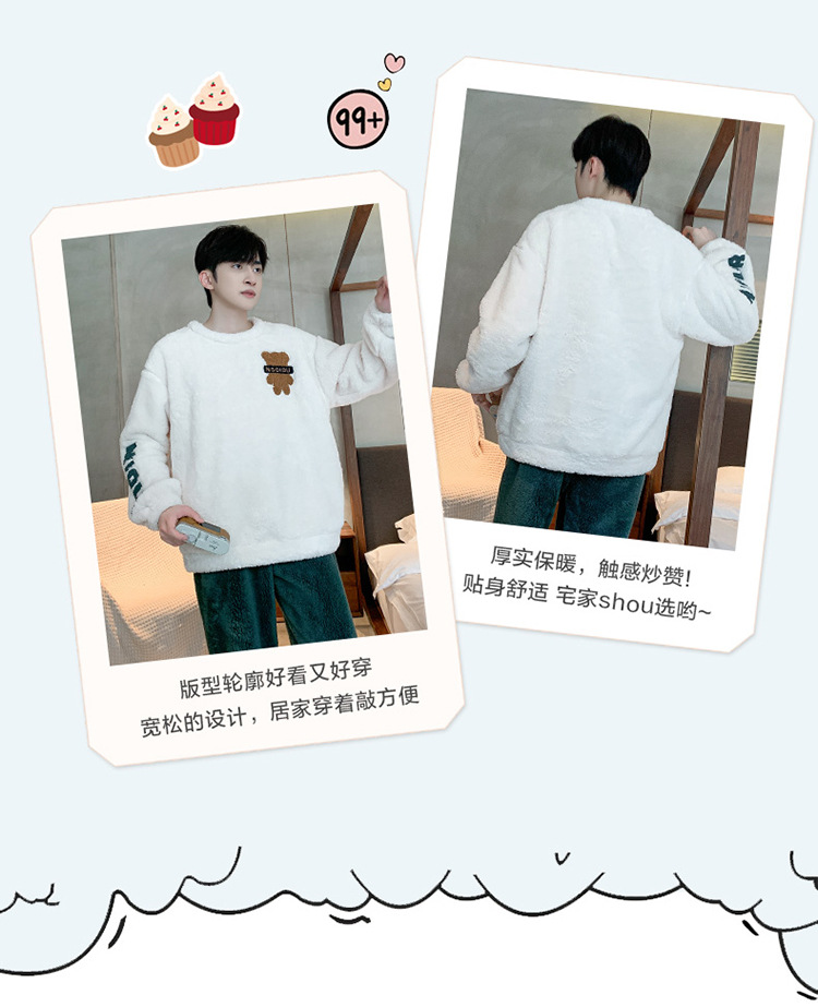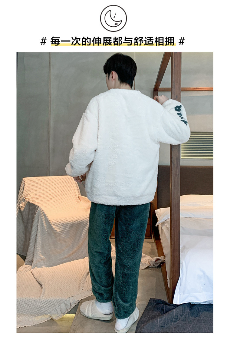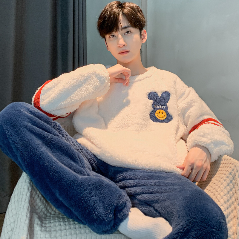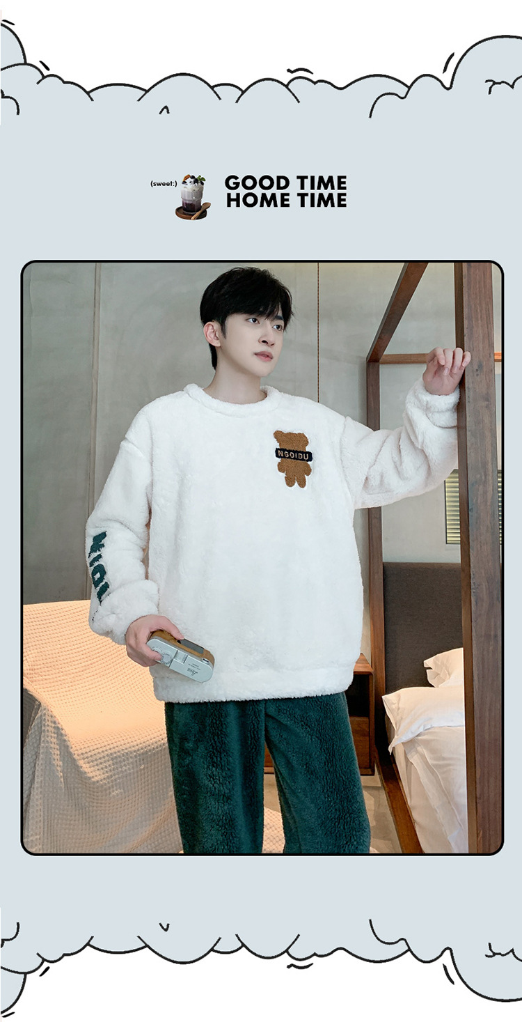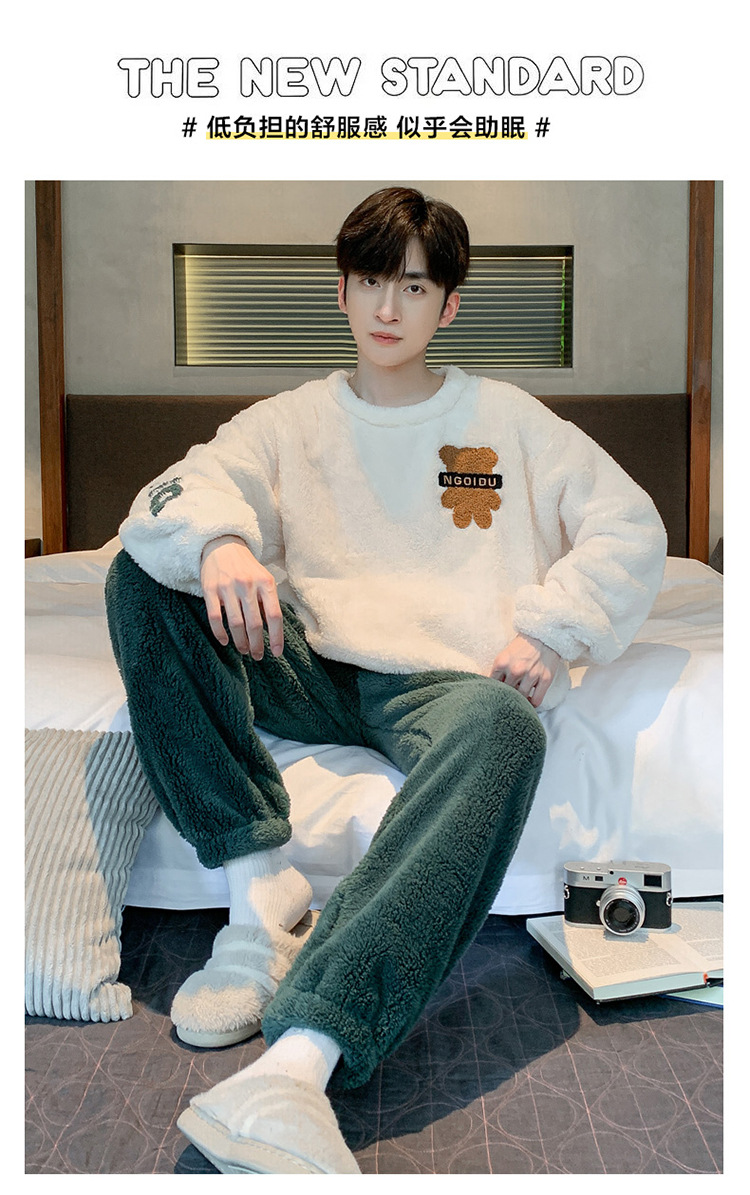 冬季珊瑚绒男士睡衣时尚保暖加厚2023年新款青年套装家居服可外穿