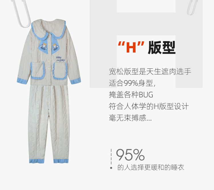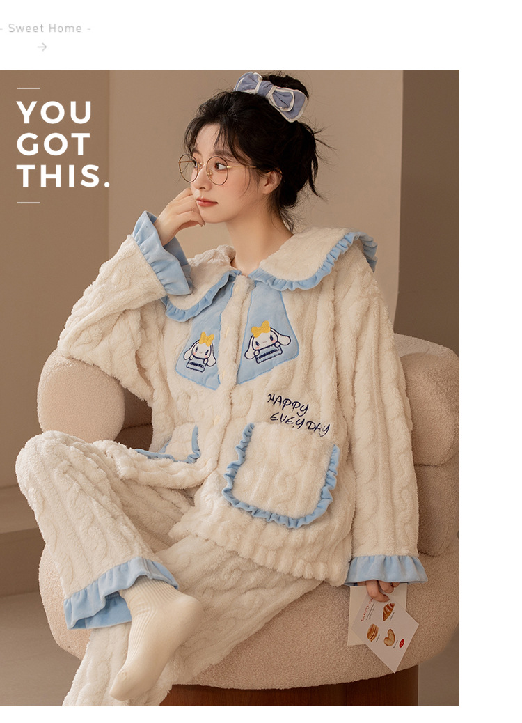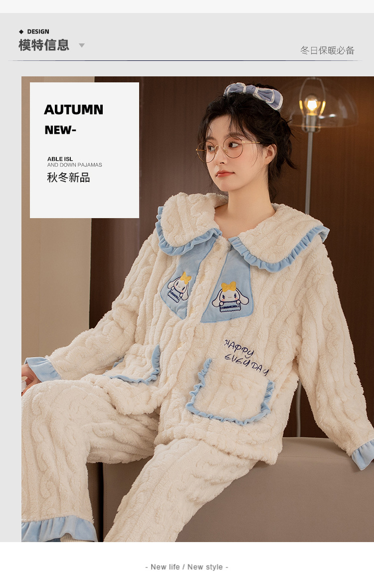 冬季新款珊瑚绒睡衣女可爱甜美清新风法兰绒保暖家居服套装可外穿