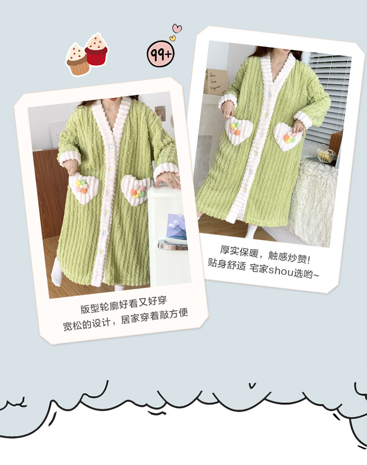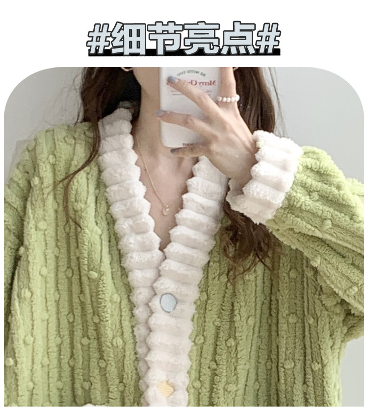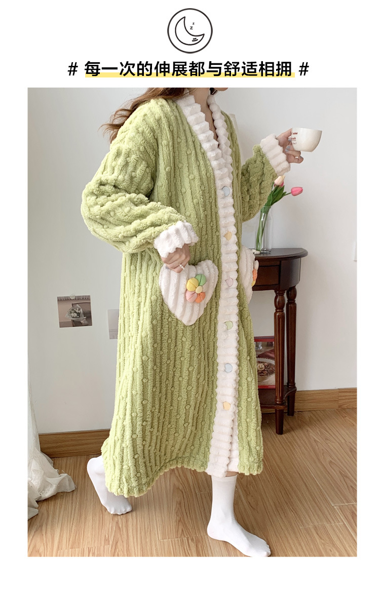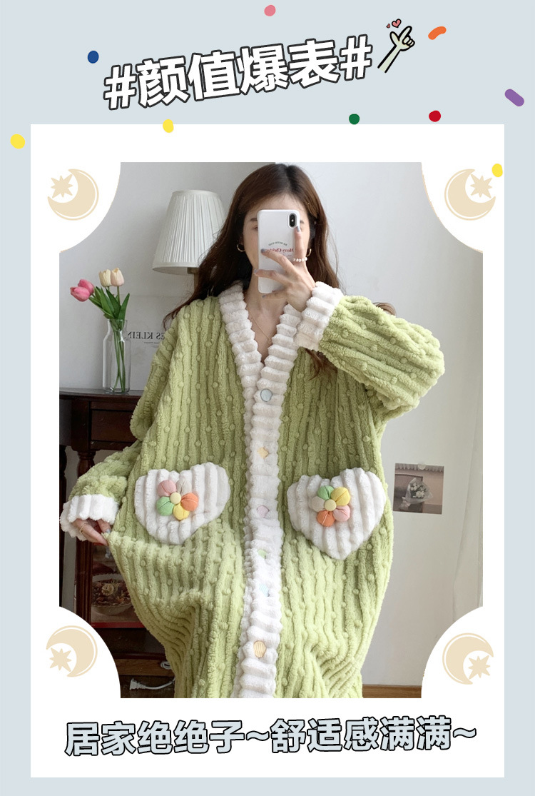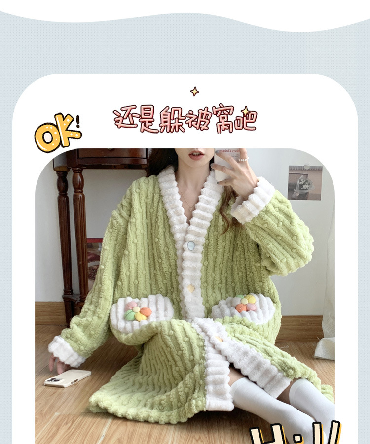 冬季睡袍女提花绒2023年新款可爱小清新珊瑚绒舒适保暖家居服套装