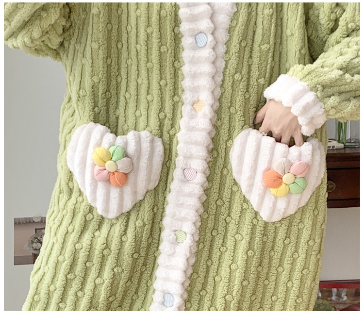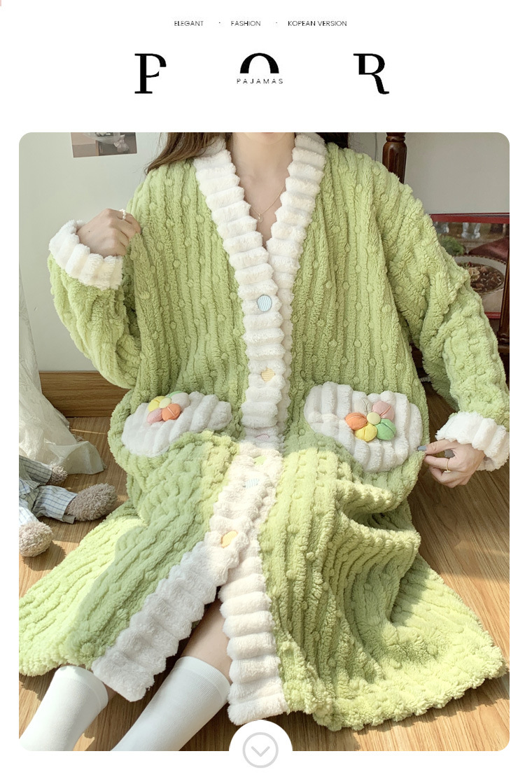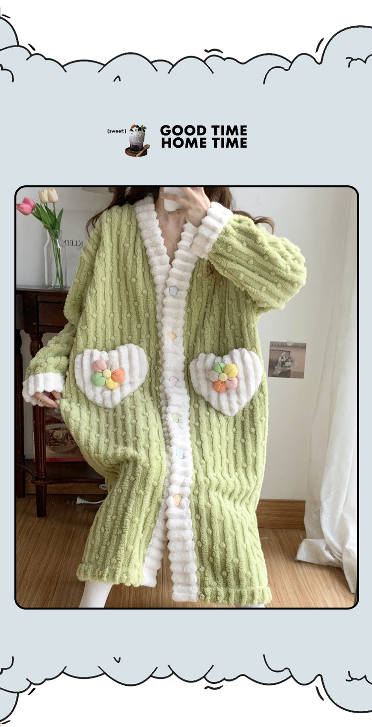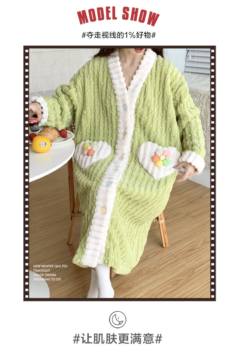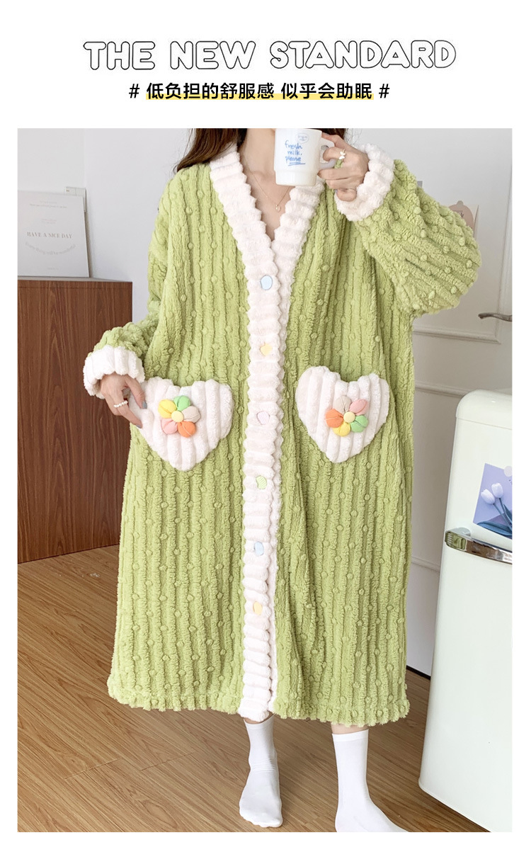 冬季睡袍女提花绒2023年新款可爱小清新珊瑚绒舒适保暖家居服套装